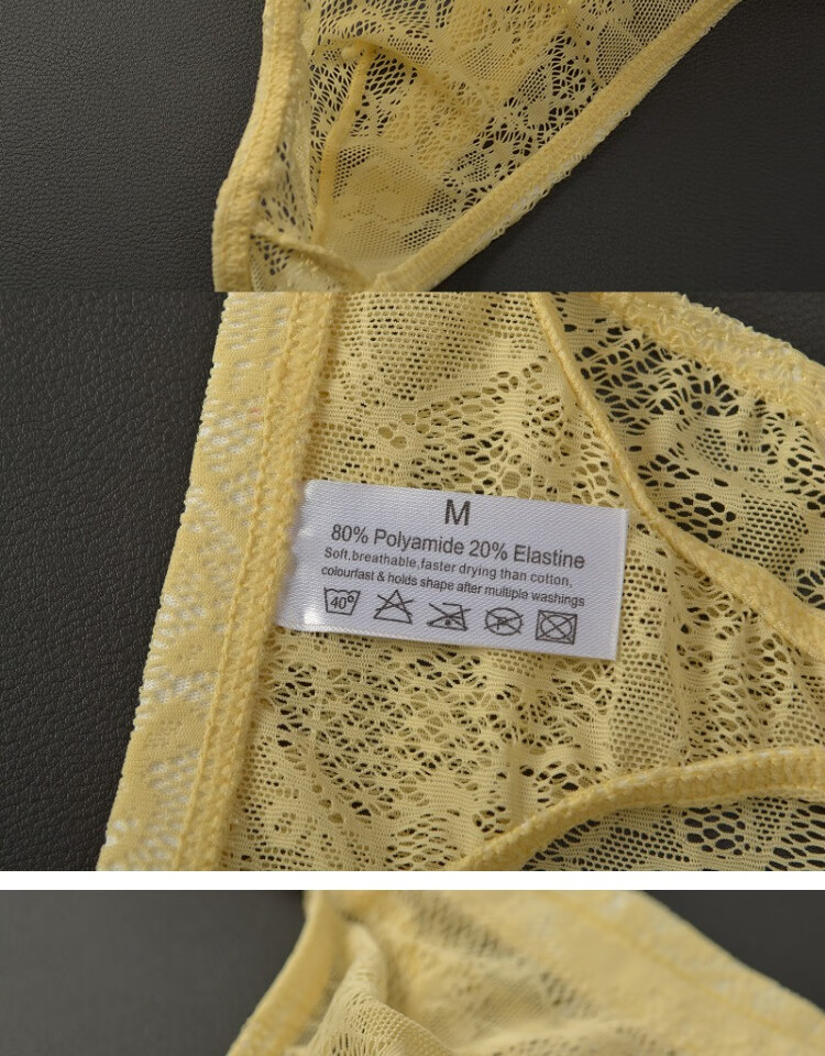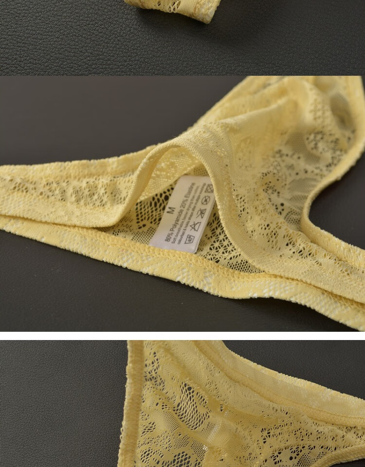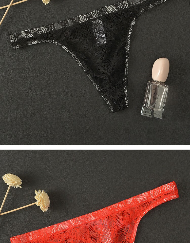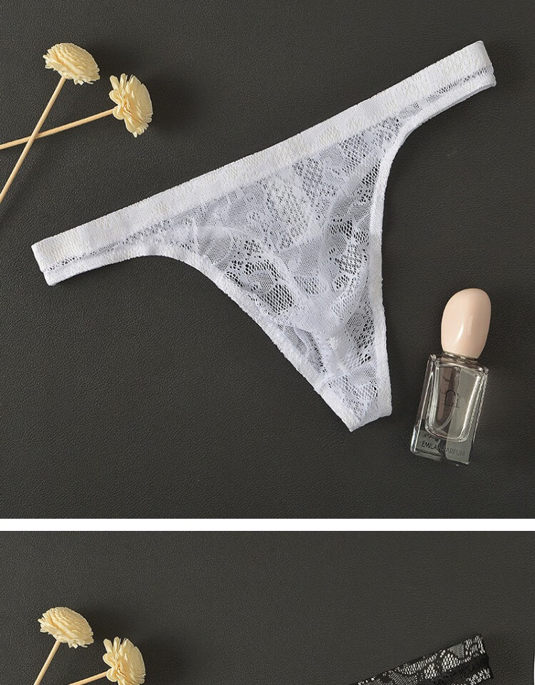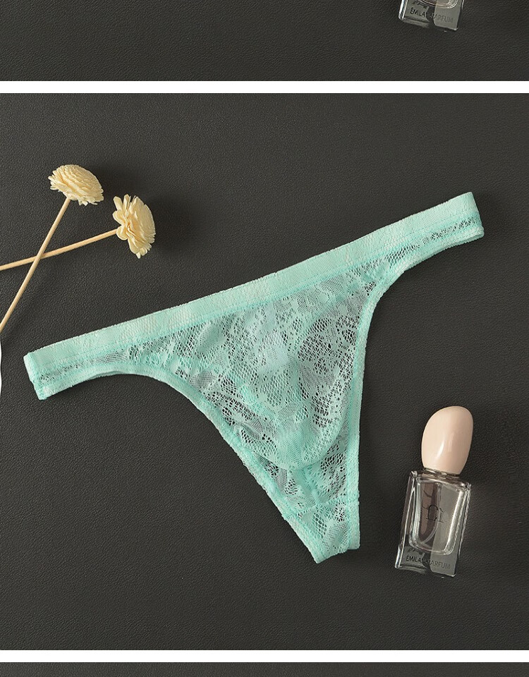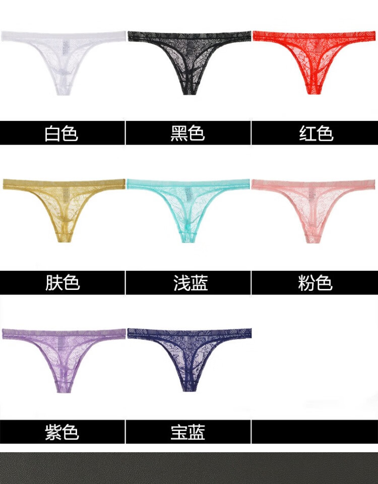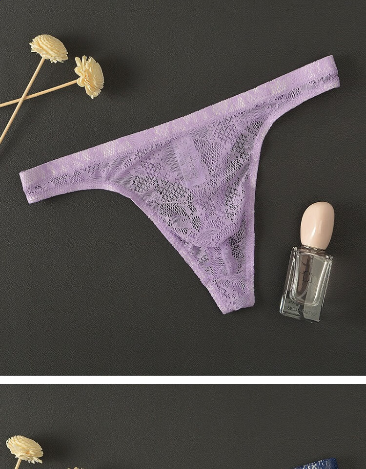 Ultra-thin Sexy Lace Transparent T-Pants Men's Low-Waist Seamless Men's Underwear Mesh Comfortable Breathable Youth T-Pants Purple XL