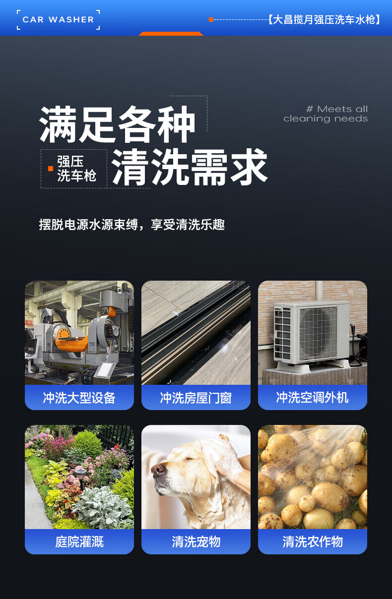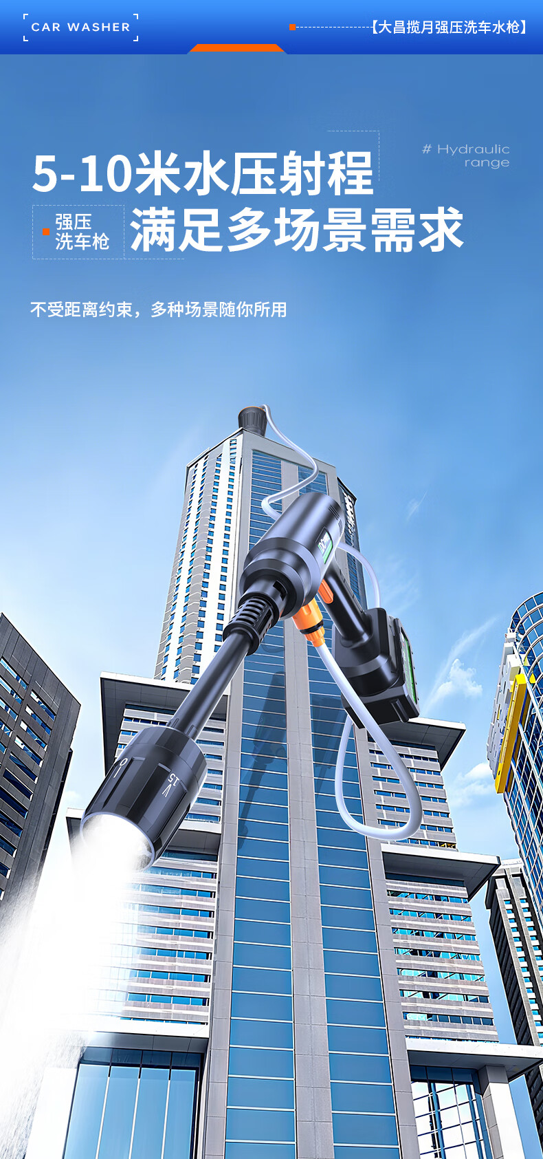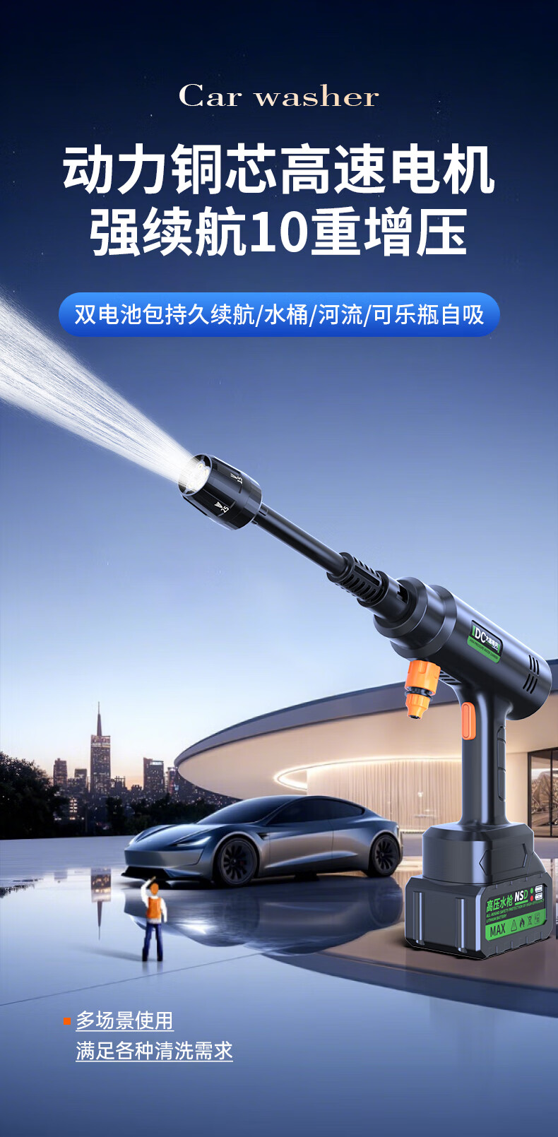 Dachang Lanyue car wash water gun ultra-high pressure household flushing spray gun car washing machine wireless cleaning brush car pump high-power car washing artifact 300W hot-selling upgraded supercharged version + dual electric + adjustable pressure gun head + aviation soft bag German brushless induction motor car washing high-pressure spray gun watering flowers and floor washing powerful cleaning machine