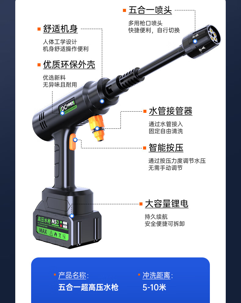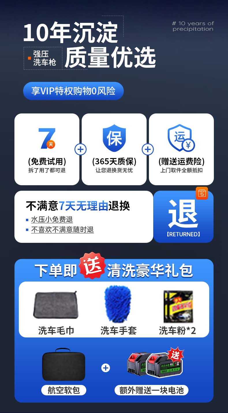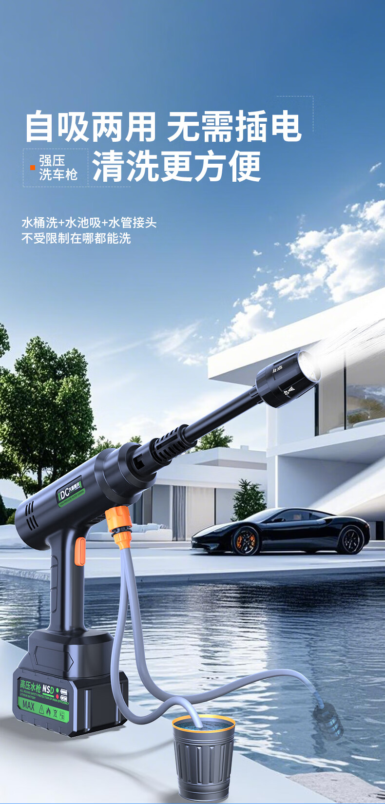 Dachang Lanyue car wash water gun ultra-high pressure household flushing spray gun car washing machine wireless cleaning brush car pump high-power car washing artifact 300W hot-selling upgraded supercharged version + dual electric + adjustable pressure gun head + aviation soft bag German brushless induction motor car washing high-pressure spray gun watering flowers and floor washing powerful cleaning machine