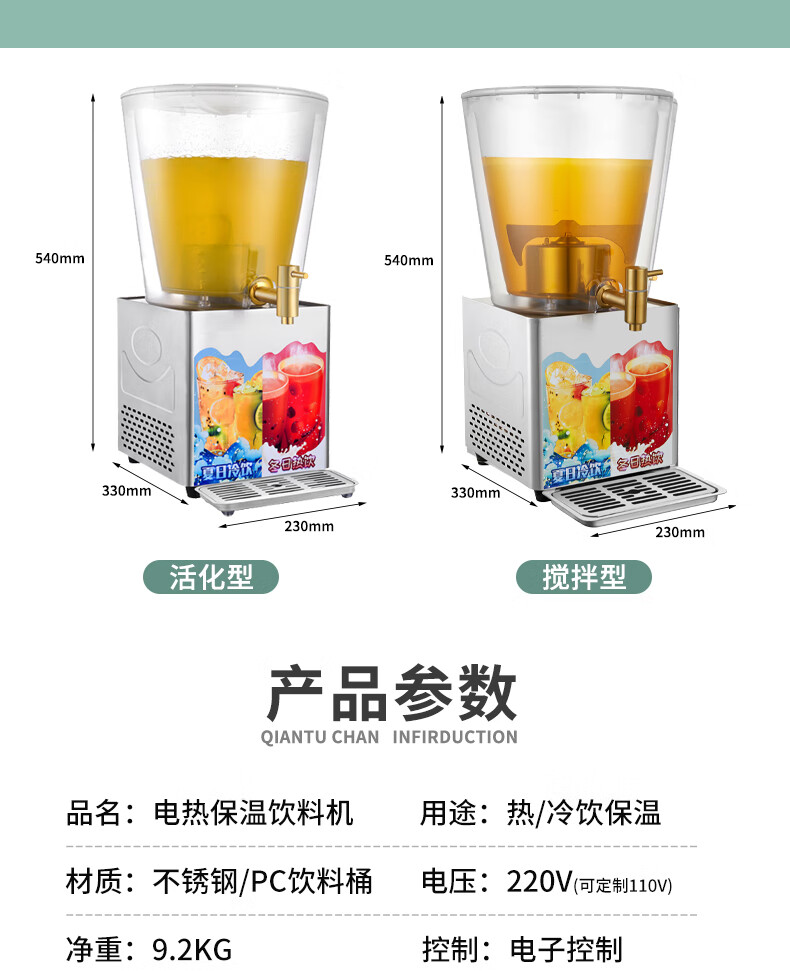 Jiangliangren beverage machine commercial cold drink machine juice machine self-service beverage machine large capacity 10L single barrel stirring type iced sour plum soup juice cold drink machine cafeteria hotel 10 liter hot and cold integrated mixing type beverage machine