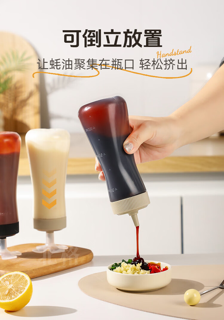 UOSO oyster sauce special bottle, reversible squeeze bottle, food-grade tomato salad squeeze sauce bottle, pointed mouth, oil-consuming squeeze bottle, reversible oyster sauce squeeze bottle, white 1 piece