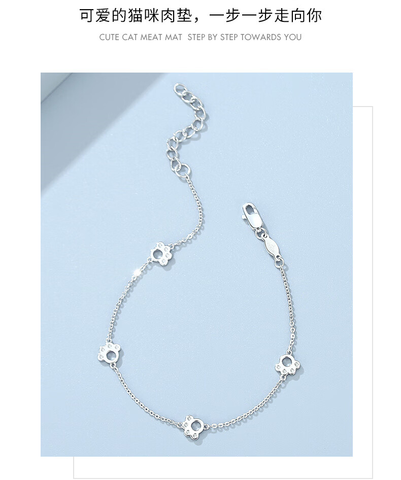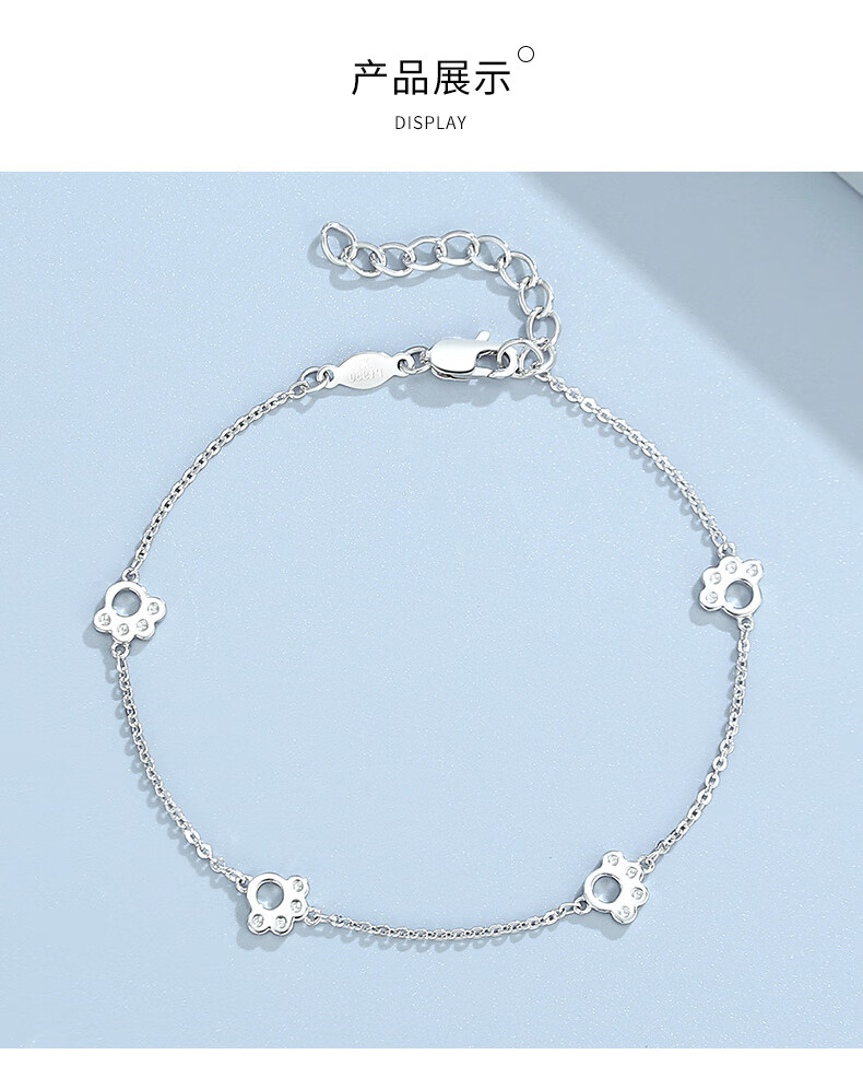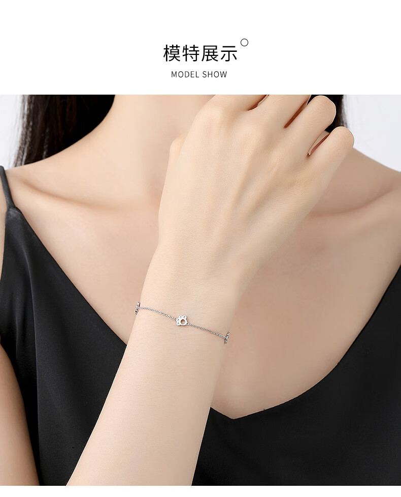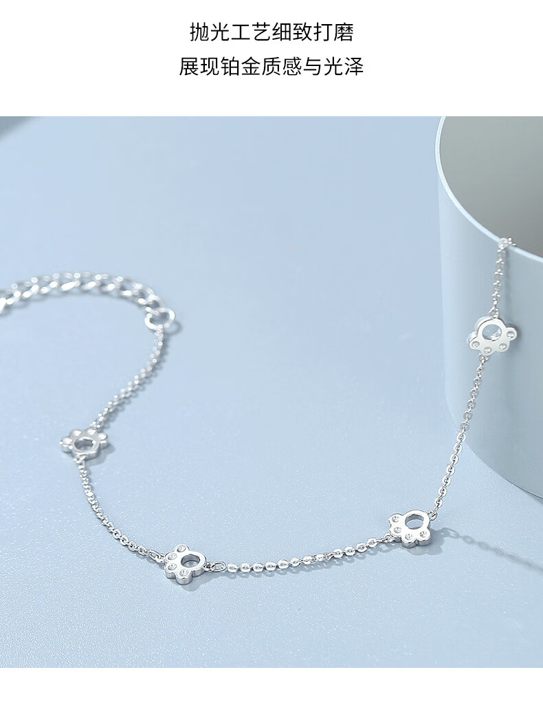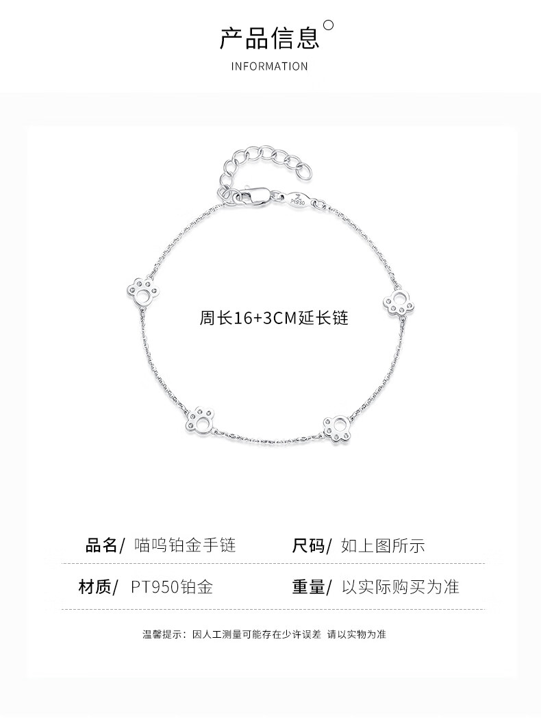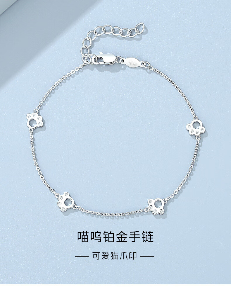 Falling Flowers and Crying Spring pt950 platinum bracelet for women, cute cat paw platinum bracelet, fashionable gift for girlfriend, platinum, length 16+3cm