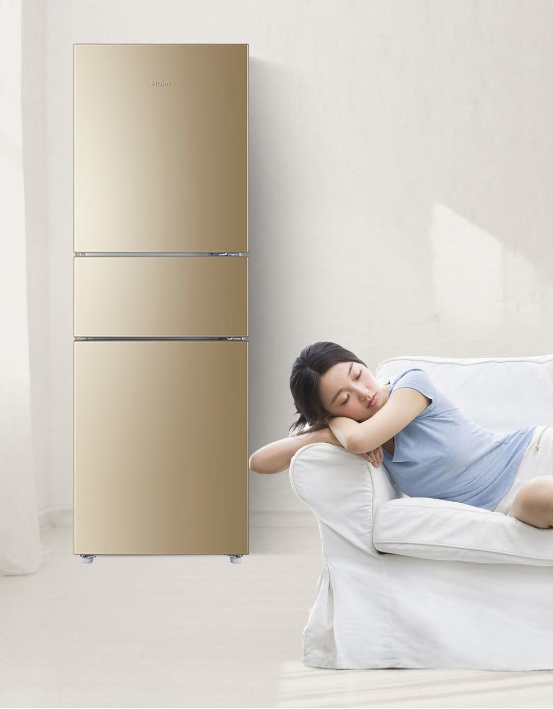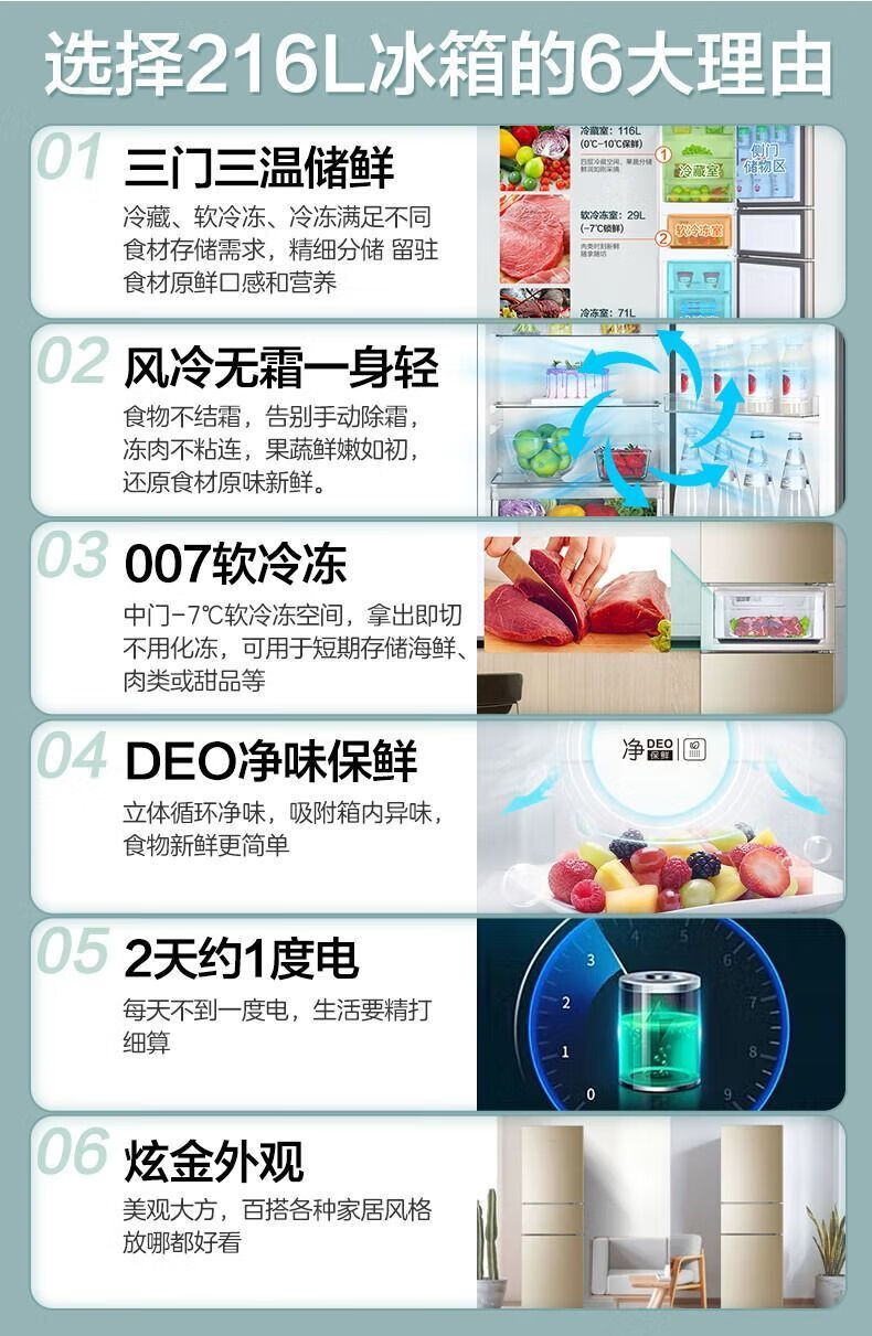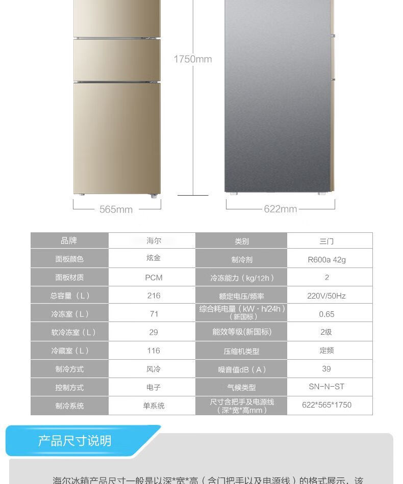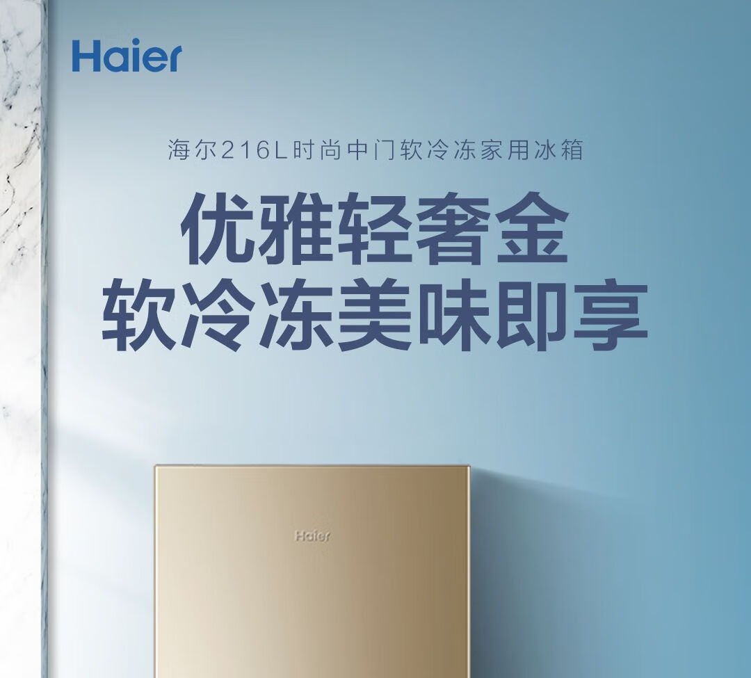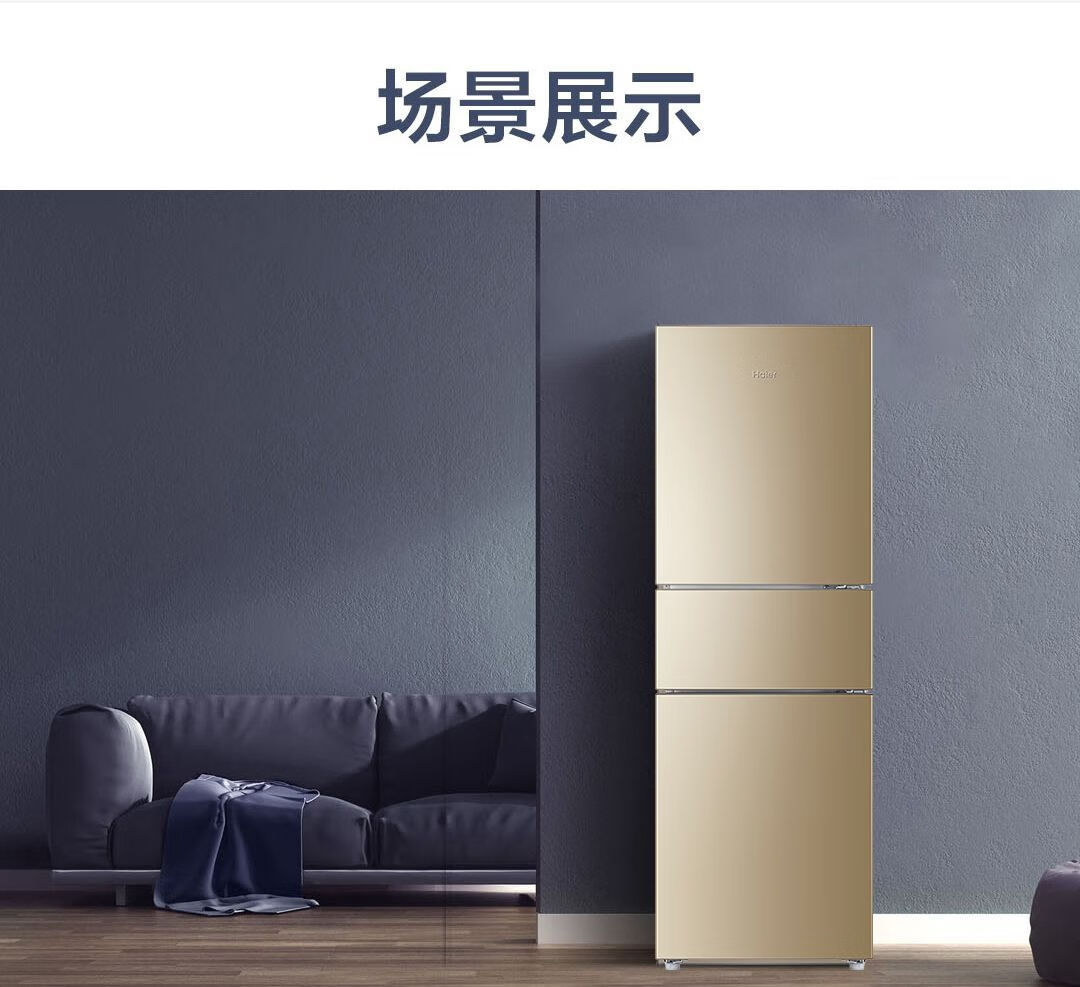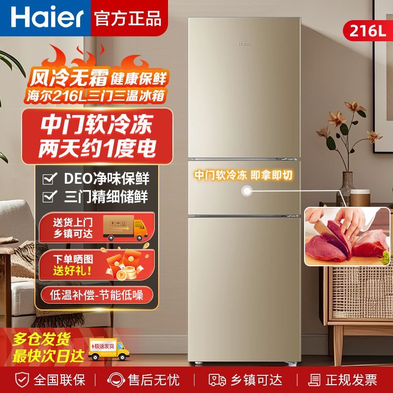 Haier refrigerator 216 liter three-door ultra-thin small household energy-saving air-cooled, odor-free and fresh-keeping three-door small refrigerator 216 liter three-door air-cooled frost-free DEO odor purification system
