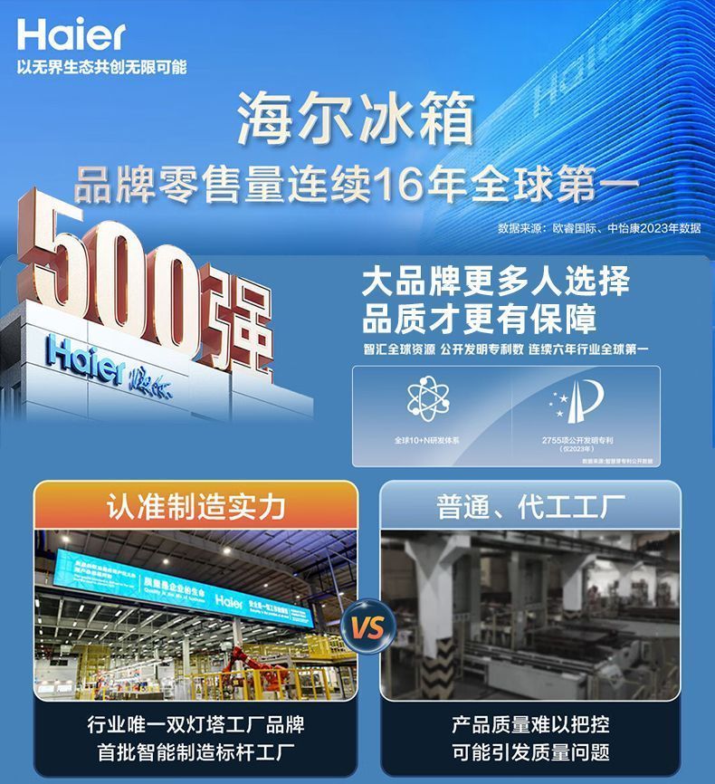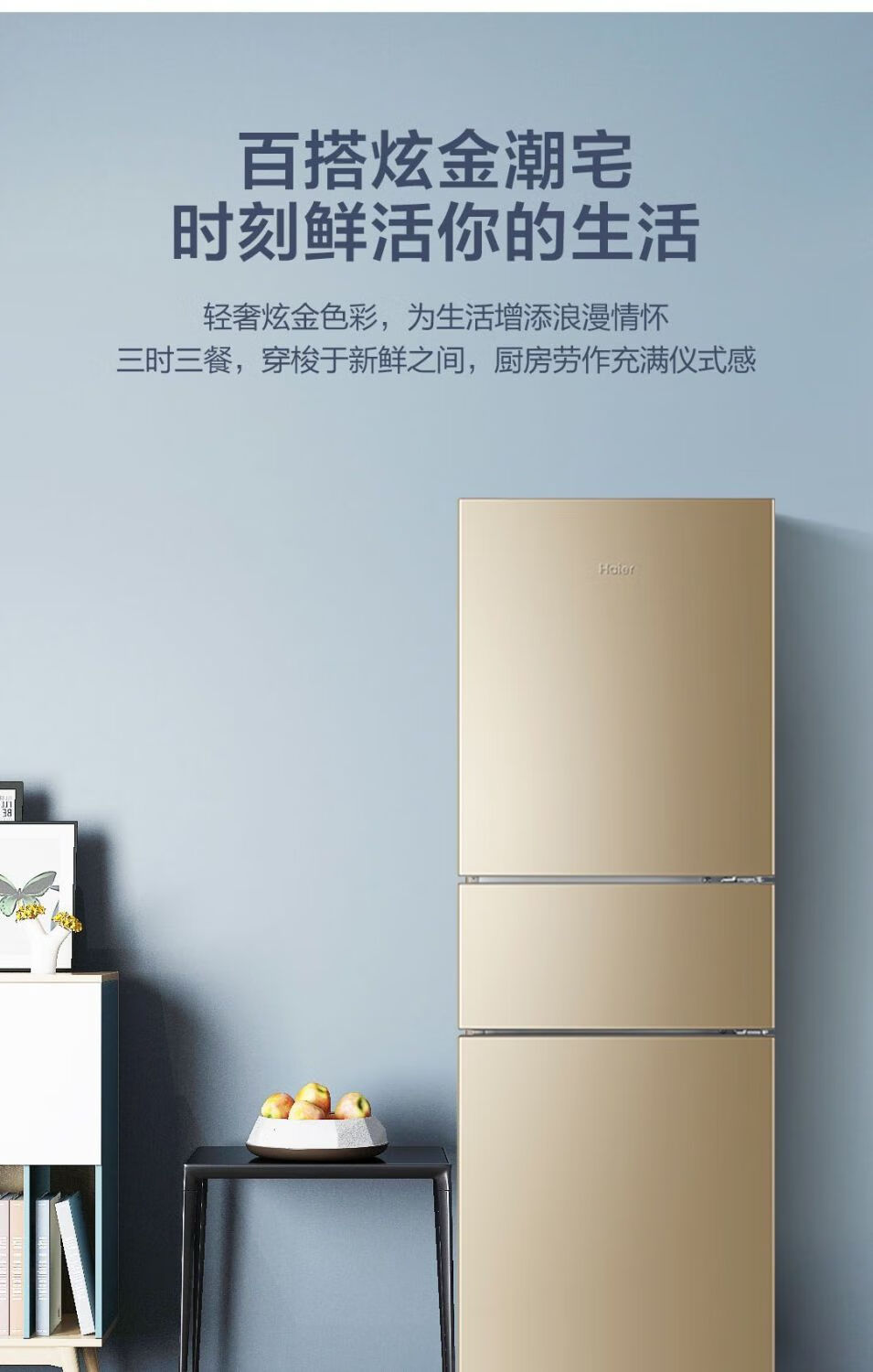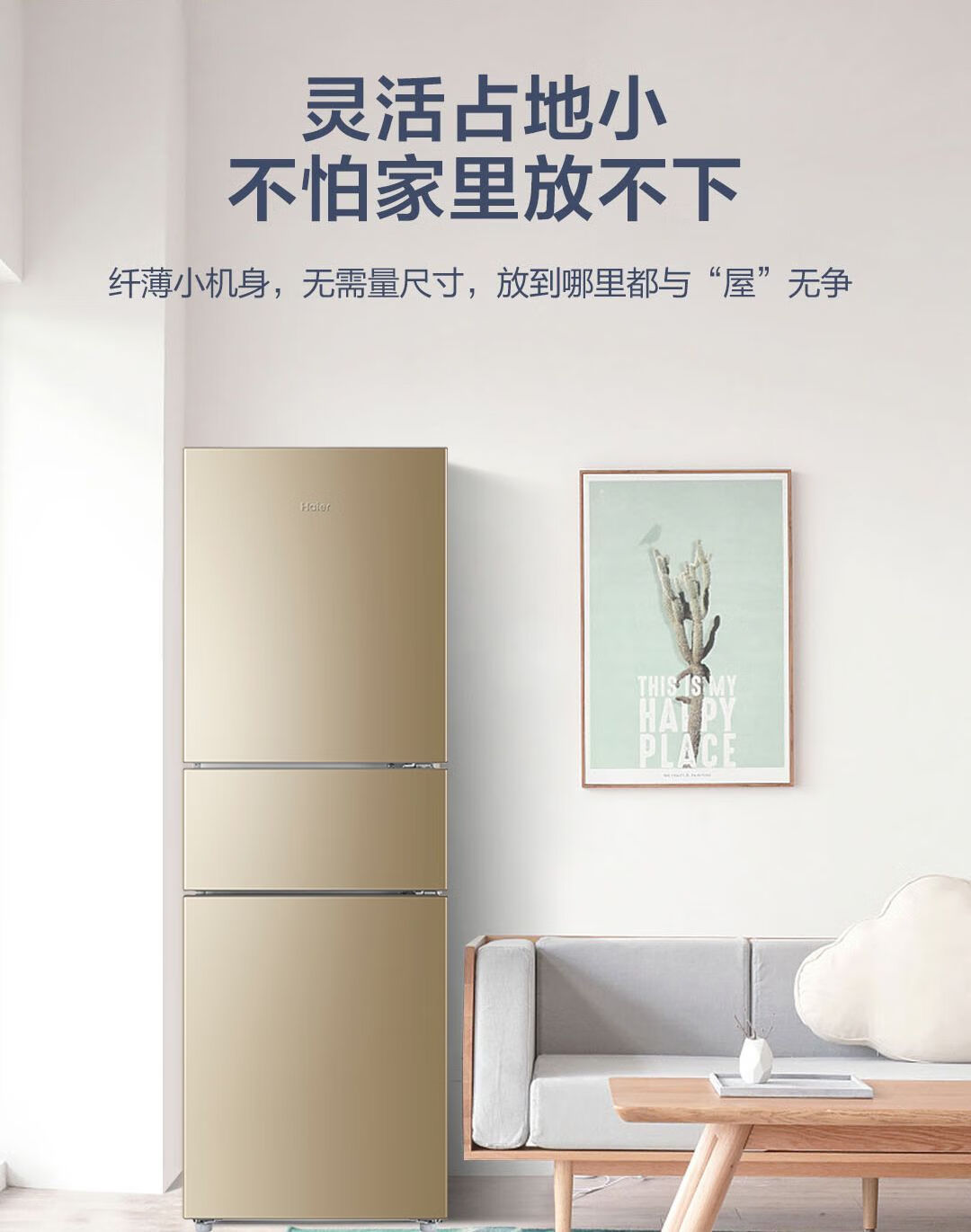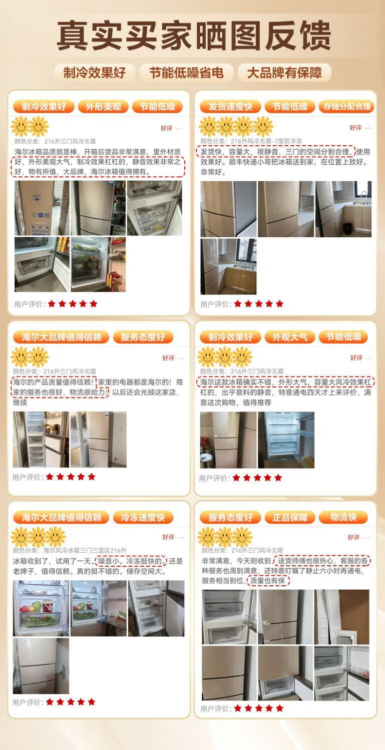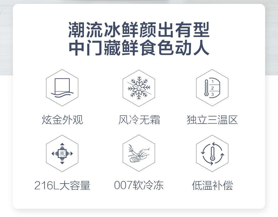 Haier refrigerator 216 liter three-door ultra-thin small household energy-saving air-cooled, odor-free and fresh-keeping three-door small refrigerator 216 liter three-door air-cooled frost-free DEO odor purification system