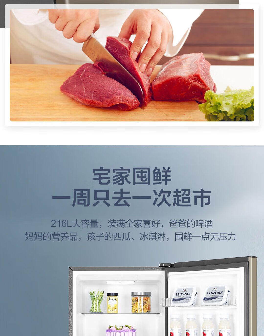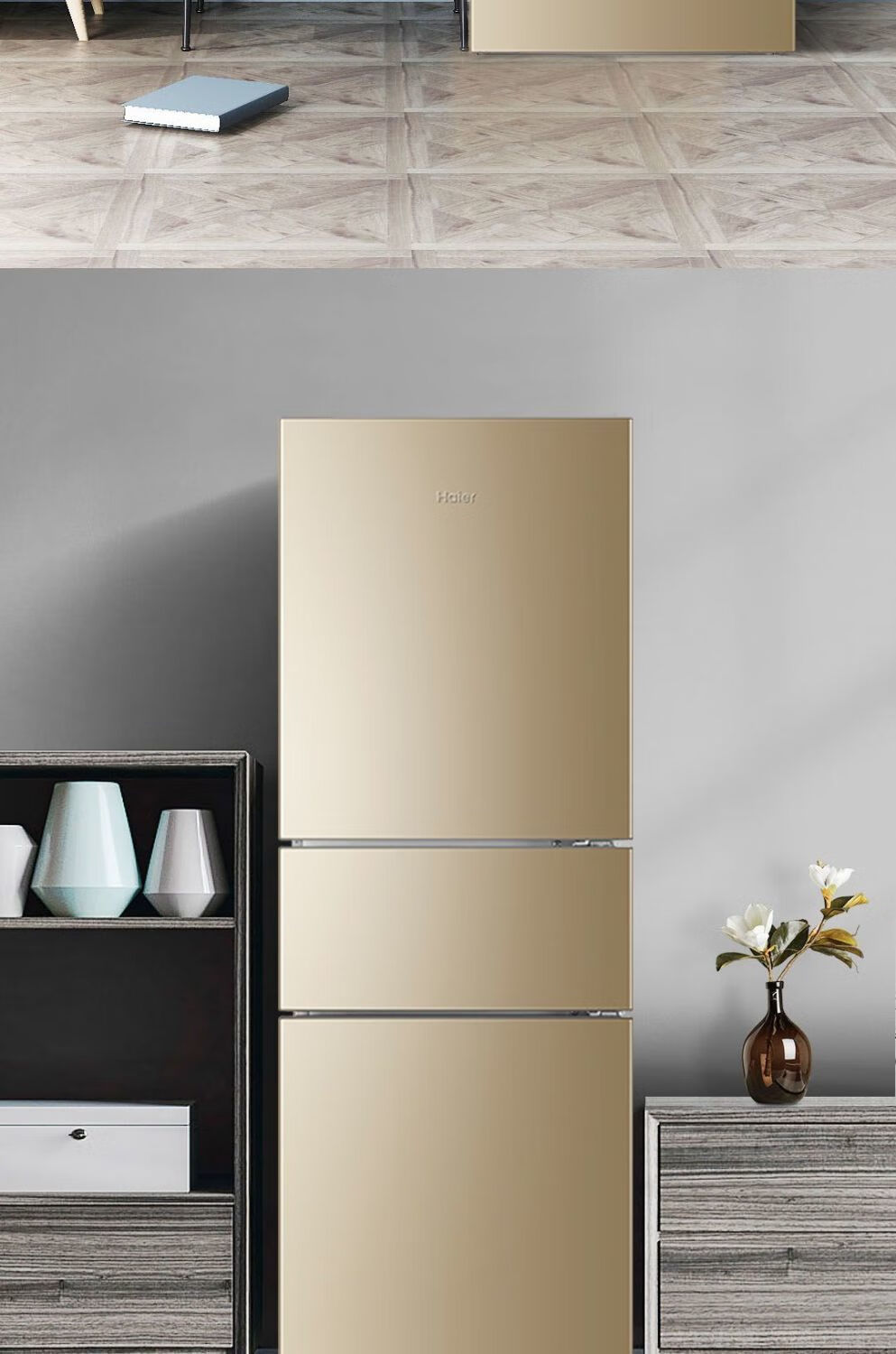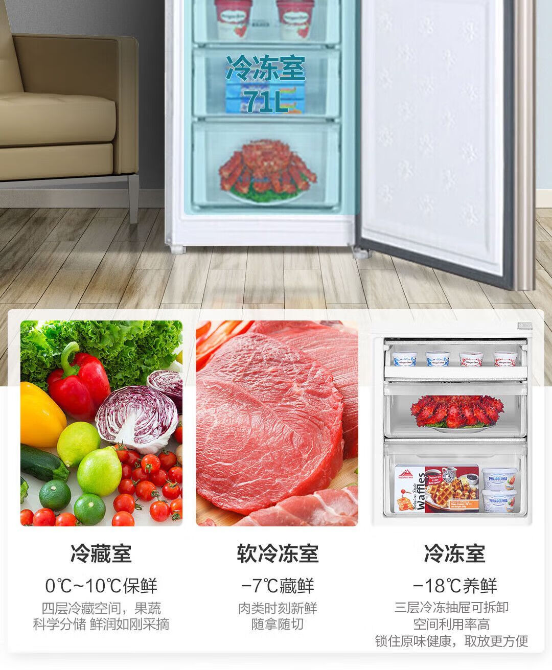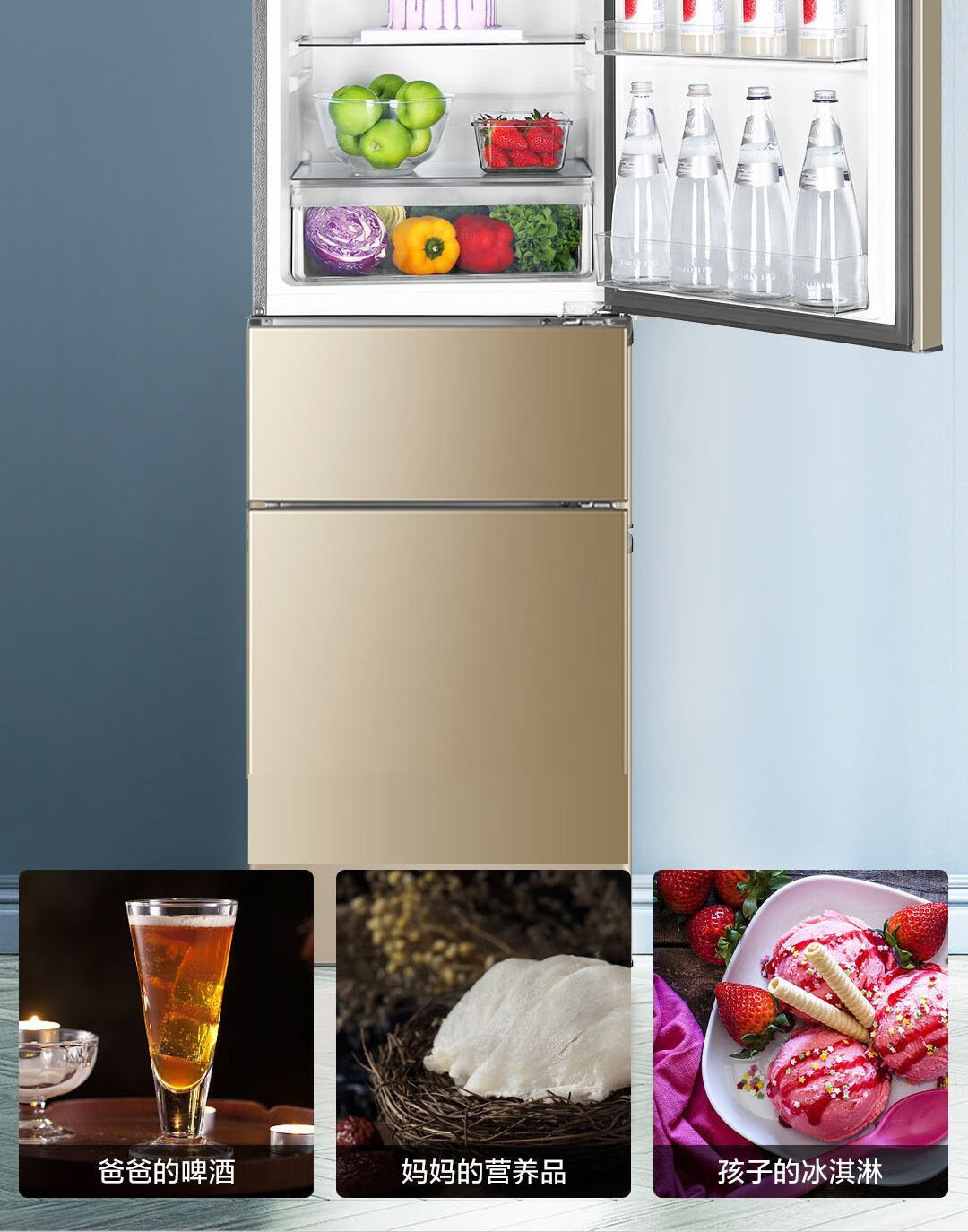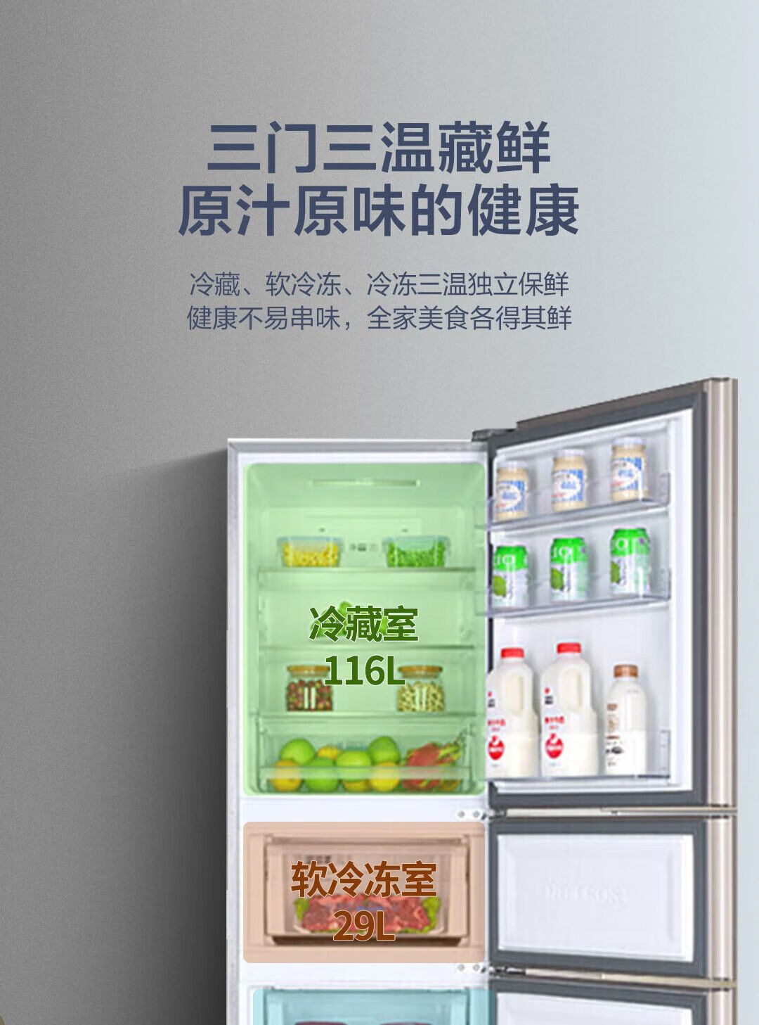 Haier refrigerator 216 liter three-door ultra-thin small household energy-saving air-cooled, odor-free and fresh-keeping three-door small refrigerator 216 liter three-door air-cooled frost-free DEO odor purification system