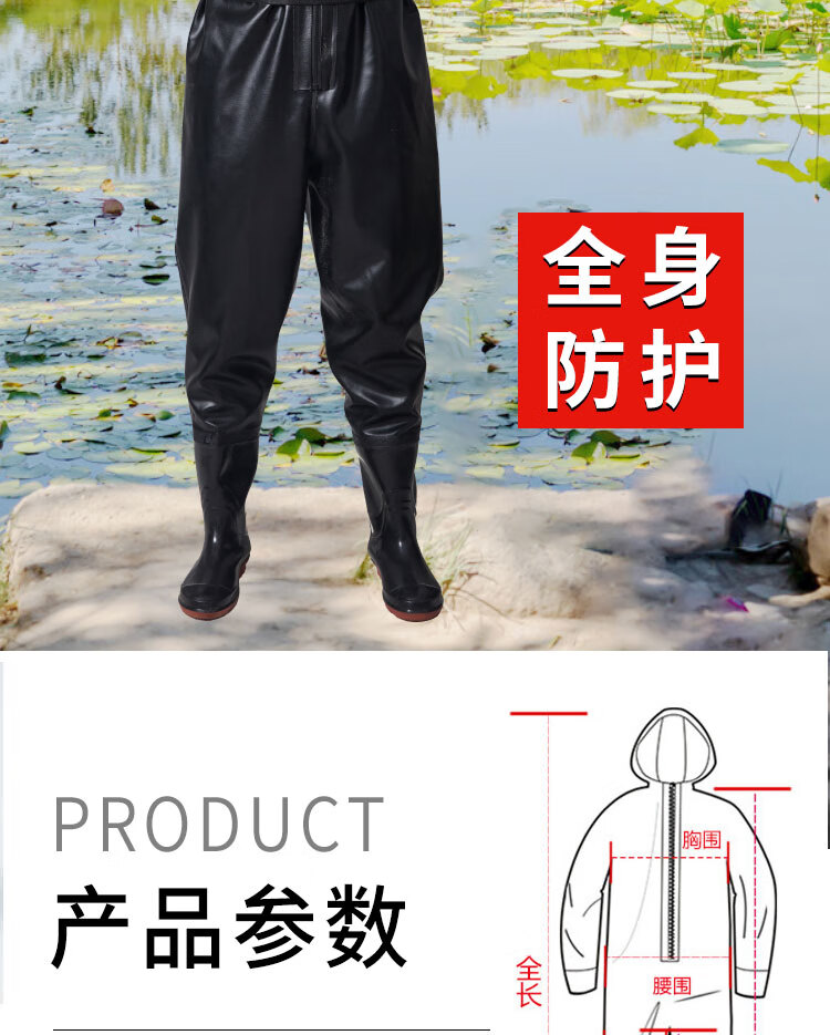 Wading suit, fish pants, waders, full-body waterproof pants, one-piece rain pants, rain boots, one-piece reservoir fish-catching trousers, wading pants, yellow rhombus cuffs, whole body 47