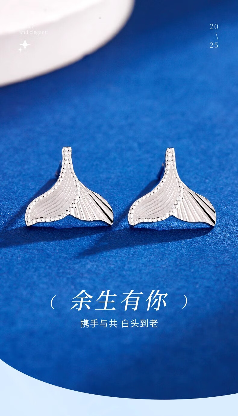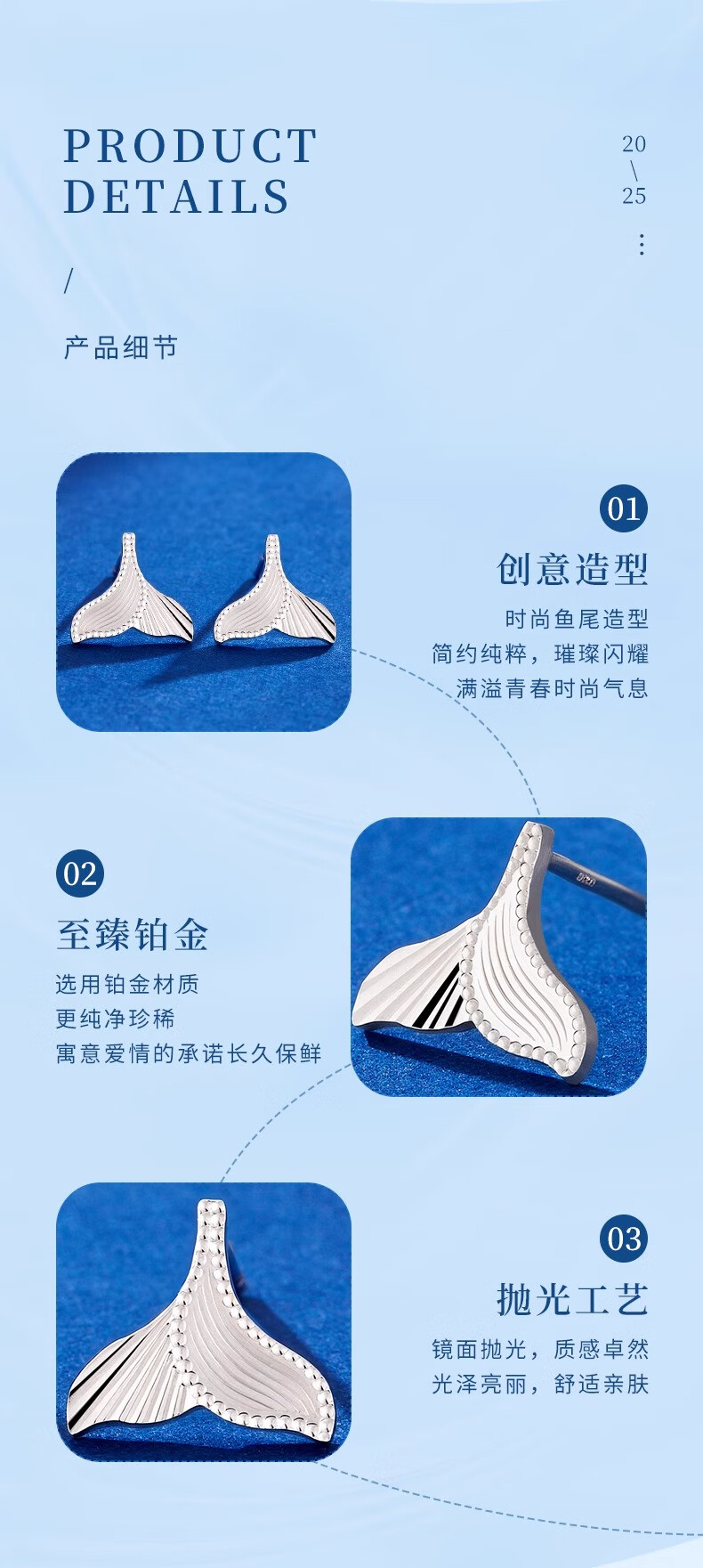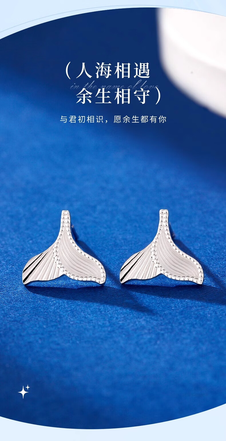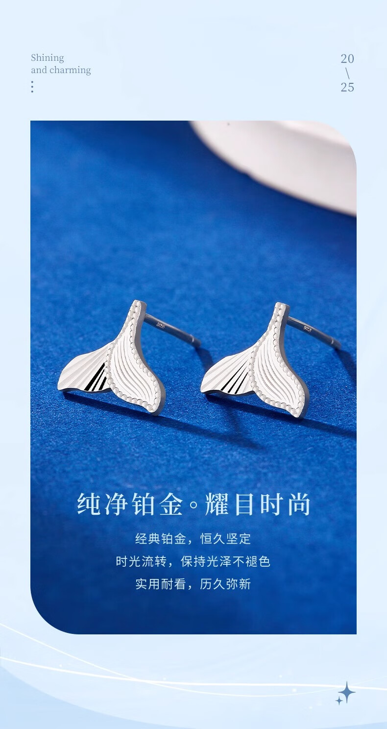 China Gold (CHINA GOLD) PT950 platinum fishtail earrings for women, new style, I will have you for the rest of my life, Valentine's Day birthday gift for girlfriend and wife PT950 platinum fishtail earrings, about 2.5g