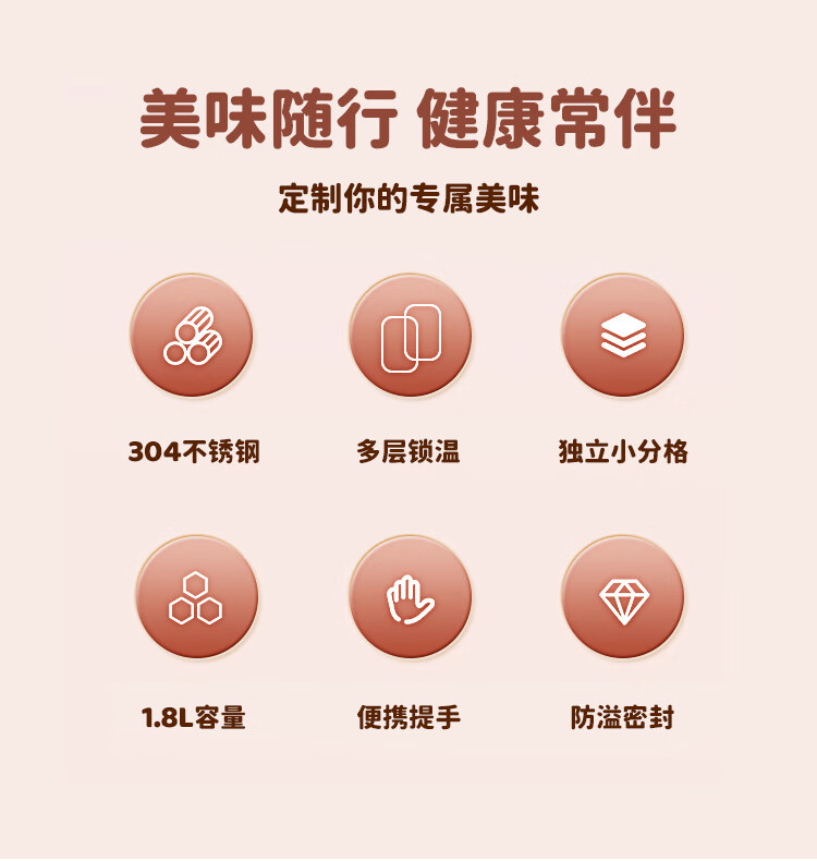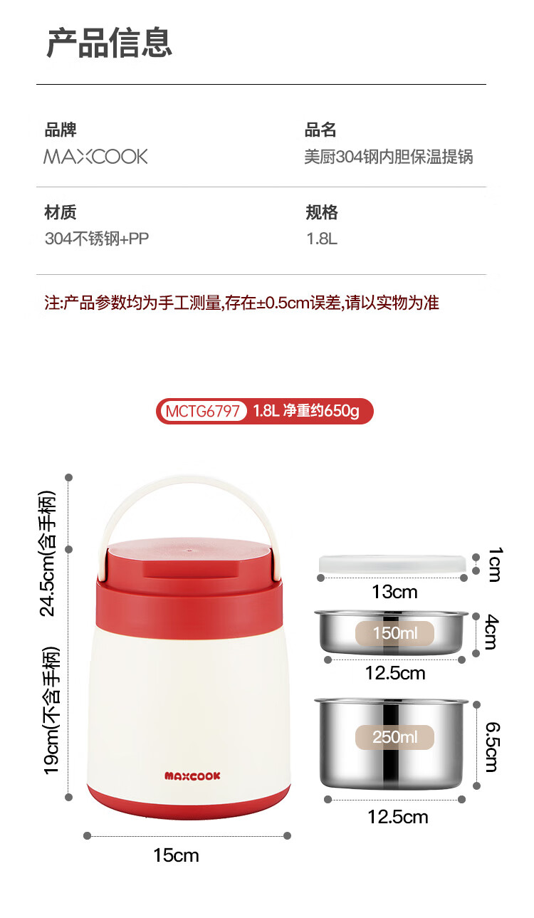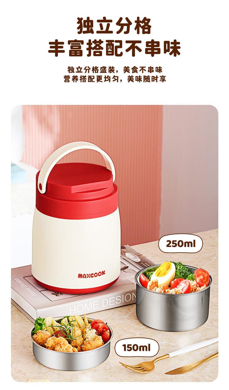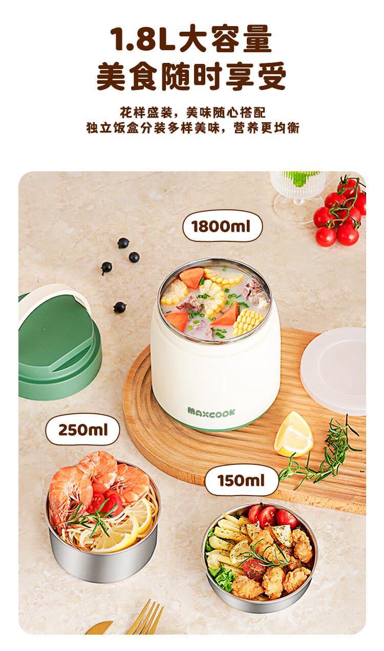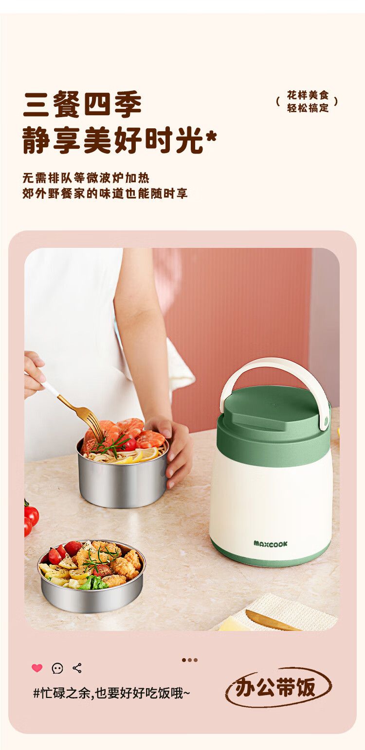 Meichu 304 stainless steel insulated lunch box office worker insulated bucket pot student lunch box lunch box large capacity 1.8L (fresh green) MCTG6933