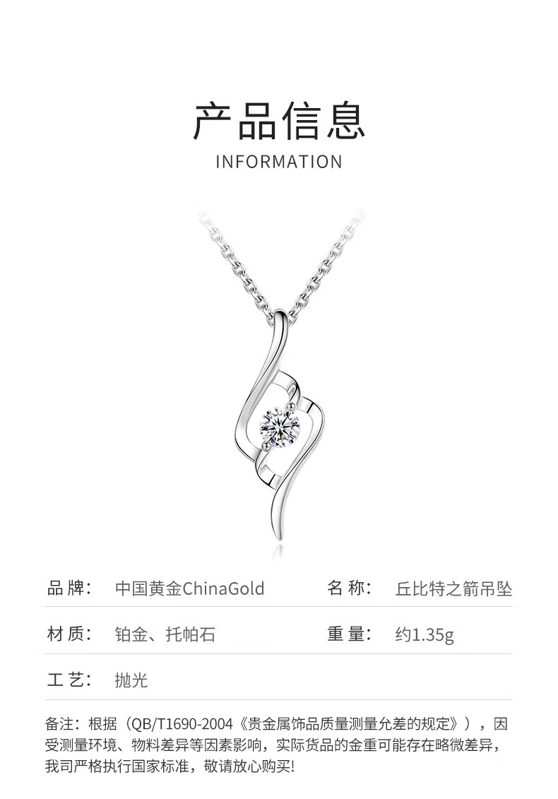CHINA GOLD PT950 Platinum Cupid's Arrow Pendant Women's Platinum Necklace Practical Valentine's Day Gift for Girlfriend's Birthday PT950 Platinum Cupid's Arrow Pendant Free Silver Chain Approximately 1.4g