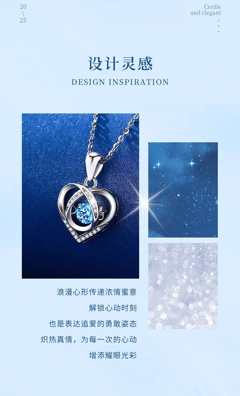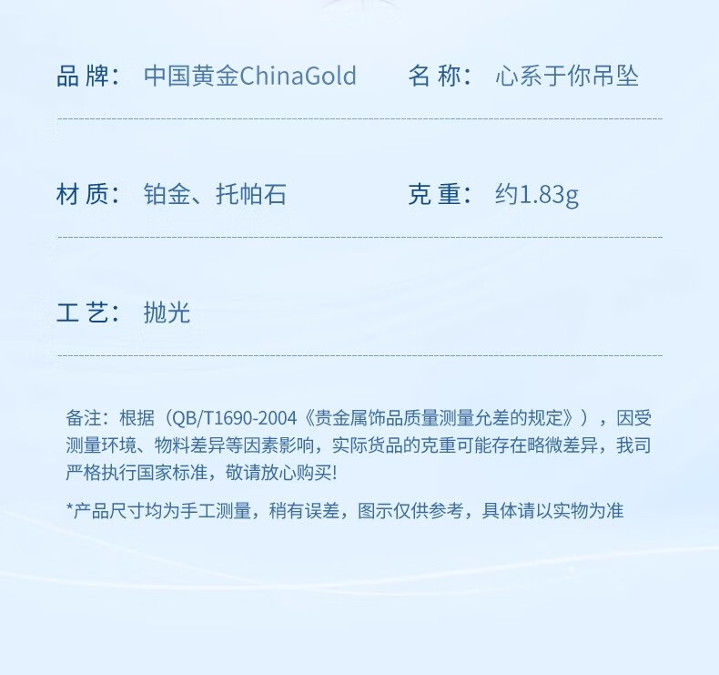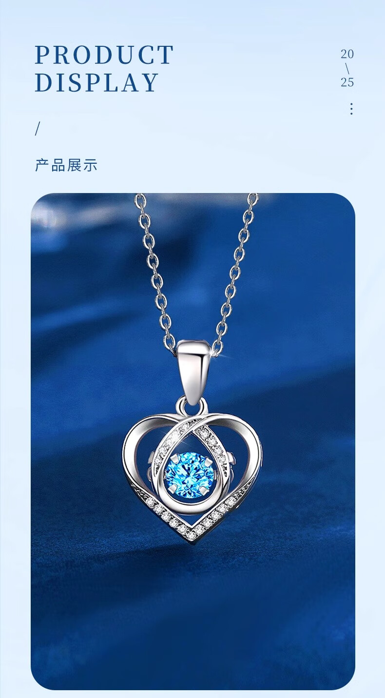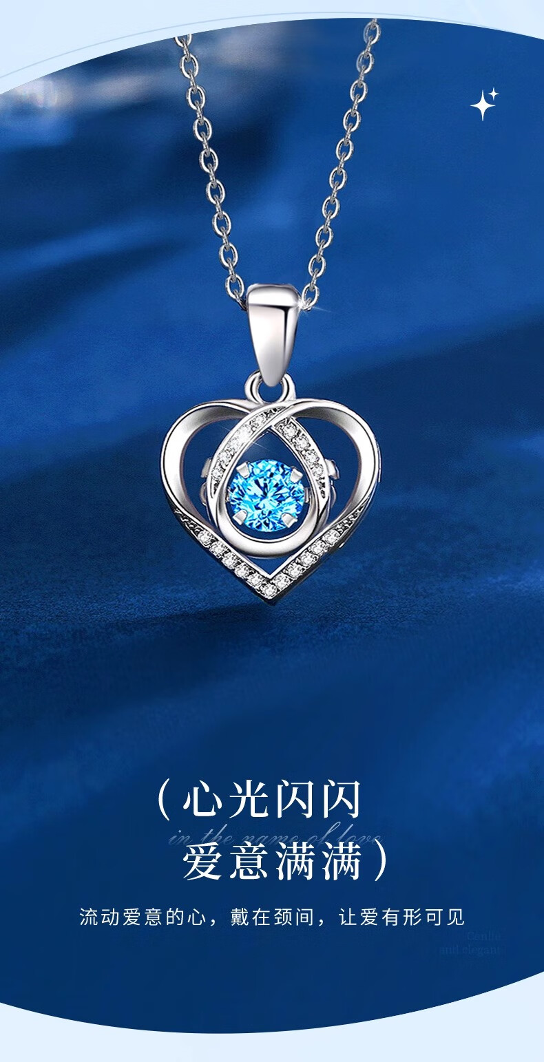 CHINA GOLD PT950 Platinum Love Blue Zirconium Pendant Women's Platinum Necklace Practical Valentine's Day Gift for Girlfriend's Birthday PT950 Platinum Love Pendant - About 1.9g Free Silver Chain