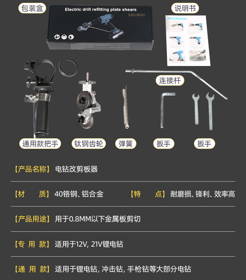 TMJD MISS electric drill to shear plate converter, universal electric drill shear plate converter to scissors, steel plate, aluminum plate, copper plate, iron sheet shear, new universal model, can cut iron-copper-aluminum-steel plates