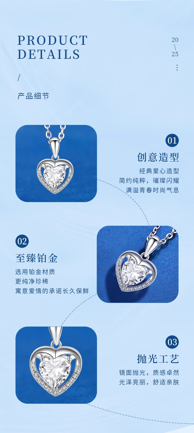 CHINA GOLD PT950 Platinum Love Pendant Women's Platinum Necklace Valentine's Day Practical Birthday Gift for Girls Wife Love PT950 Platinum Love Pendant About 1.6g Free Silver Chain