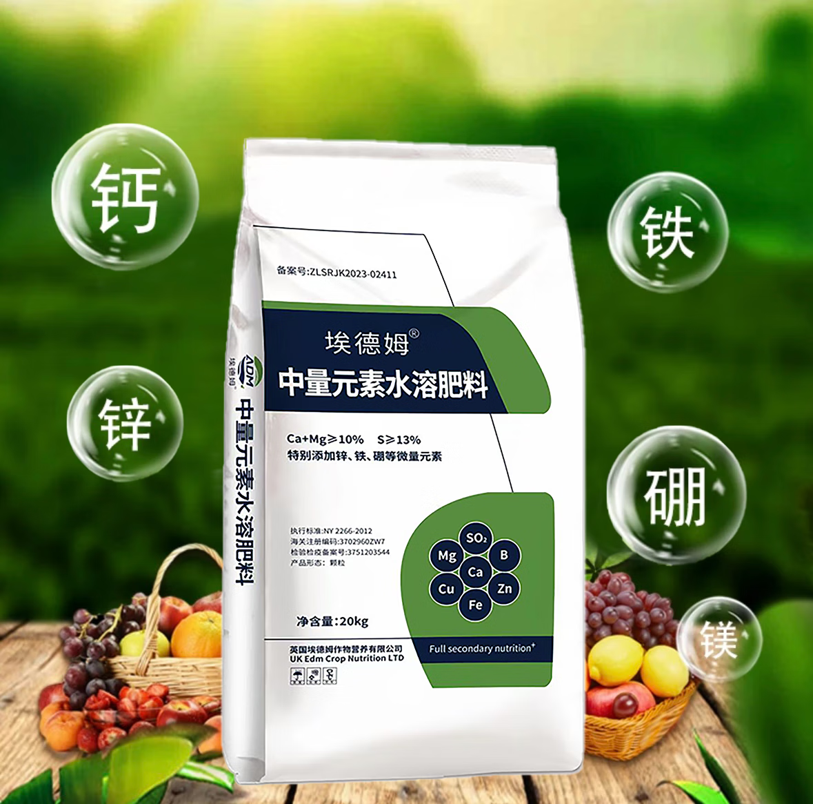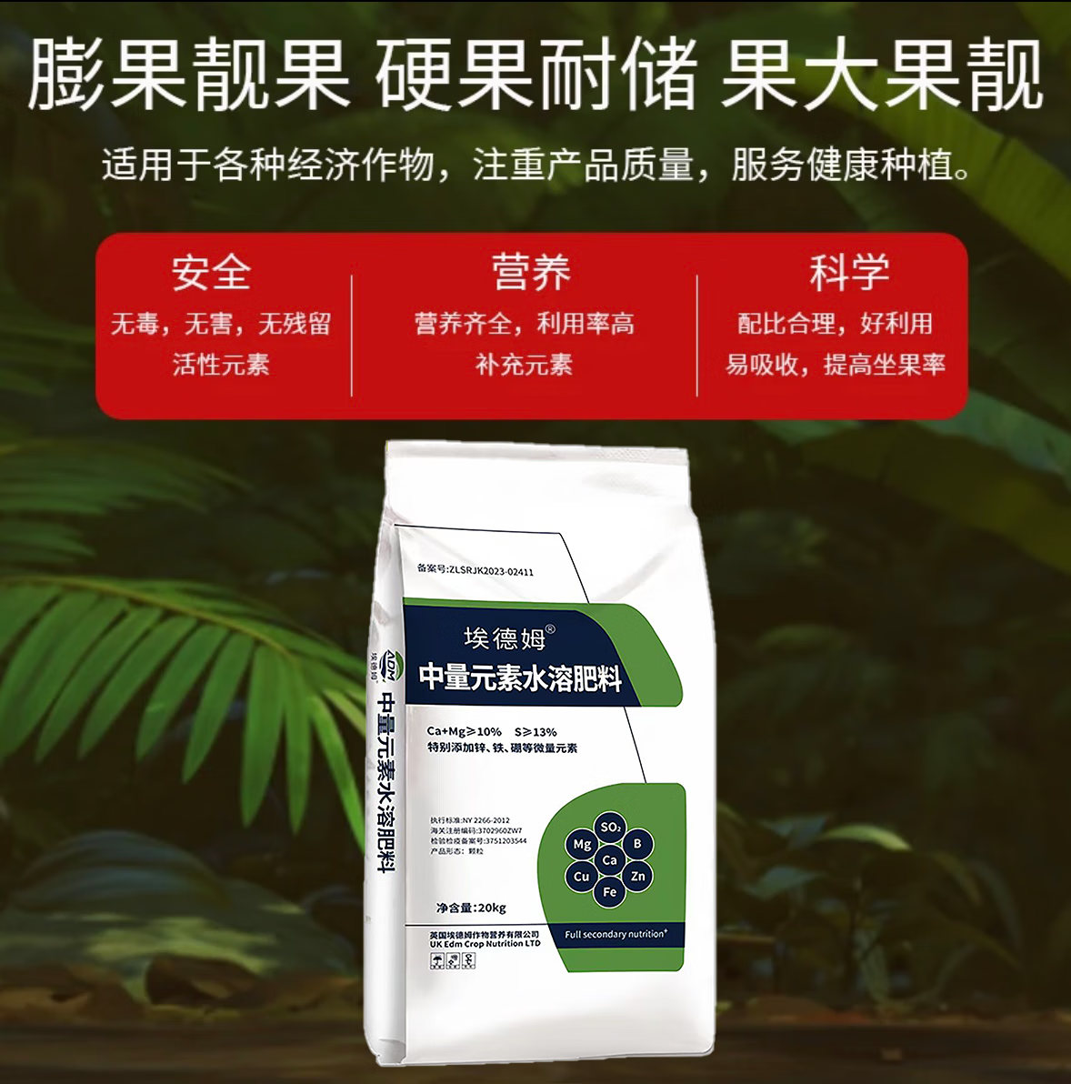 Edem medium element water-soluble fertilizer chelated calcium magnesium copper iron zinc boron anti-cracking fruit tree regreen fully water-soluble 1 pack 40 Jin Jin equals 0.5 kg