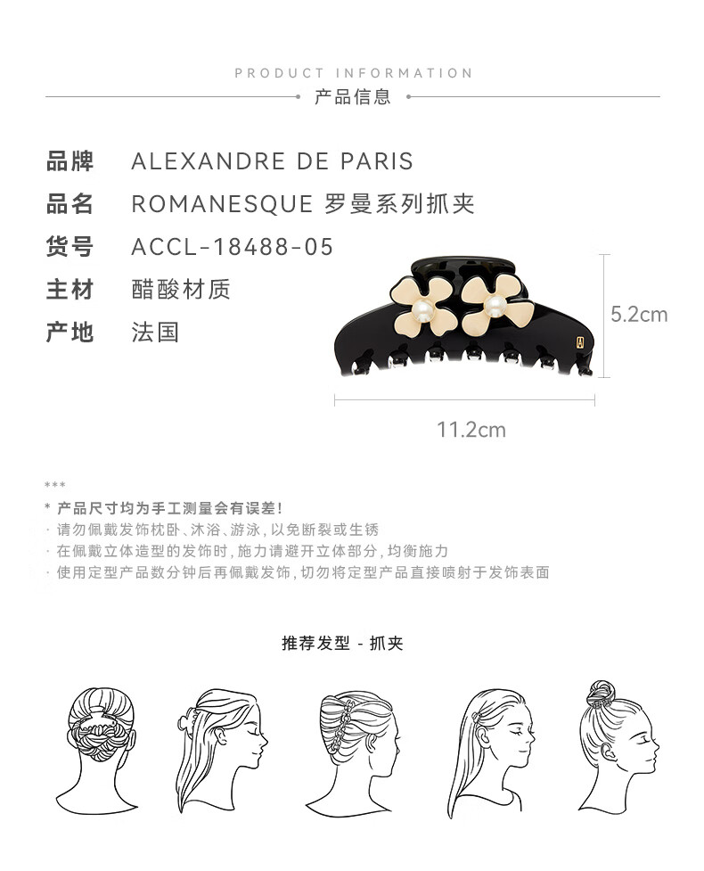 ALEXANDRE DE PARIS Christmas gift Roman large clip fashion shark clip women's headwear Y beige