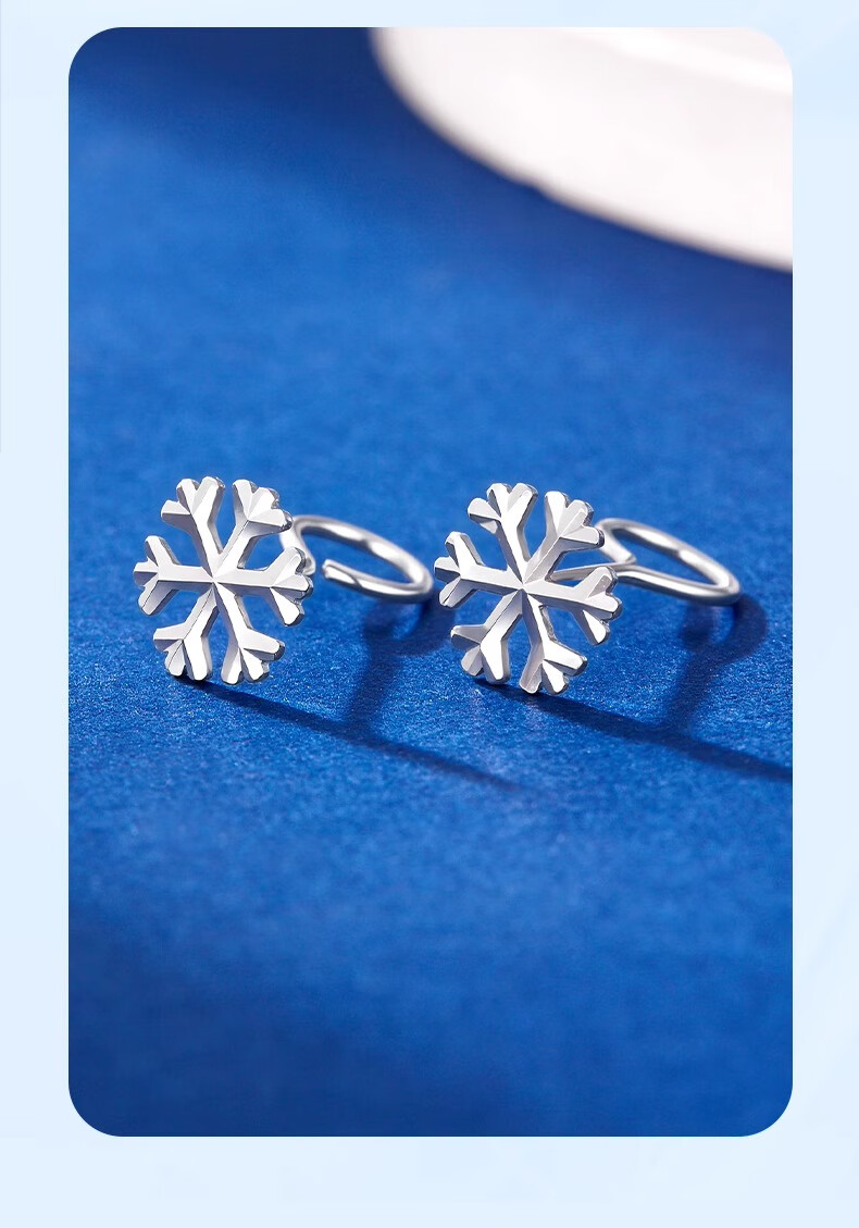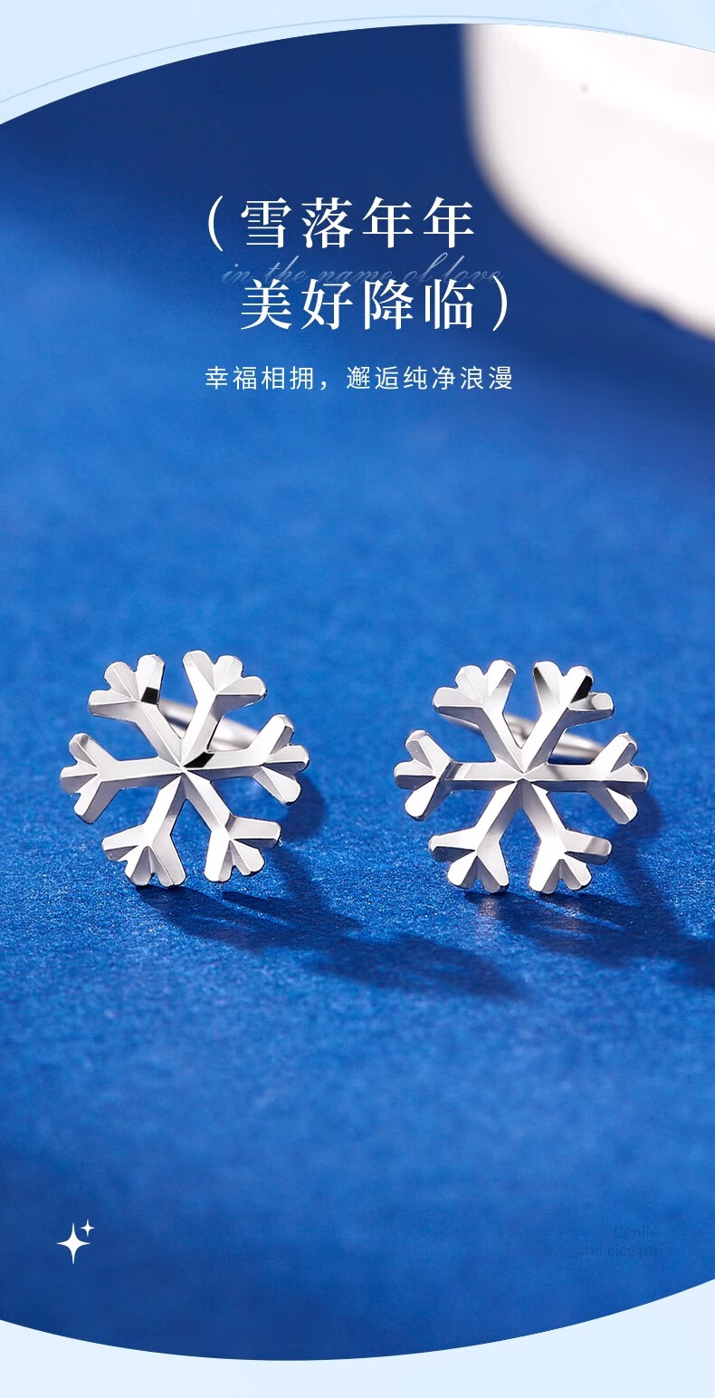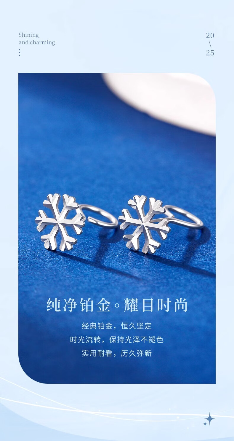 CHINA GOLD PT950 platinum snowflake earrings for women, fashionable and versatile, platinum Valentine's Day birthday gift for girlfriend and wife, platinum snowflake earrings, about 1g