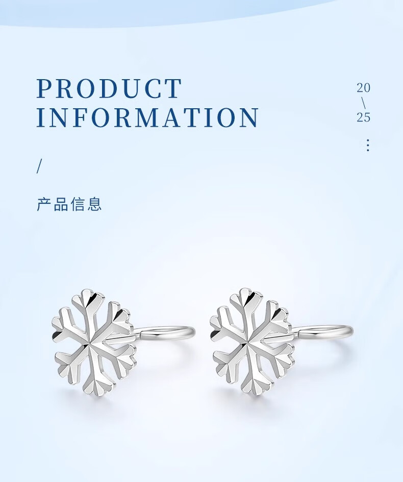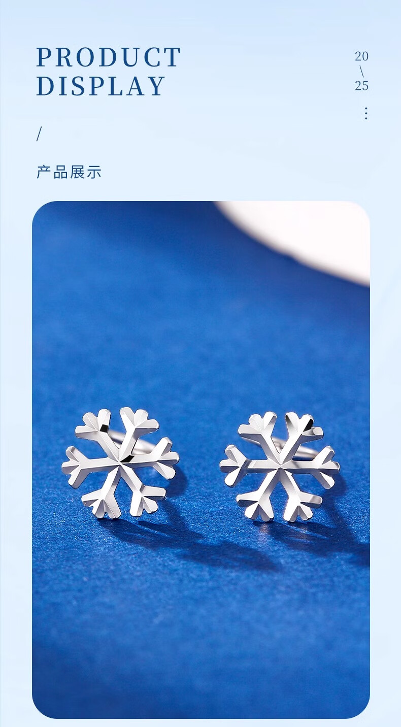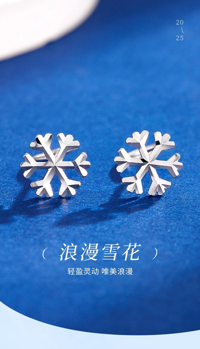 CHINA GOLD PT950 platinum snowflake earrings for women, fashionable and versatile, platinum Valentine's Day birthday gift for girlfriend and wife, platinum snowflake earrings, about 1g