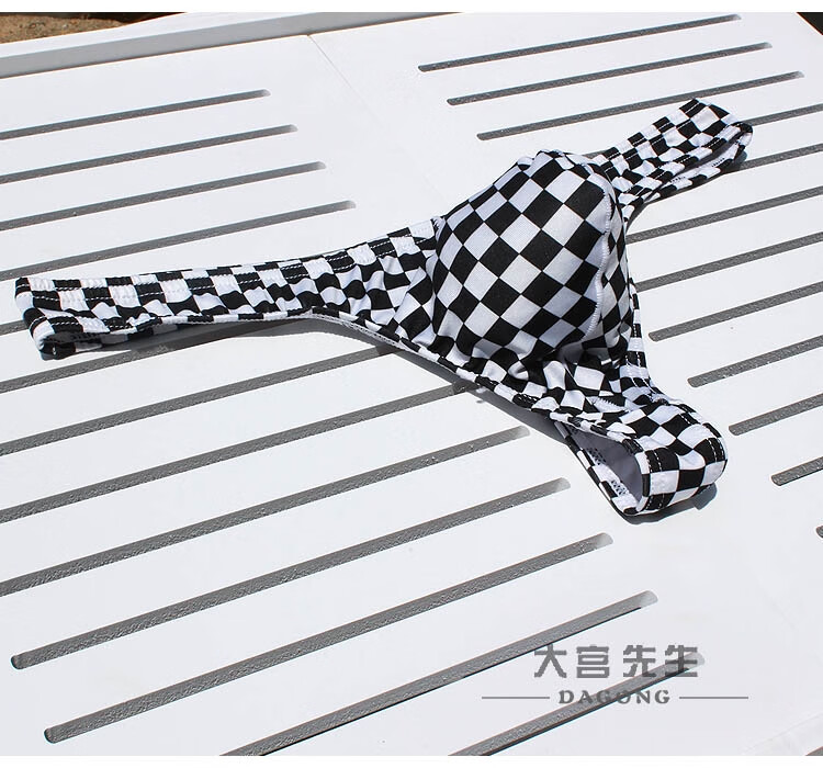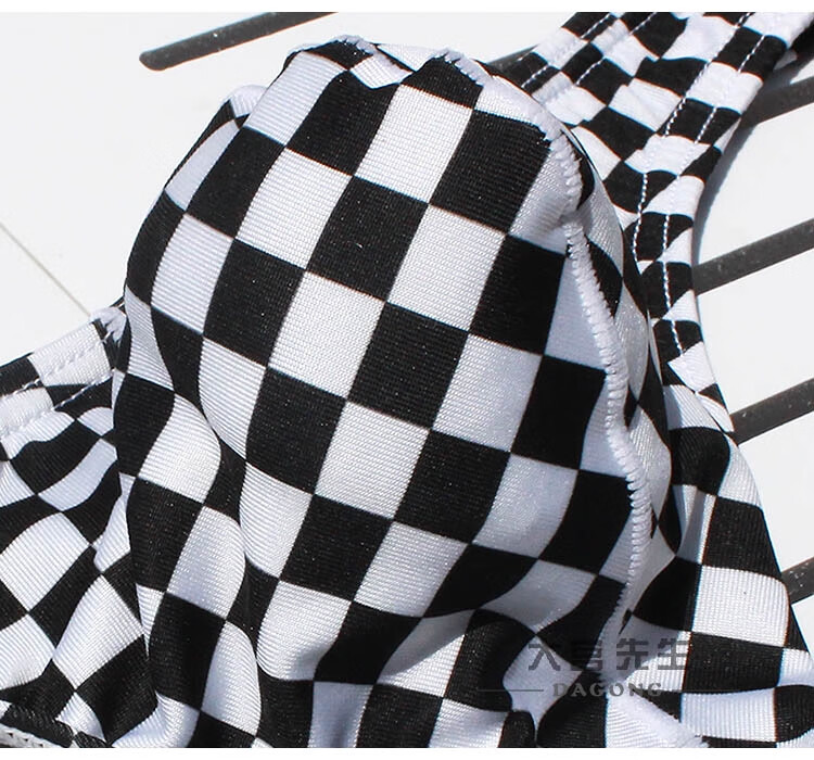 Mr. Omiya men's thong with concave and convex large bladder belt sexy bikini triangle cotton low-waist plaid underwear for men black and white plaid thong M