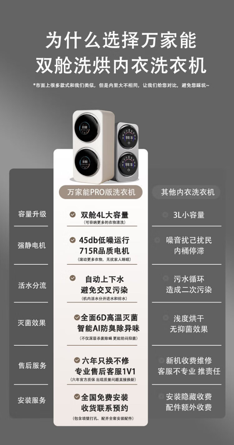 Vanguard underwear washing machine fully automatic wall-mounted mini small double-compartment underwear washing machine for washing socks special double barrel four-compartment washing and drying two-in-one artifact washing machine classic model desktop model intelligent double barrel + washing and drying + silver ion sterilization