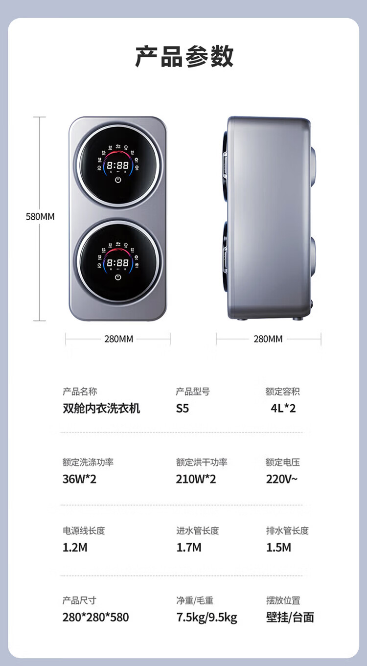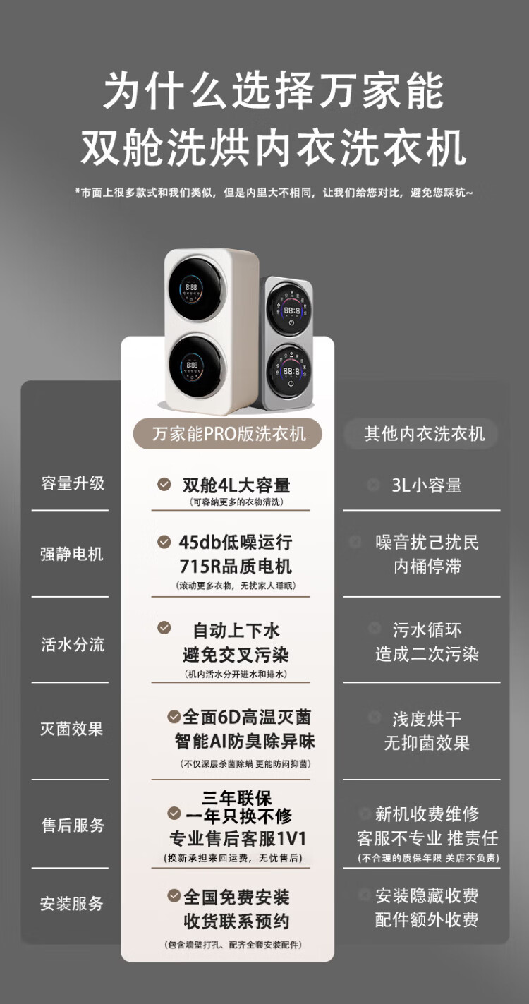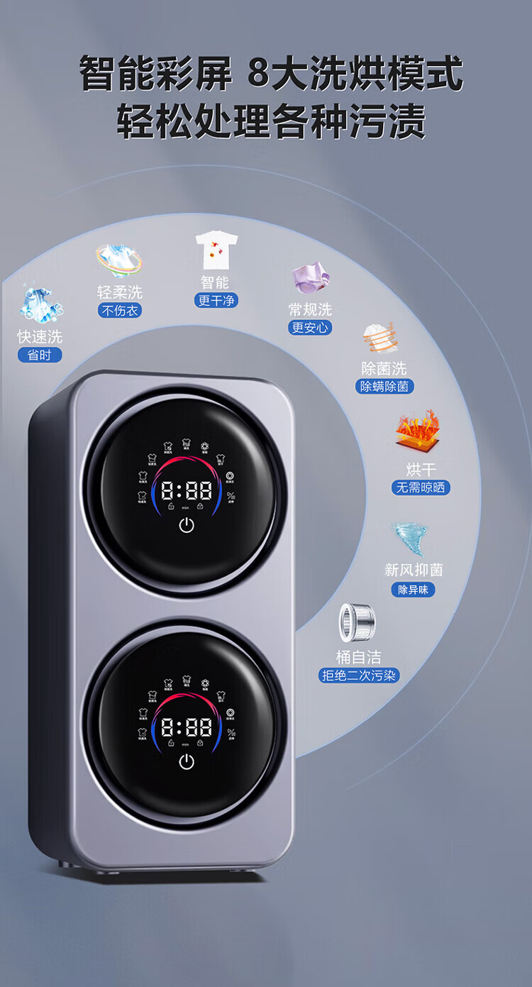 Wanjianeng maternal and infant grade sterilization double cabin underwear washing machine fully automatic washing and drying mini small double compartment partition wall hanging underwear washing machine special washing machine for socks 26 years new white wall hanging | desktop dual use upgraded intelligent AI high temperature drying and washing