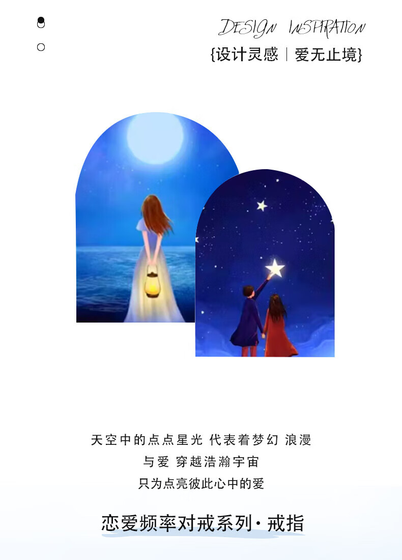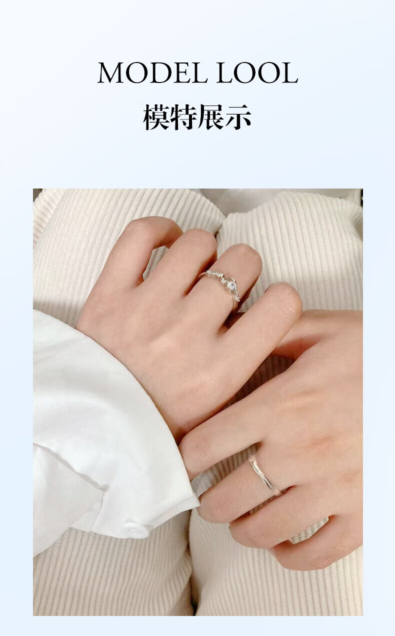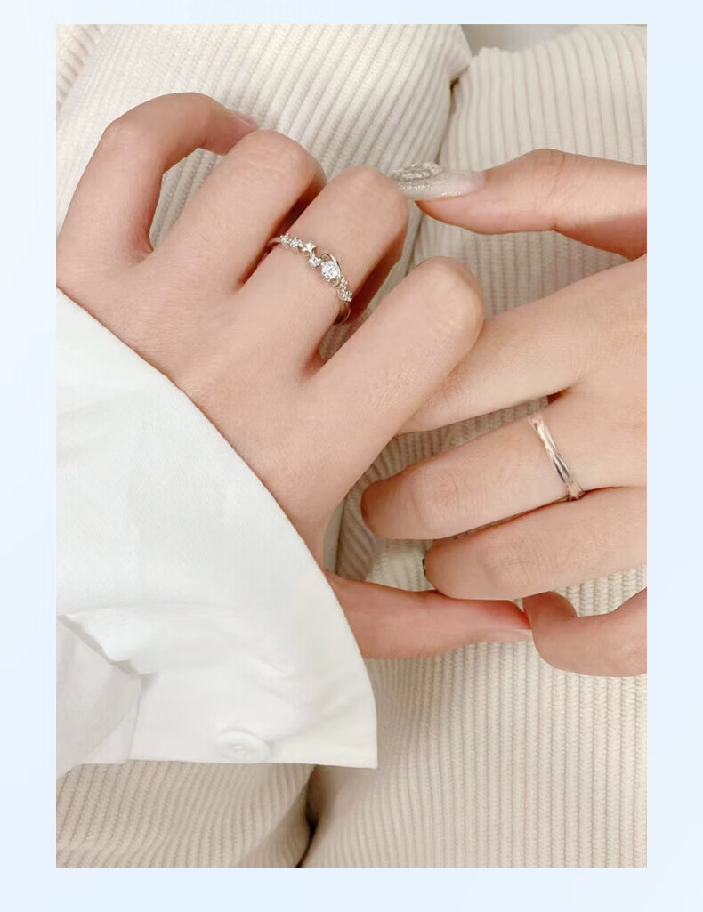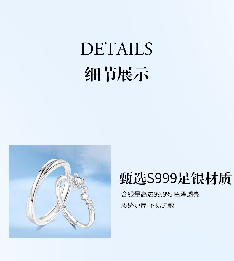 Lao Fengxiang Stars Accompanying Couple Ring S999 Sterling Silver Sweet Fairy Silver Ring Valentine's Day Birthday Gift for Girlfriend Stars Accompanying Couple Ring Brand Gift Box