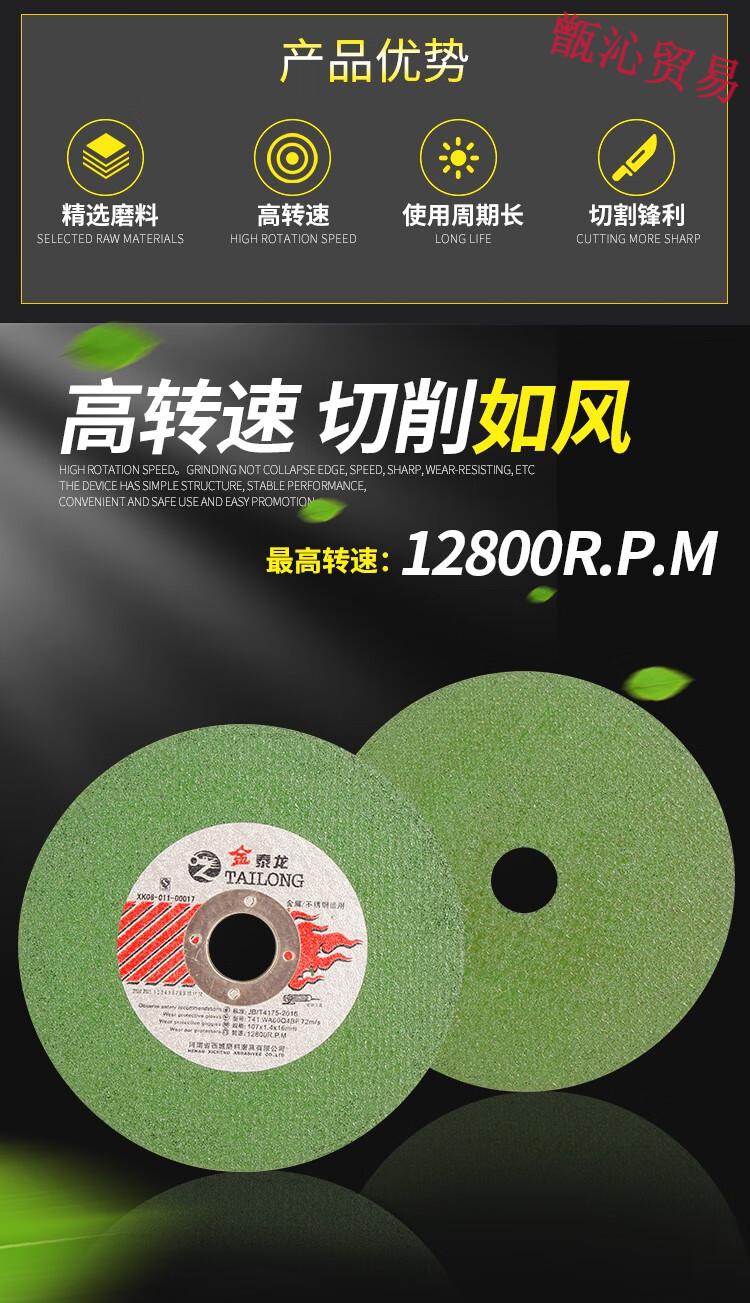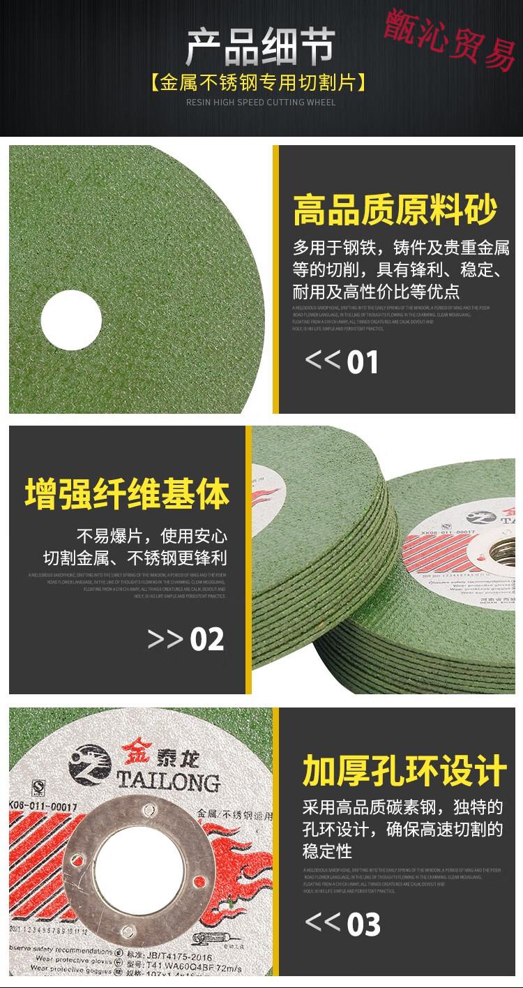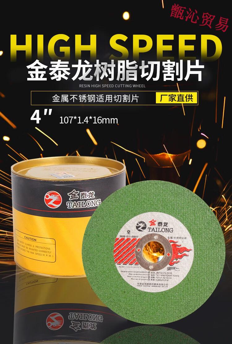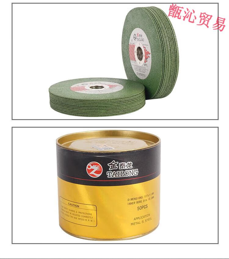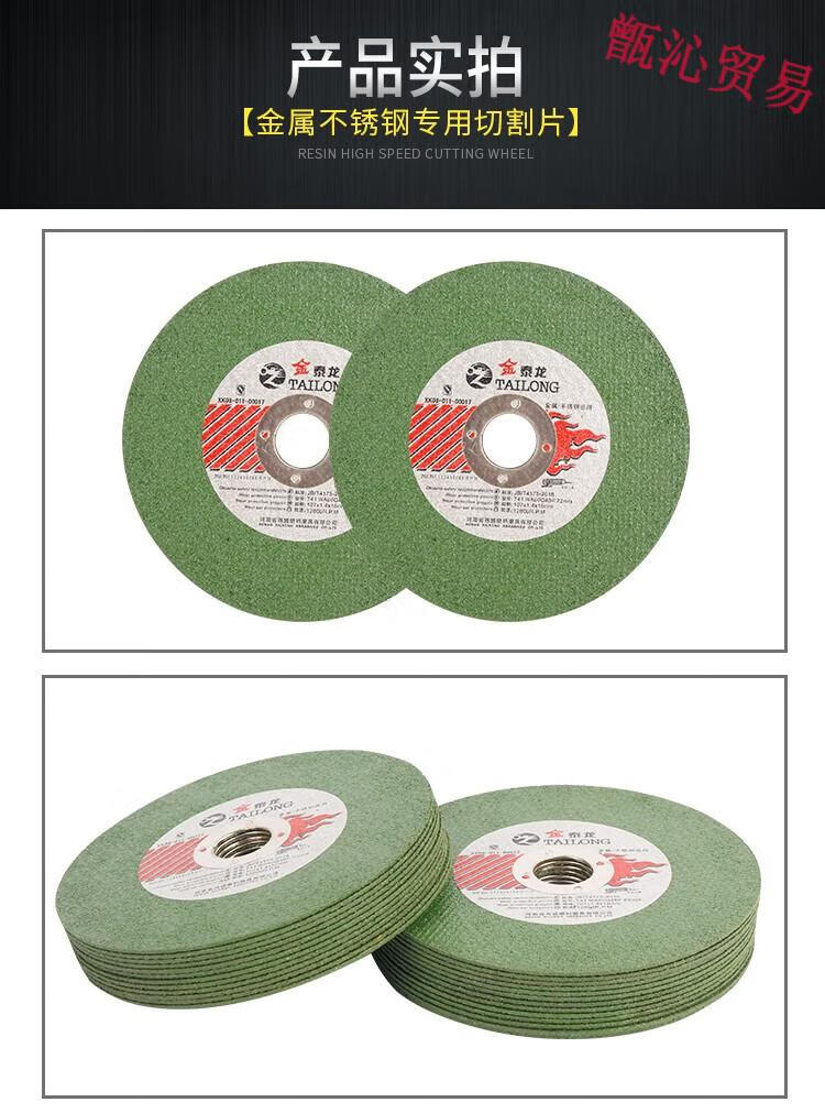 Huili's Jintailong 100 angle grinder cutting blade stainless steel metal grinding wheel grinding wheel polishing machine saw blade Jintailong green sheet 107*1.4*1650 pieces