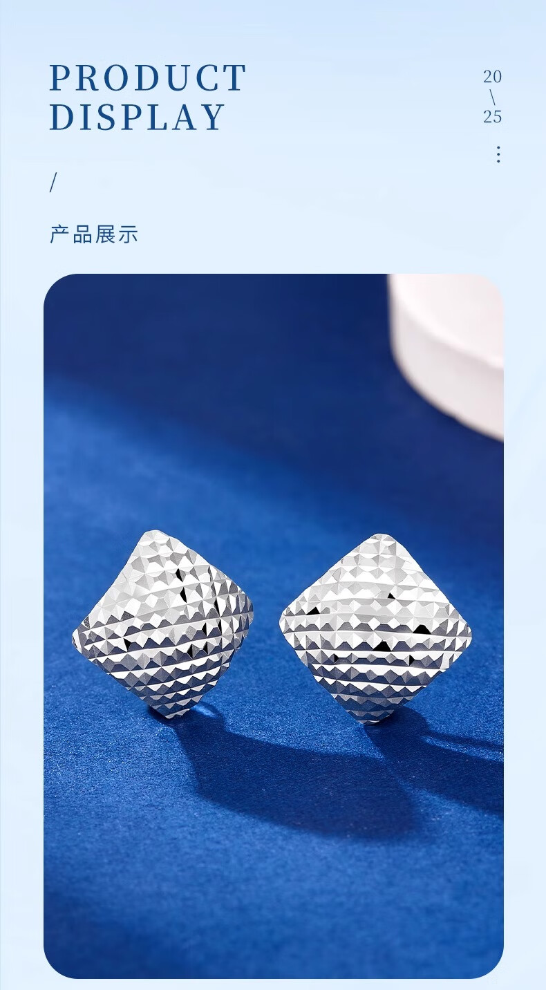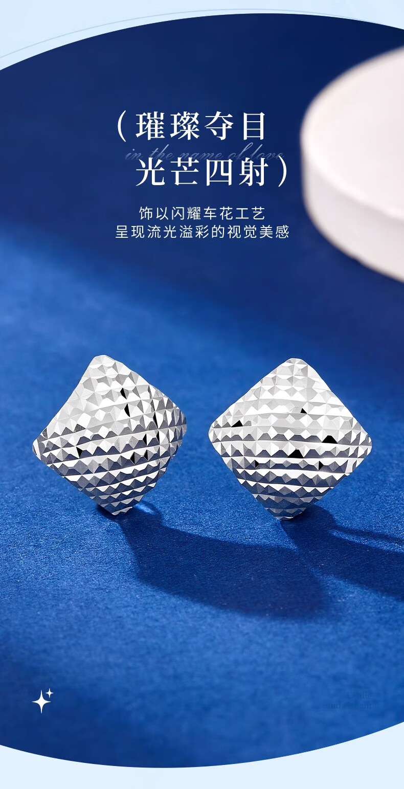 CHINA GOLD PT950 Platinum Crushed Ice Diamond Square Earrings for Women New Valentine's Day Birthday Gift for Girlfriend and Wife PT950 Platinum Crushed Ice Diamond Square Earrings About 2g