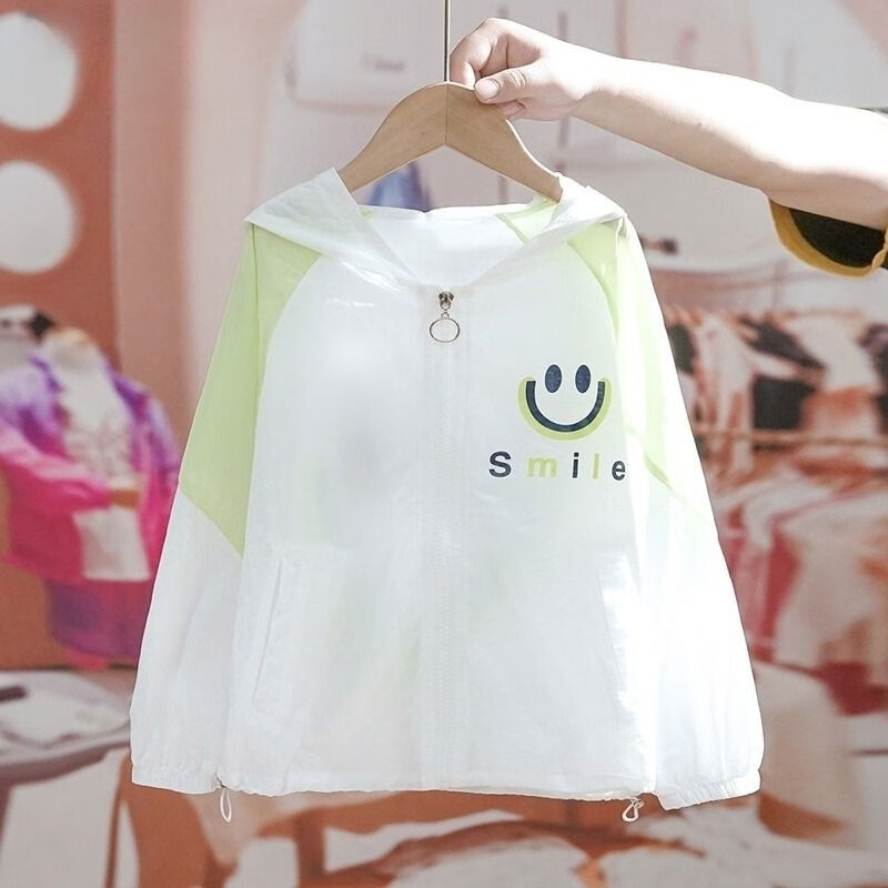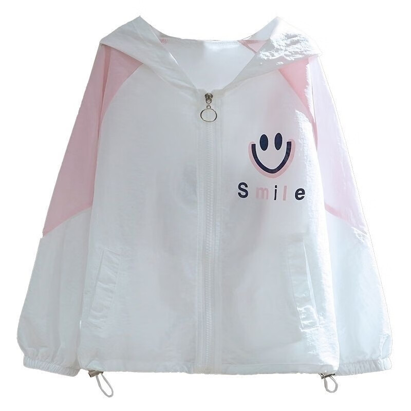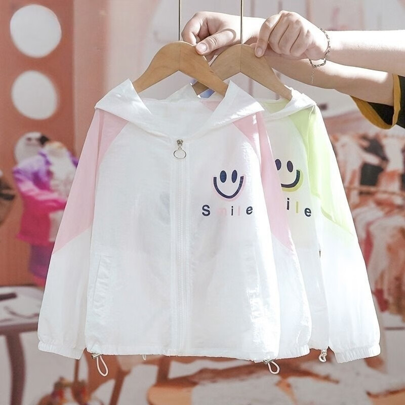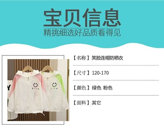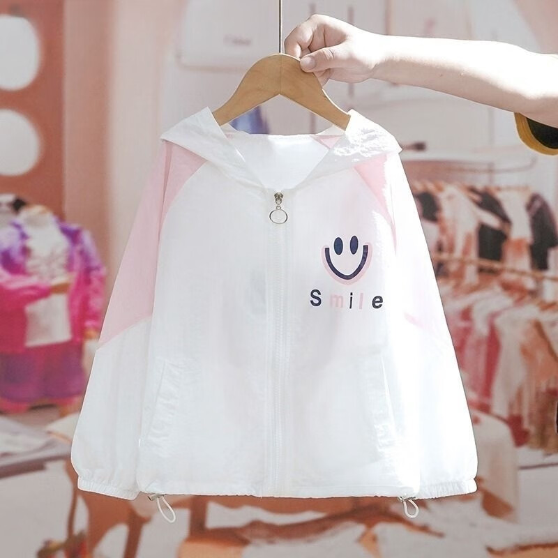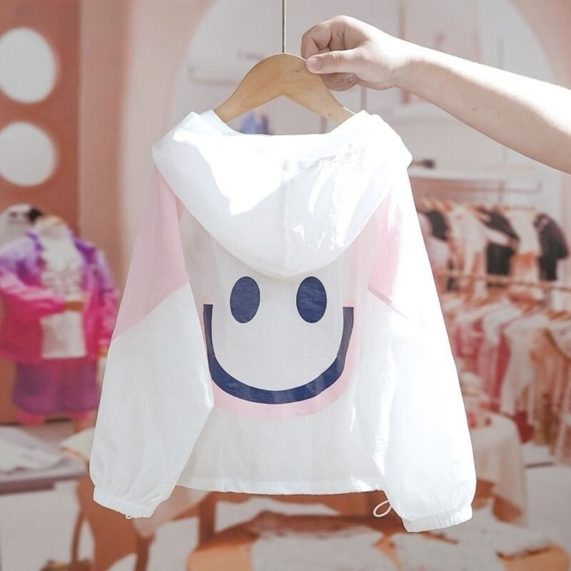 Yulixin girls' clothing 2025 new style children's style medium and large children's breathable summer hooded smiley suit thin jacket pink smiley 160