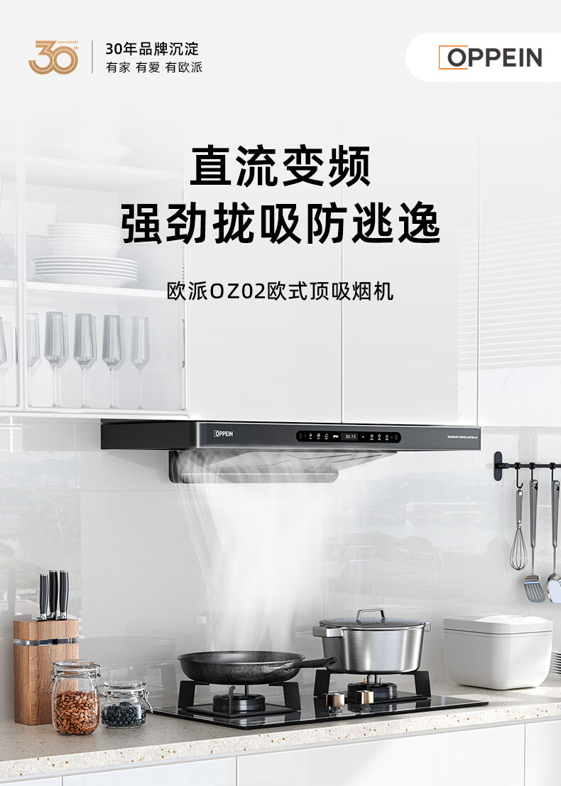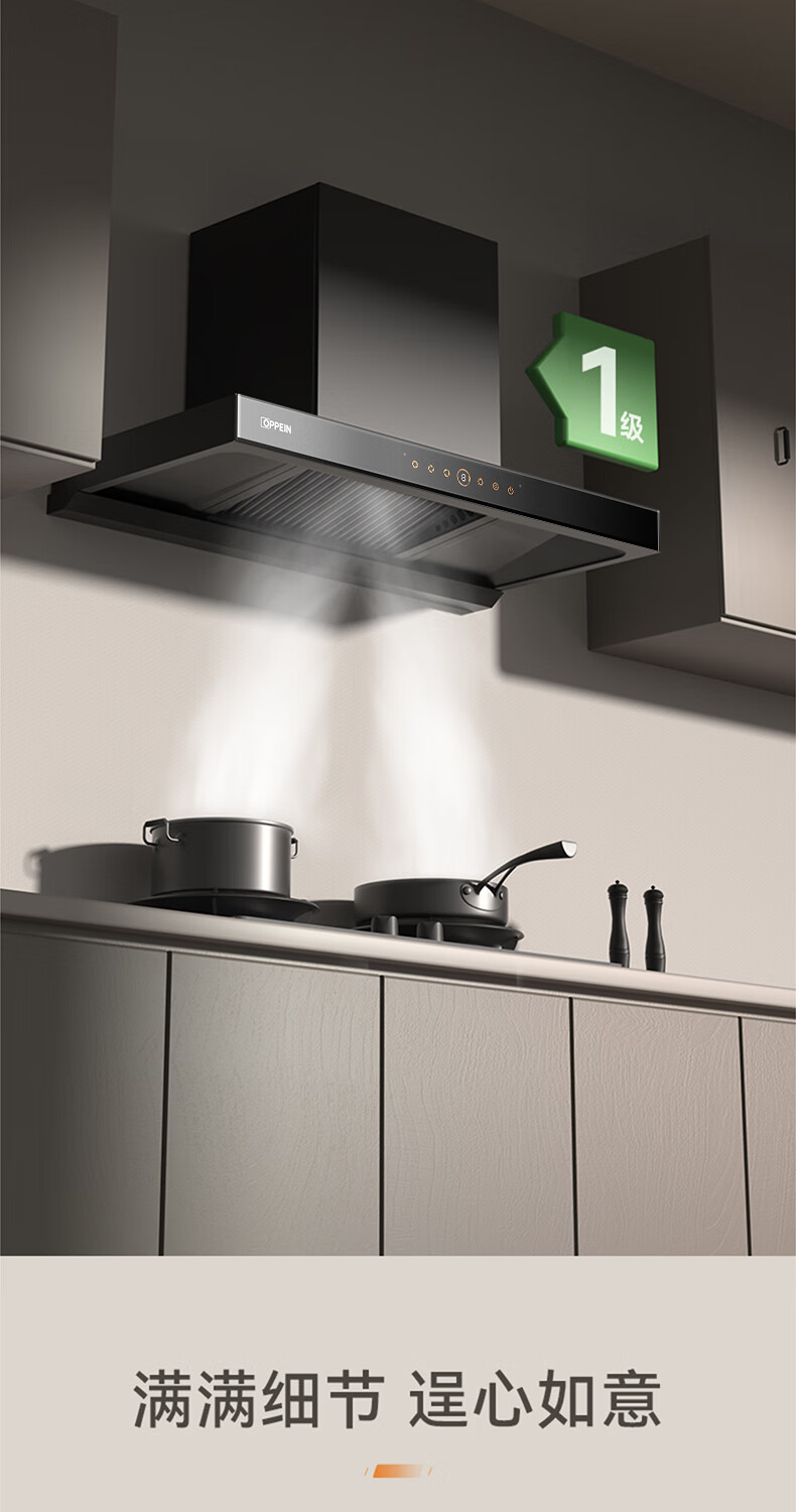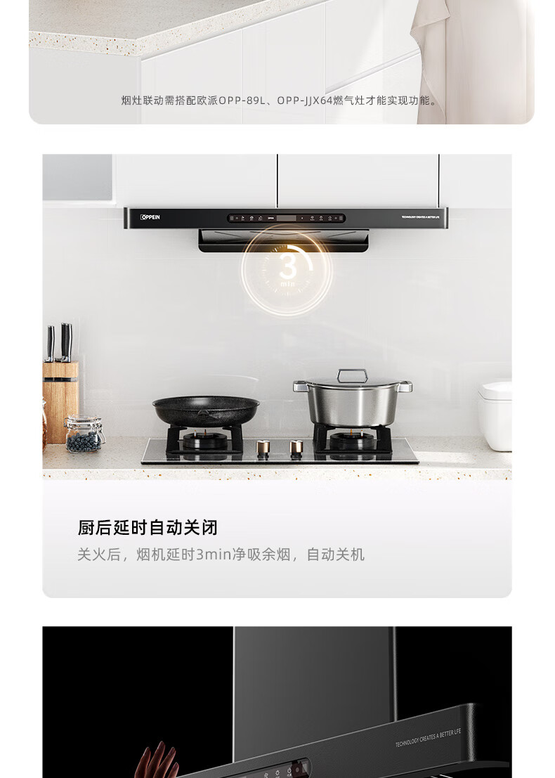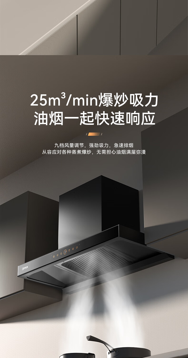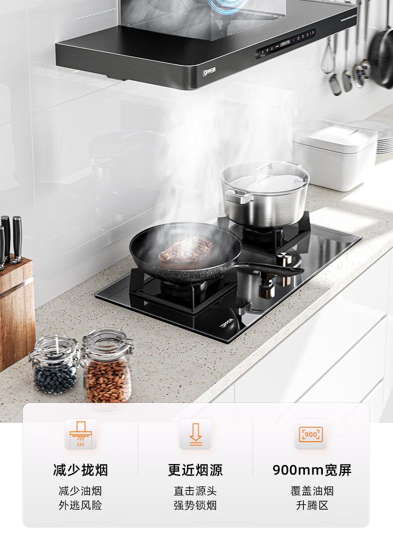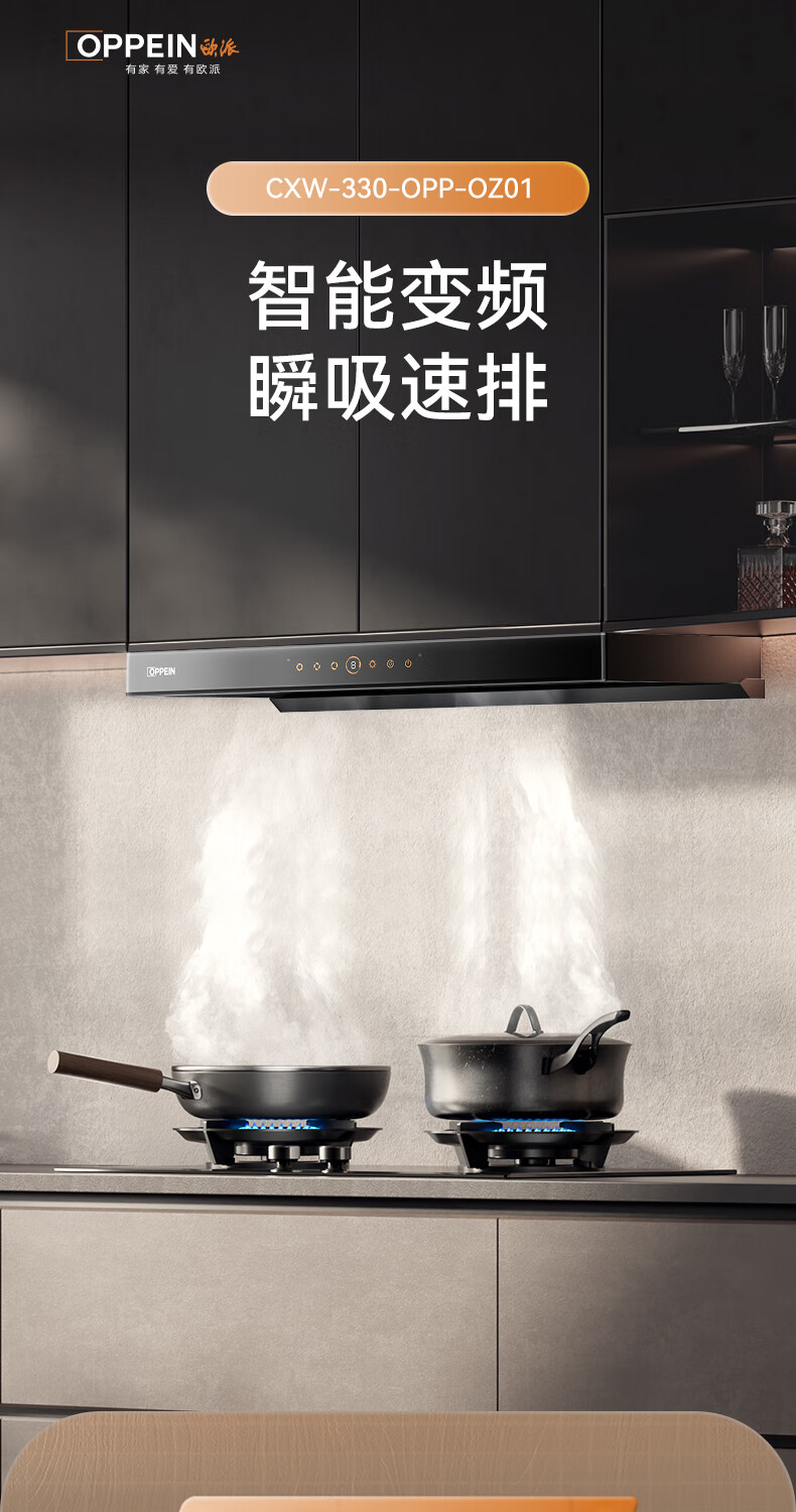 OPPEIN range hood European-style top-suction range hood nationally subsidized range hood set variable frequency motor household 25 air volume large suction flat-mounted range hood first-class energy efficiency two-piece set with 70% high-efficiency stove-JJX61