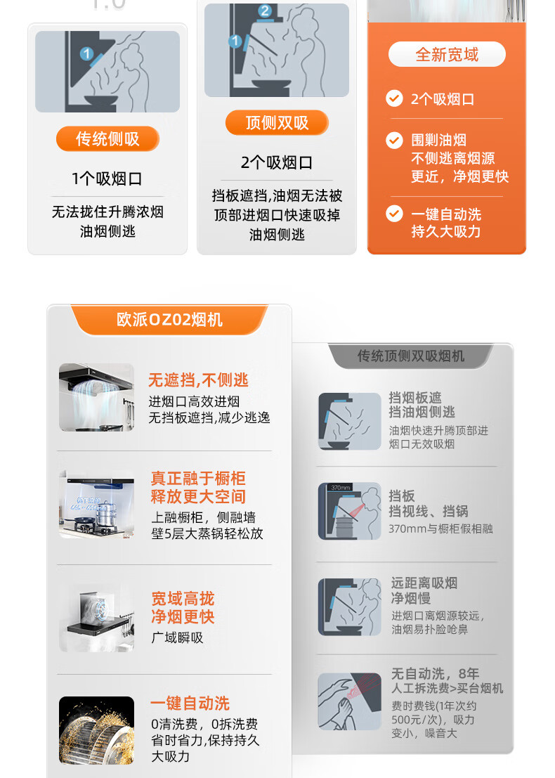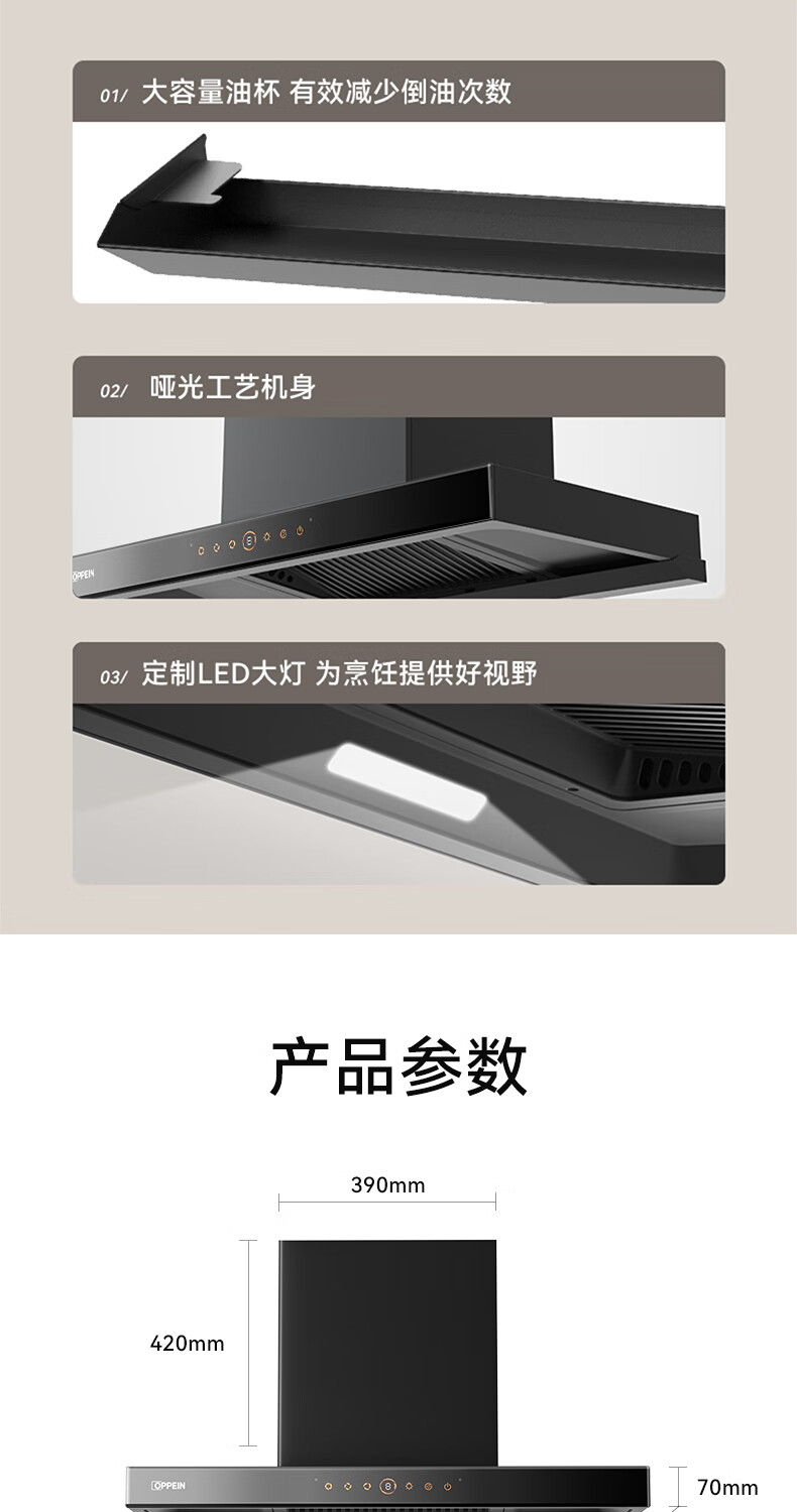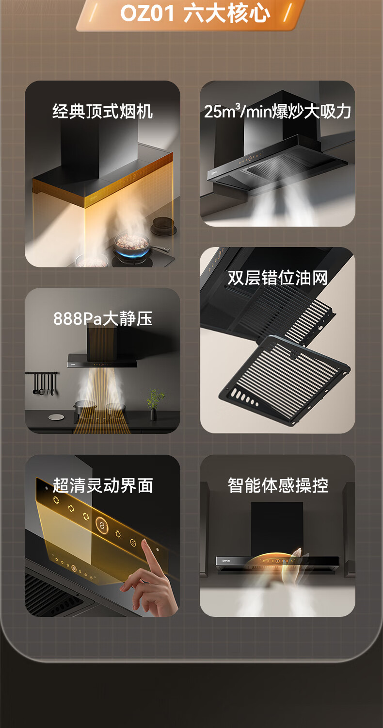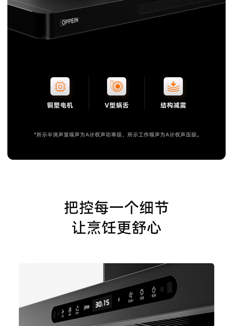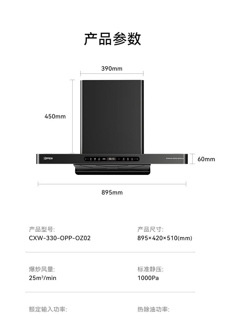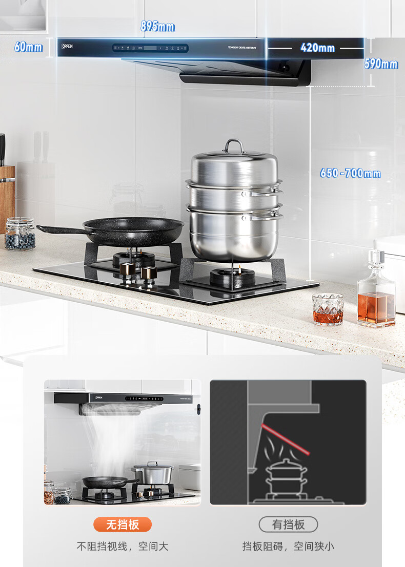 OPPEIN range hood European-style top-suction range hood nationally subsidized range hood set variable frequency motor household 25 air volume large suction flat-mounted range hood first-class energy efficiency two-piece set with 70% high-efficiency stove-JJX61