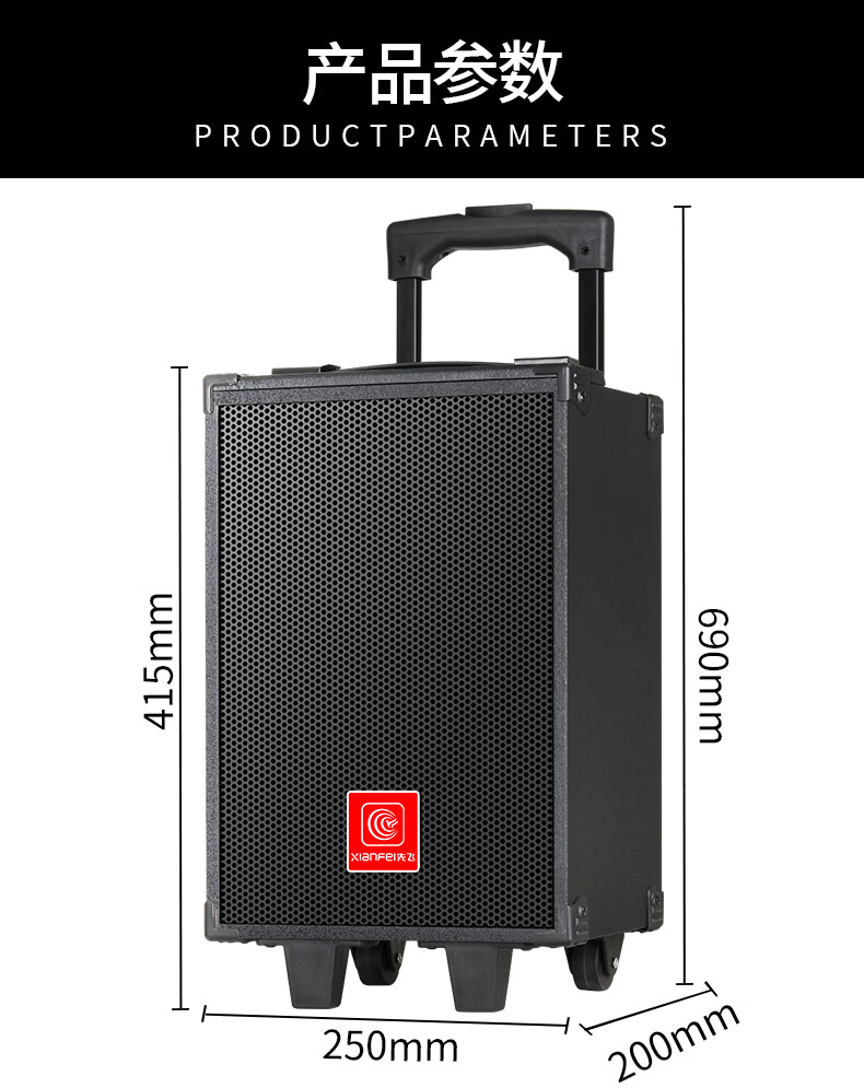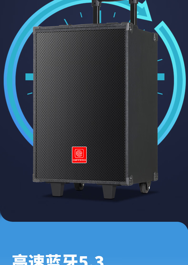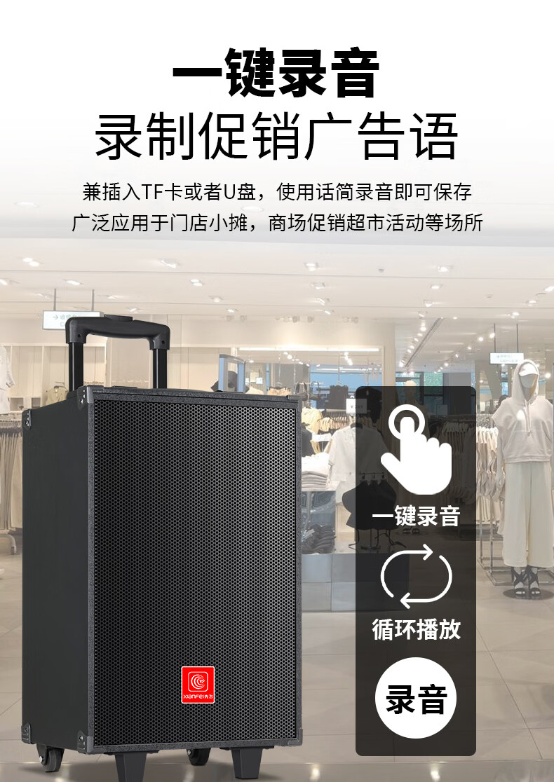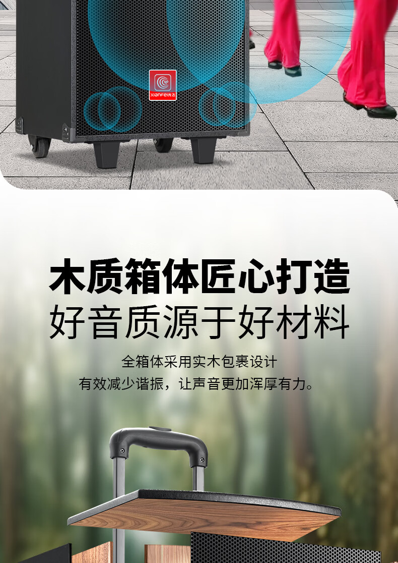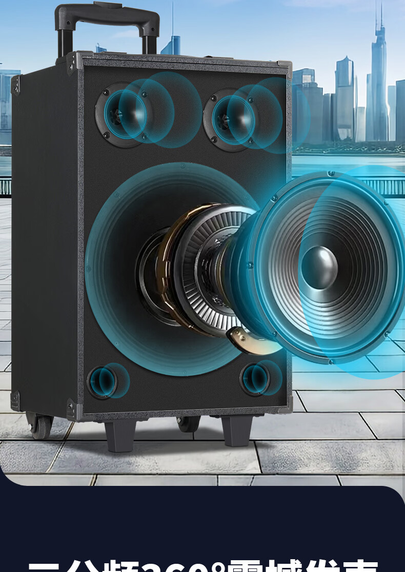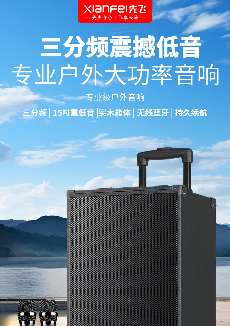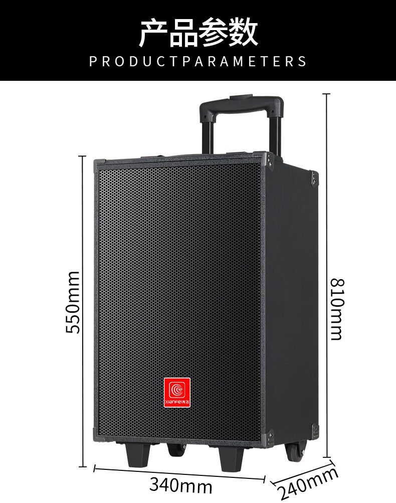 Xianfei portable square dance audio outdoor mobile trolley karaoke street stall speaker high-power subwoofer wireless microphone three-way Bluetooth home performance equipment 12-inch dual magnetic subwoofer (no microphone)