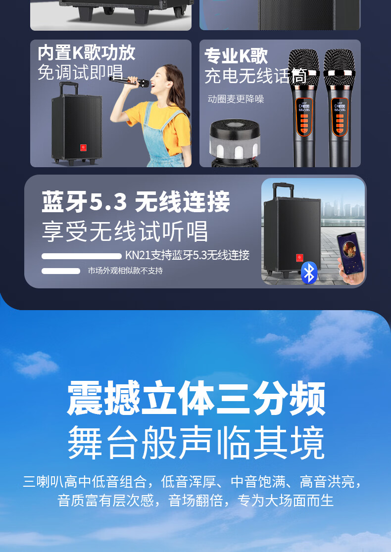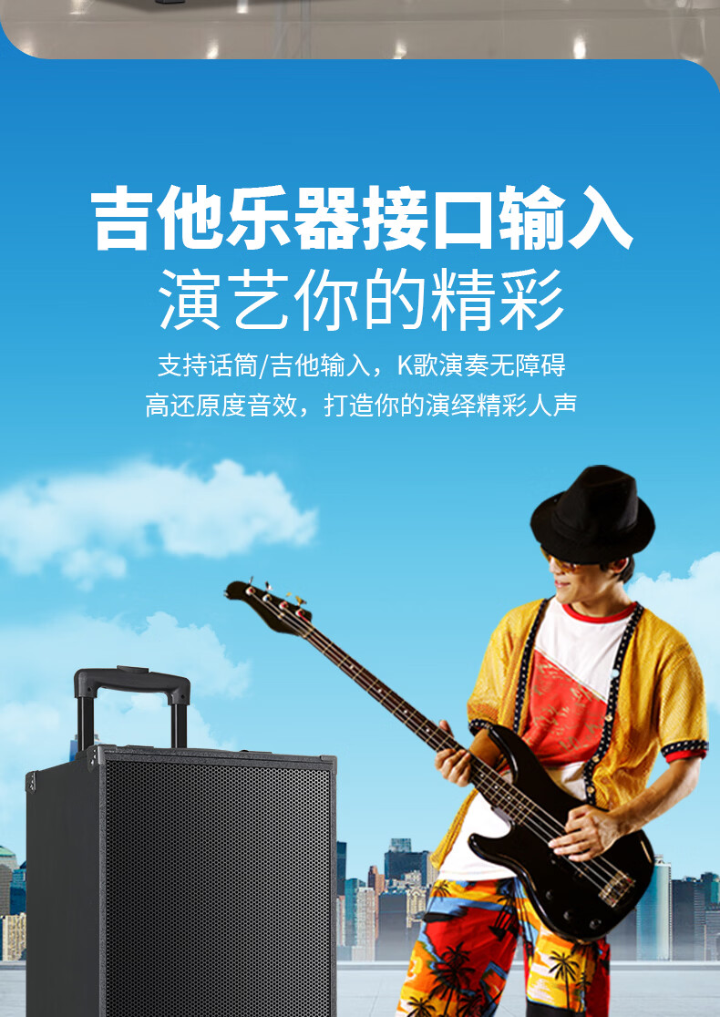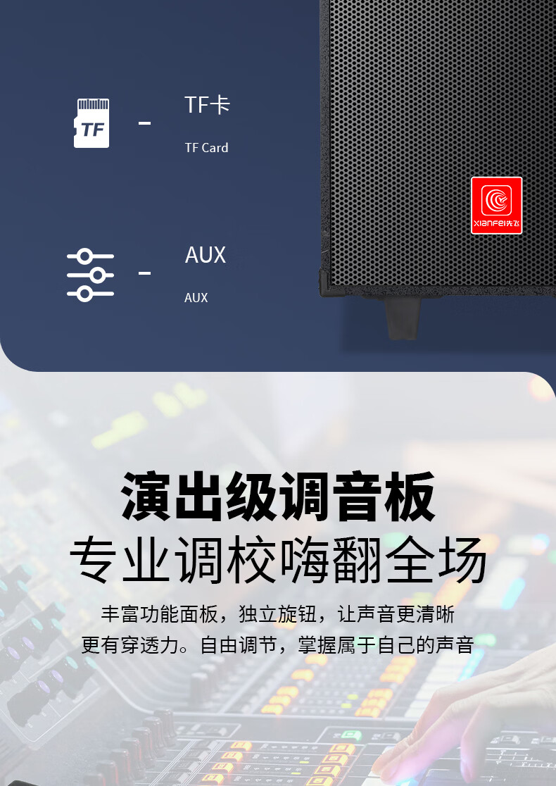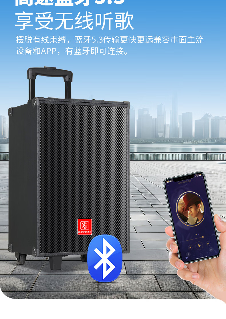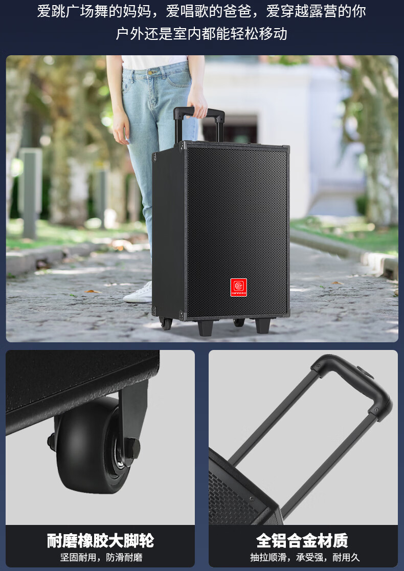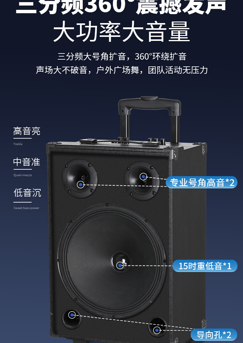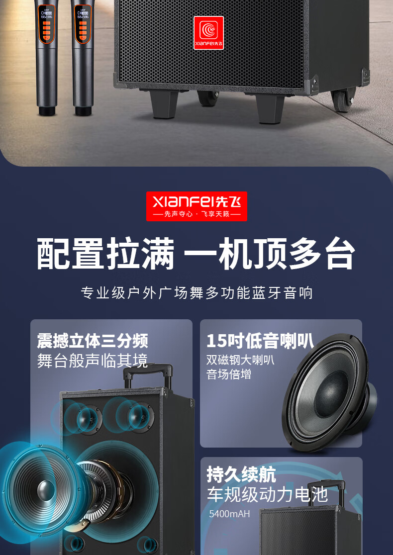 Xianfei portable square dance audio outdoor mobile trolley karaoke street stall speaker high-power subwoofer wireless microphone three-way Bluetooth home performance equipment 12-inch dual magnetic subwoofer (no microphone)