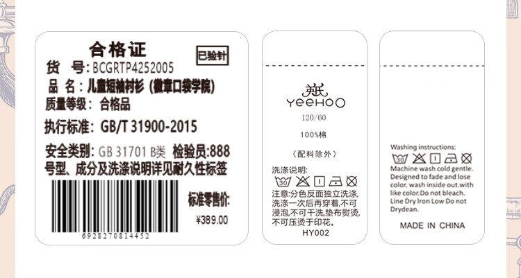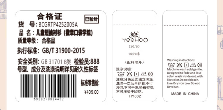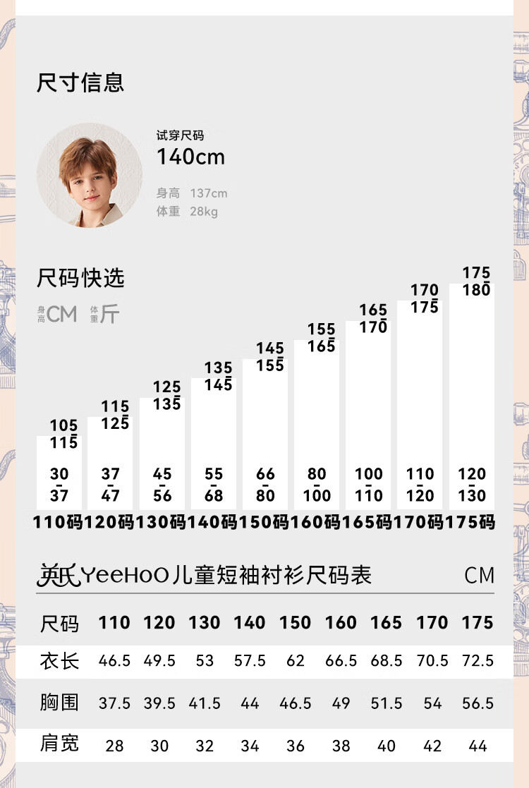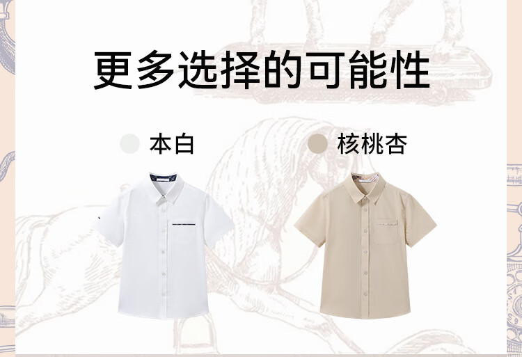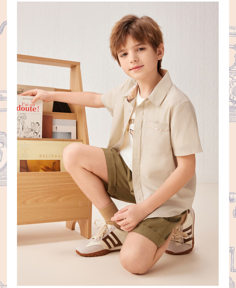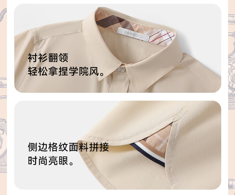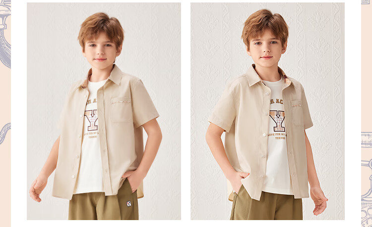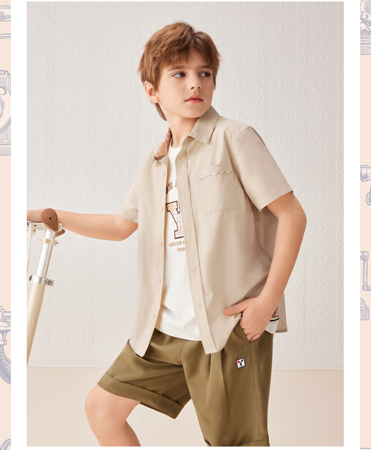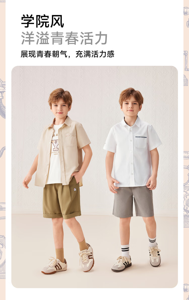YEEHOO boys' shirts and children's clothes summer casual college style short-sleeved shirts summer new pure cotton medium and large children's clothing badge pocket college white 120