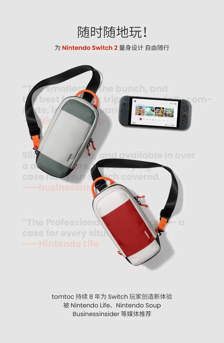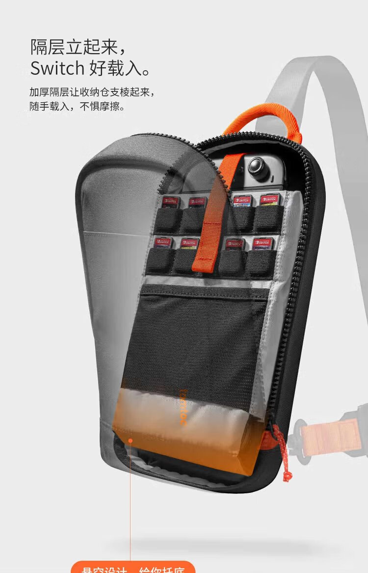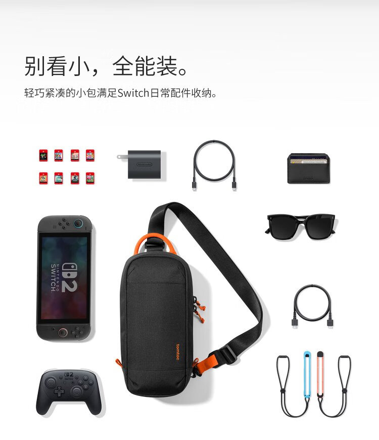 TomtocSwitch2 storage bag crossbody bag handheld NS cassette storage accessories commuter shoulder bag game peripheral controller gift G49 dark and light gray