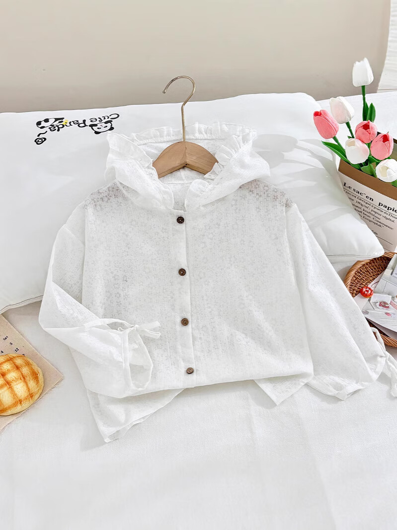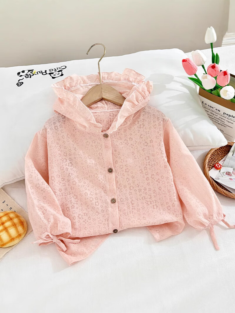 Cute lace sun protection clothing for girls and babies 2025 summer internet celebrity new children's breathable and lightweight hooded k554 light blue 90 cm
