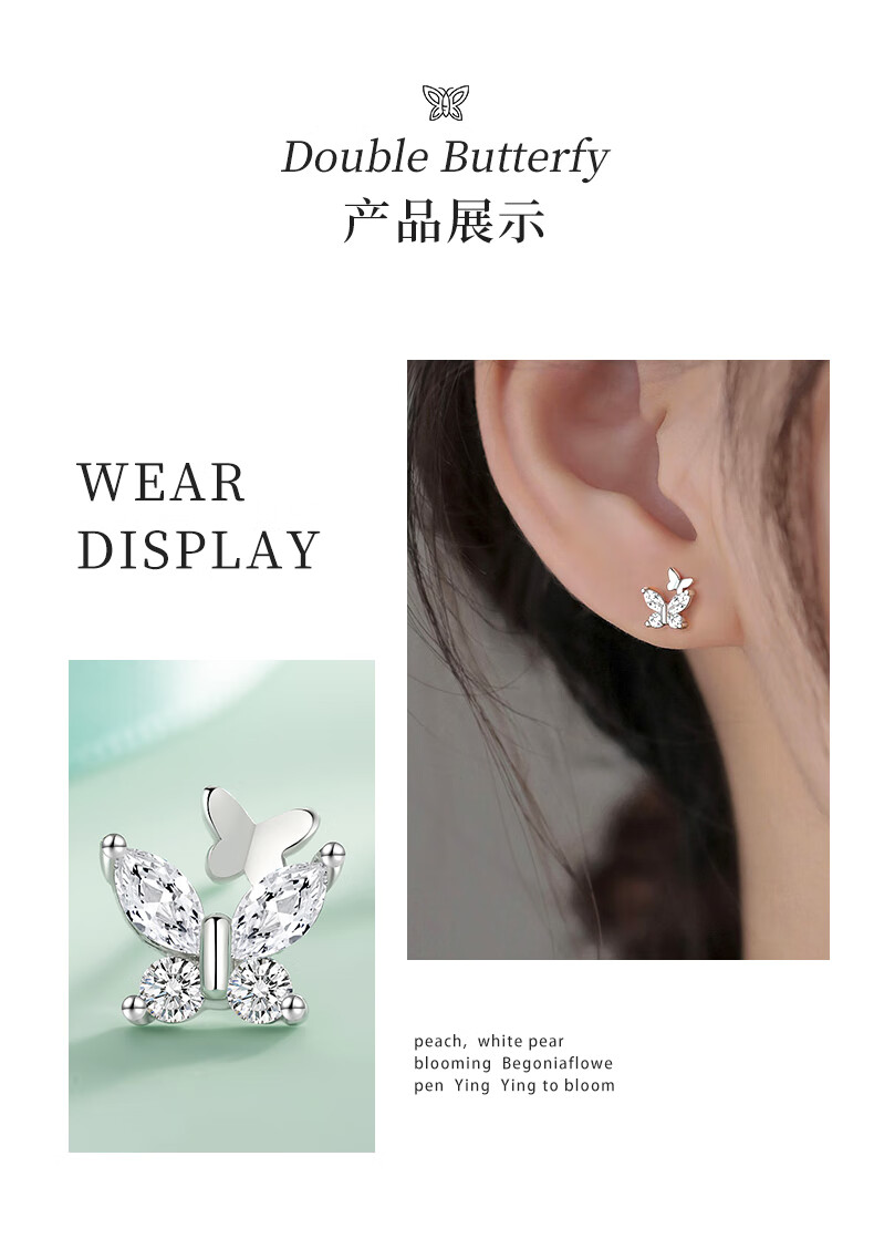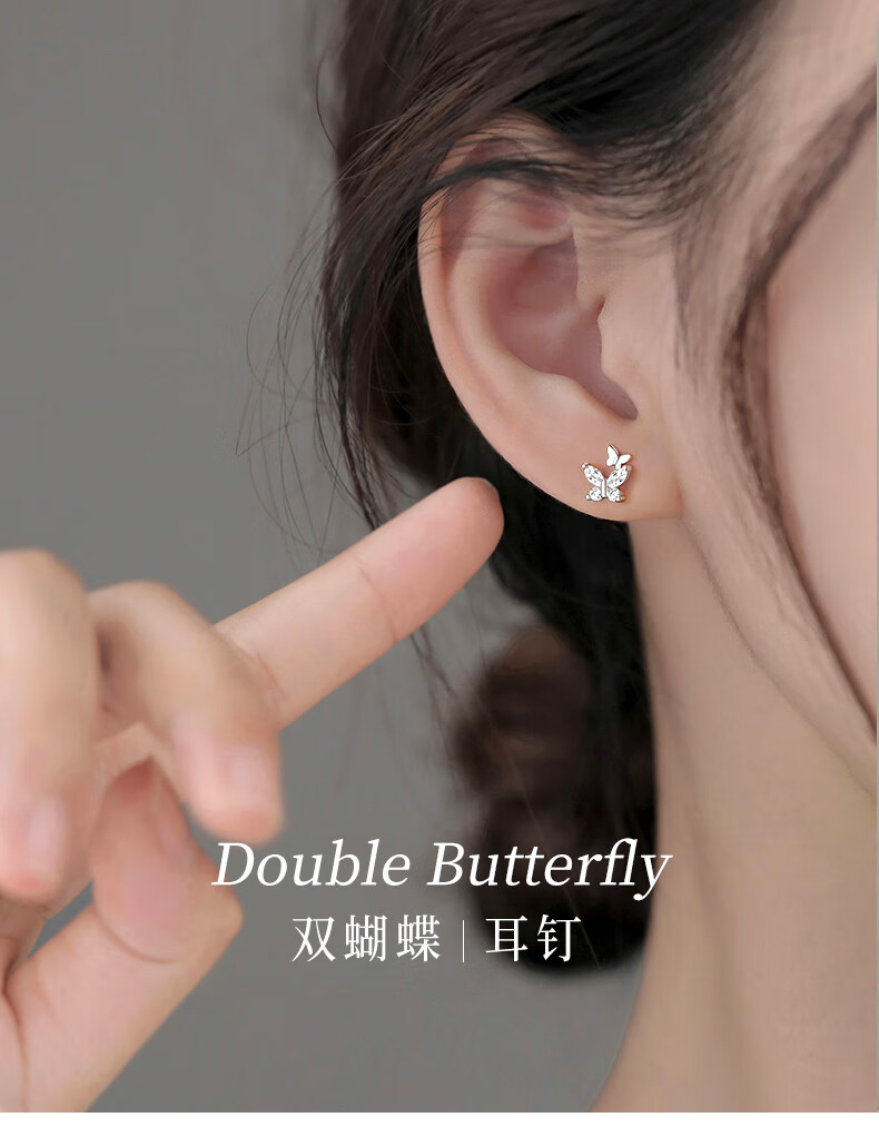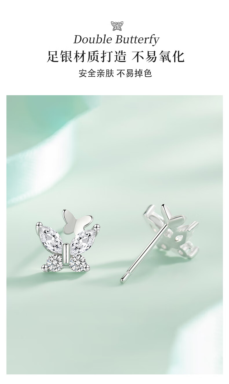 Lao Fengxiang S999 Pure Silver Butterfly Earrings for Women Fashionable and High-end Wedding Anniversary Gift for Girlfriend and Wife’s Birthday Pure Silver Double Butterfly Earrings
