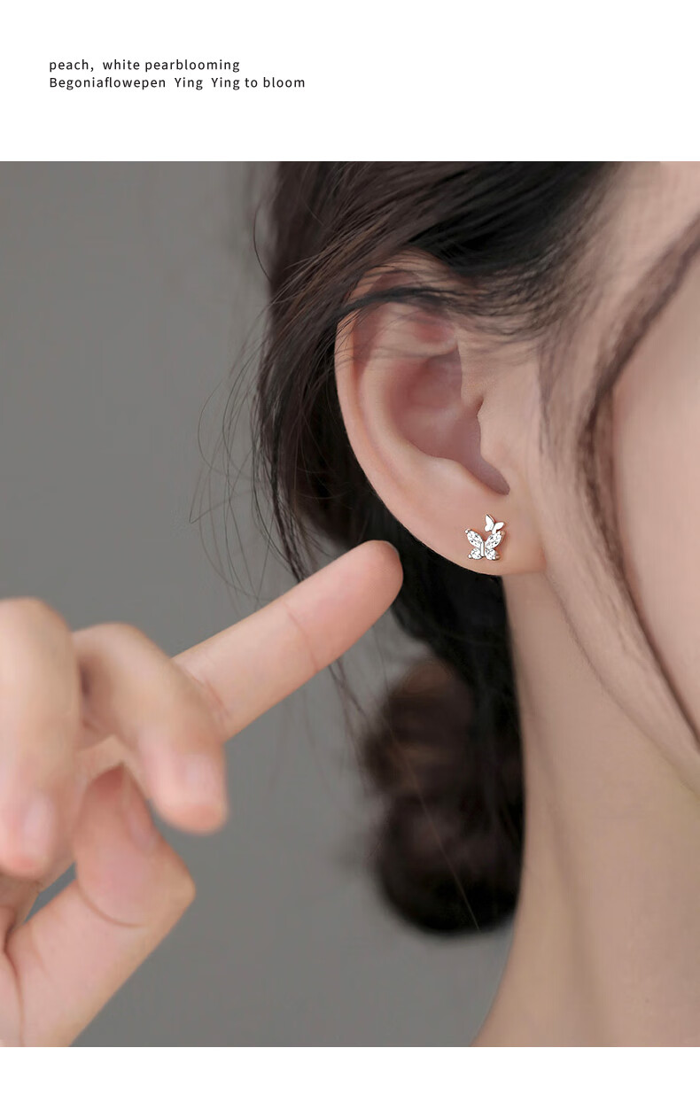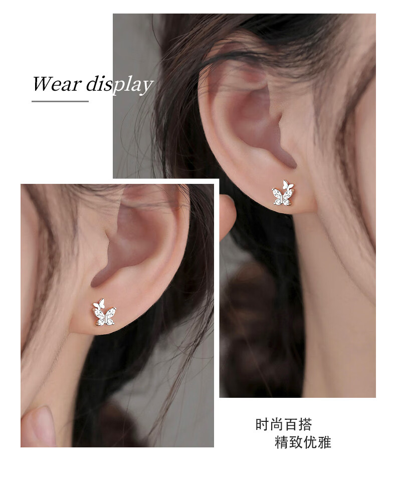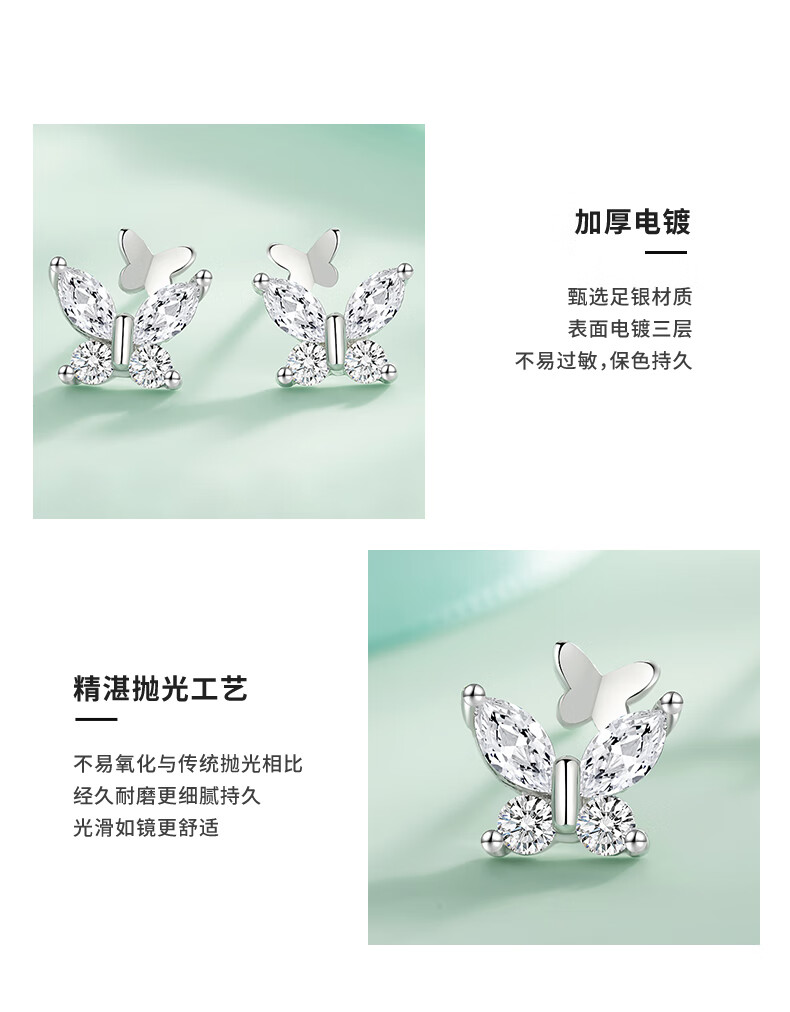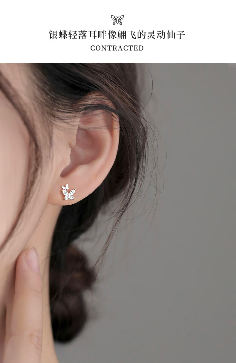 Lao Fengxiang S999 Pure Silver Butterfly Earrings for Women Fashionable and High-end Wedding Anniversary Gift for Girlfriend and Wife’s Birthday Pure Silver Double Butterfly Earrings
