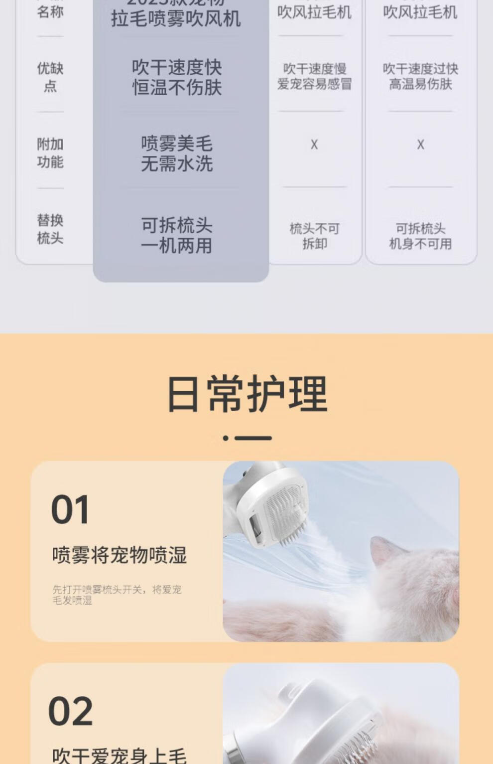 Pet hair drying tool, hair drying comb, dog hair drying machine, integrated hair dryer, Teddy hair drying comb, beauty special, elegant silver (spray hair drying comb)