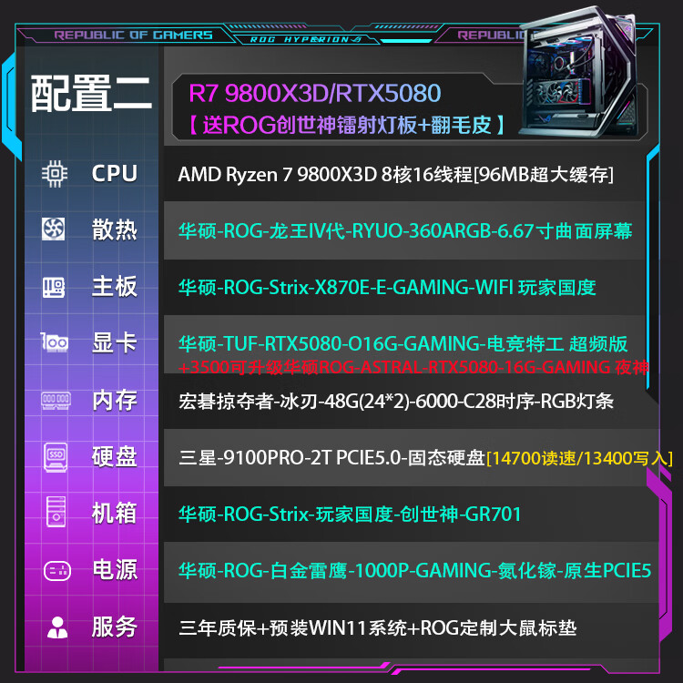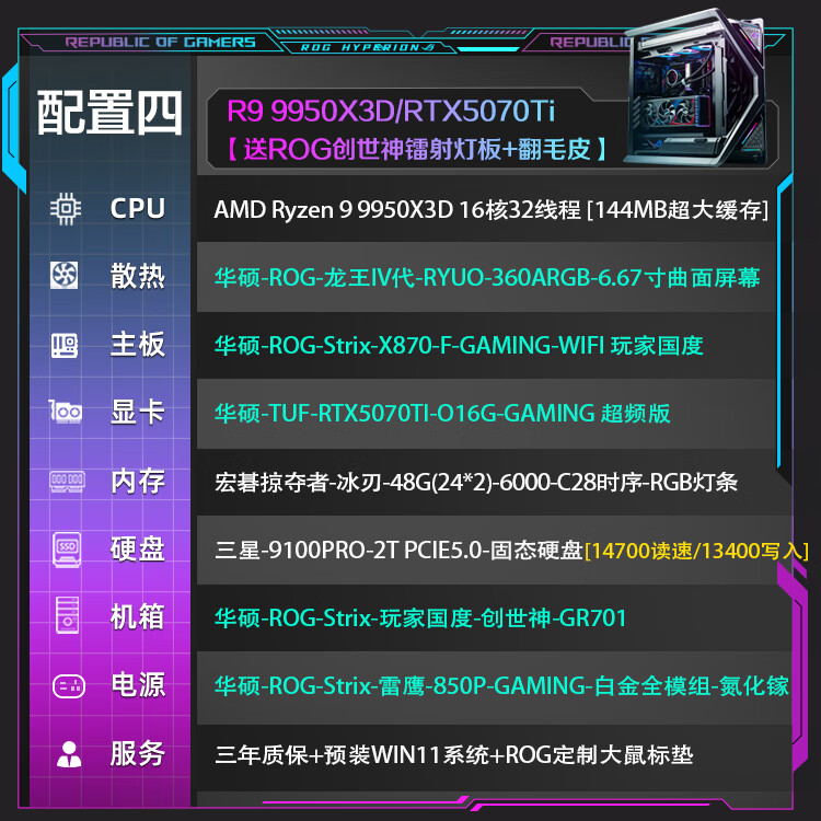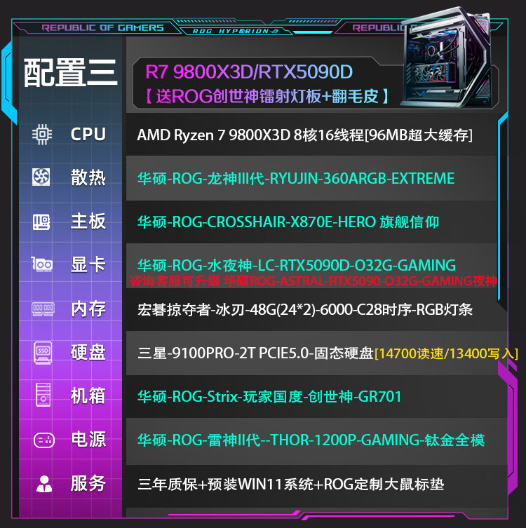 ASUS Family Bucket RTX5090D/5080 Host 9800X3D Night God Graphics Card ROG Family Bucket Genesis God Game Desktop E-Sports AI Host DIY Assembly Machine Computer Complete Prism Fan*6