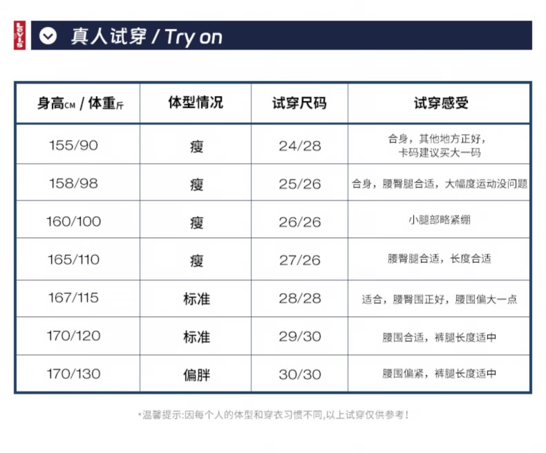 China (cm) 160-165/84-86 165-170 / 88-90 167-172 / 92-96 168-173 / 98-102 170-176 / 106-110