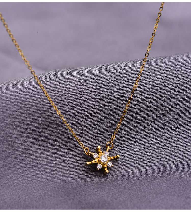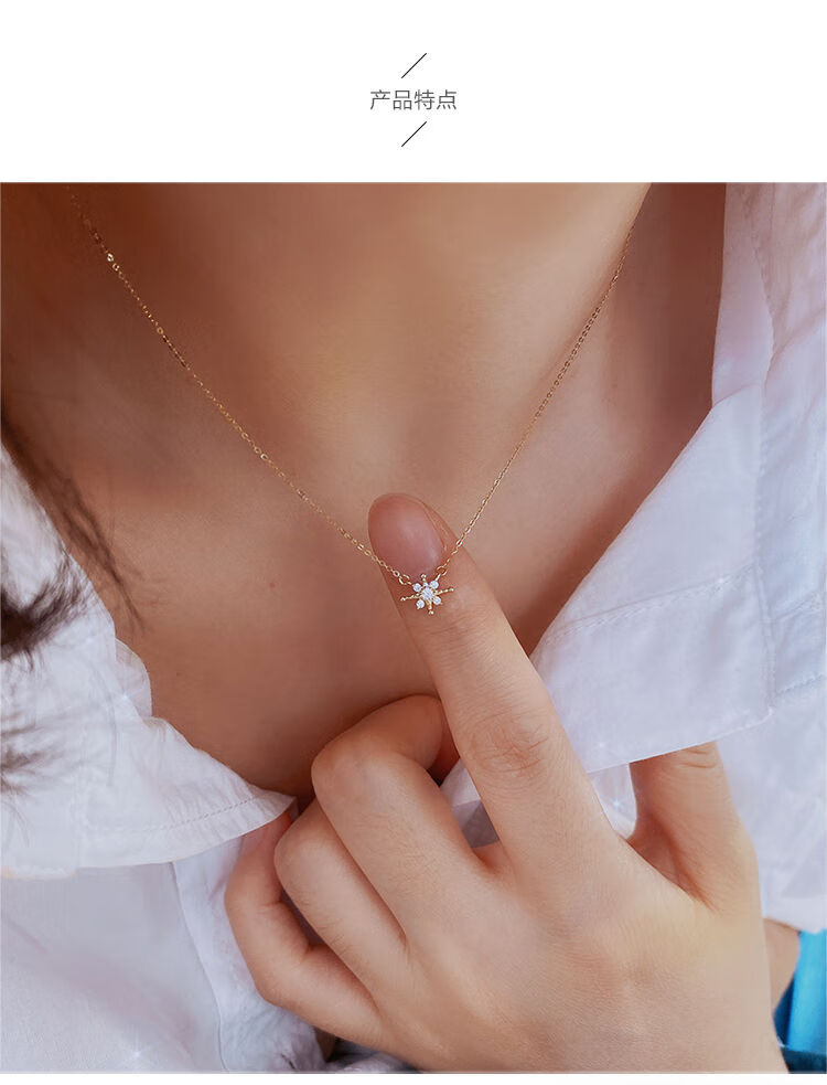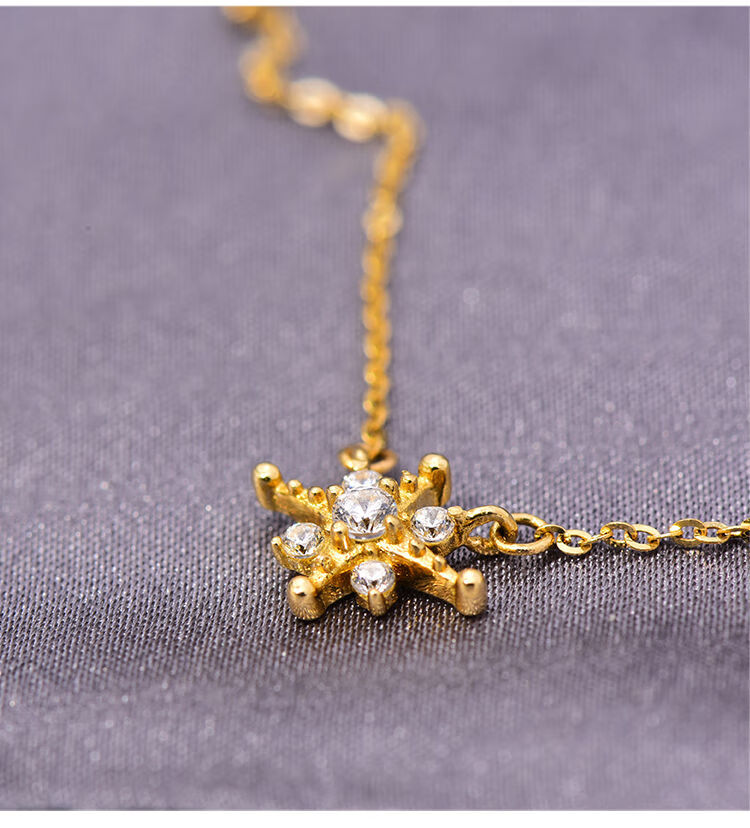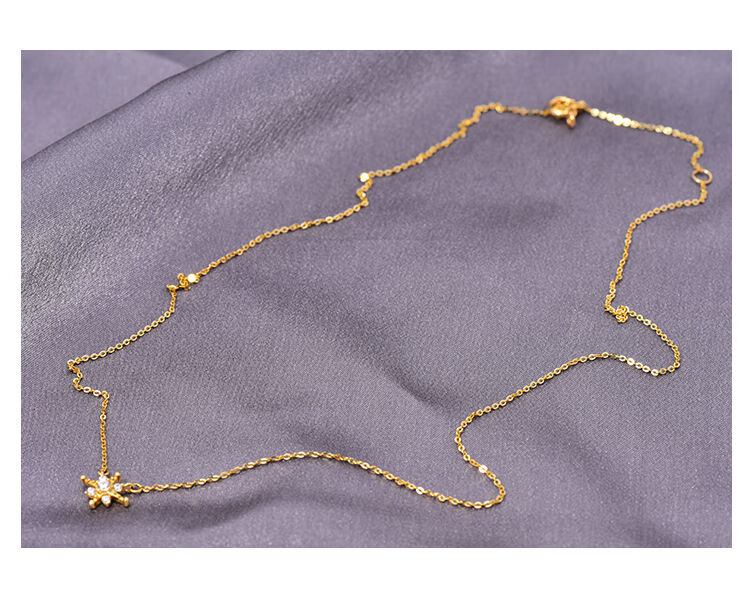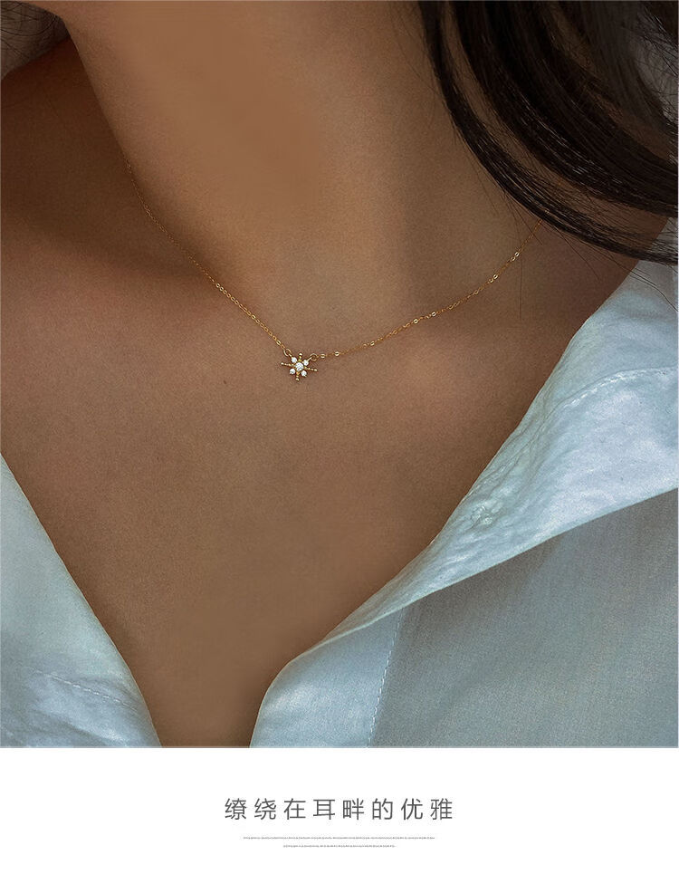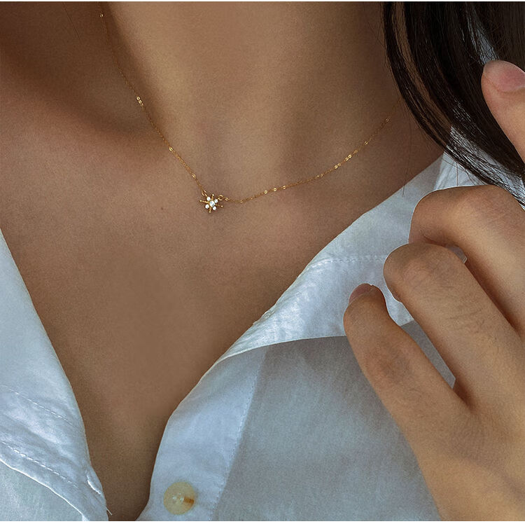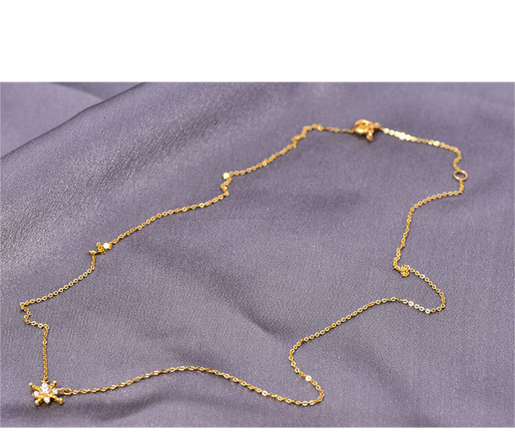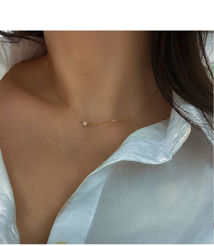 Yadige Korean 14K gold necklace, feminine, new, fashionable, simple, zircon snowflake, short neck chain, clavicle chain