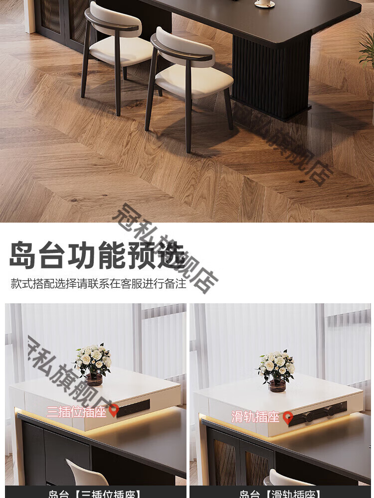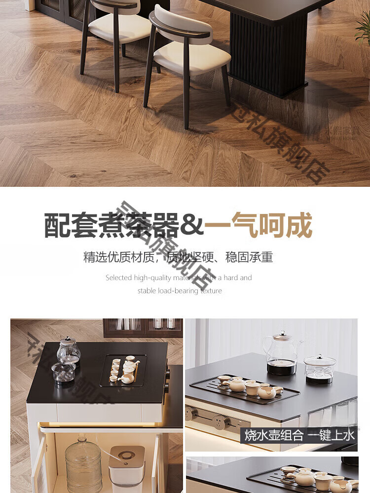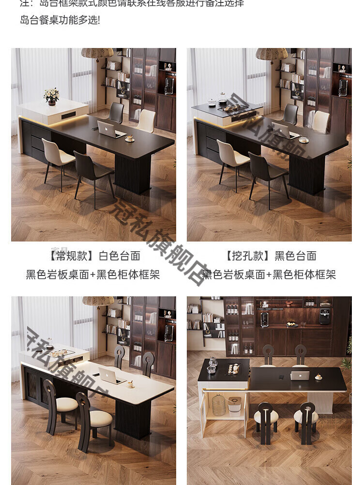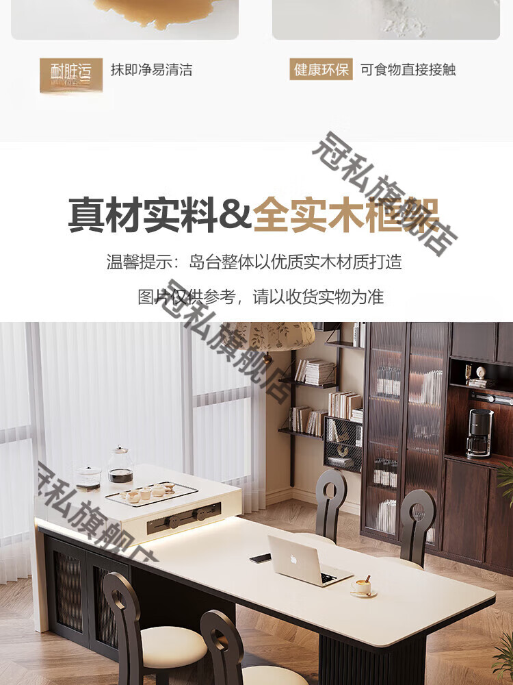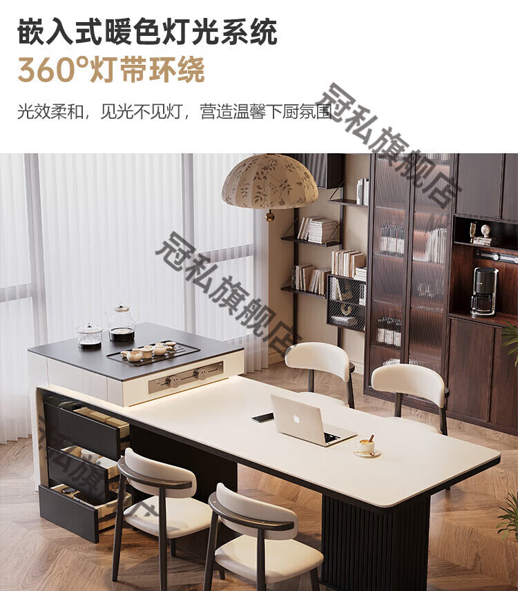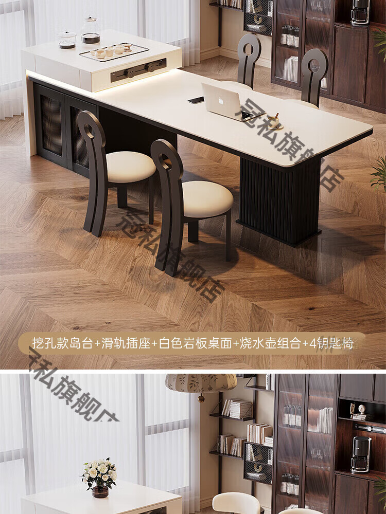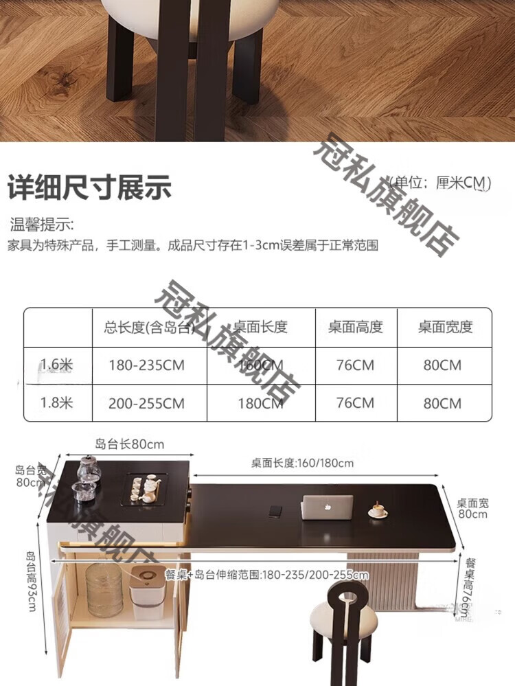 Guansi slate island dining table integrated retractable high-end retro restaurant dining table and chair combination induction cooker all solid wood island dining table slide rail socket + tea stove 6 key chair 160cm x80x76.5cm