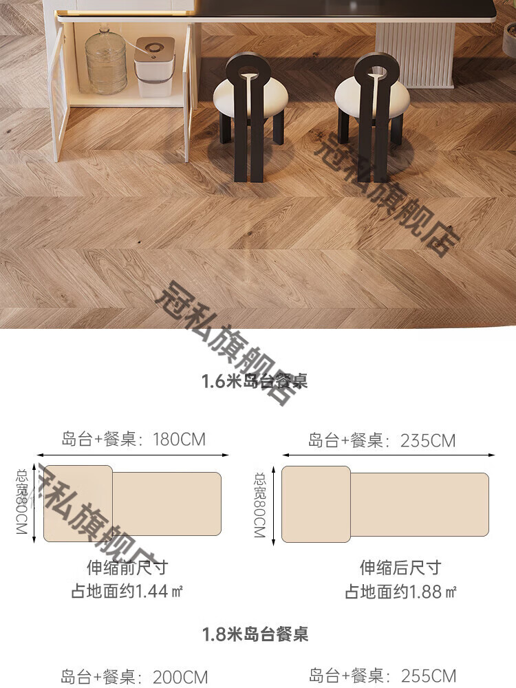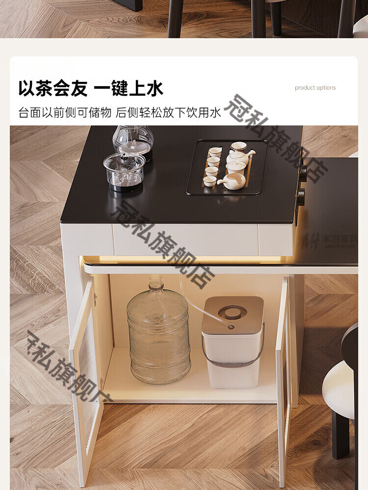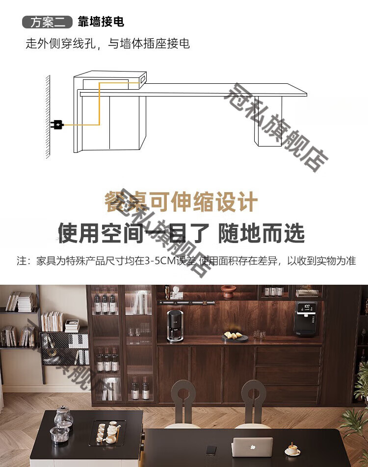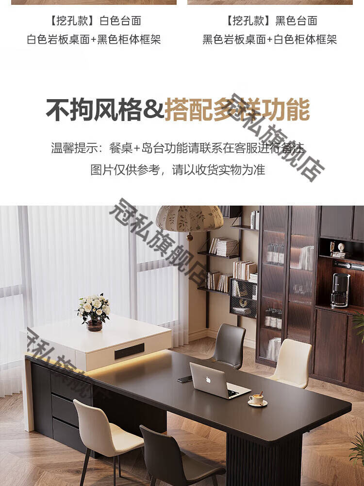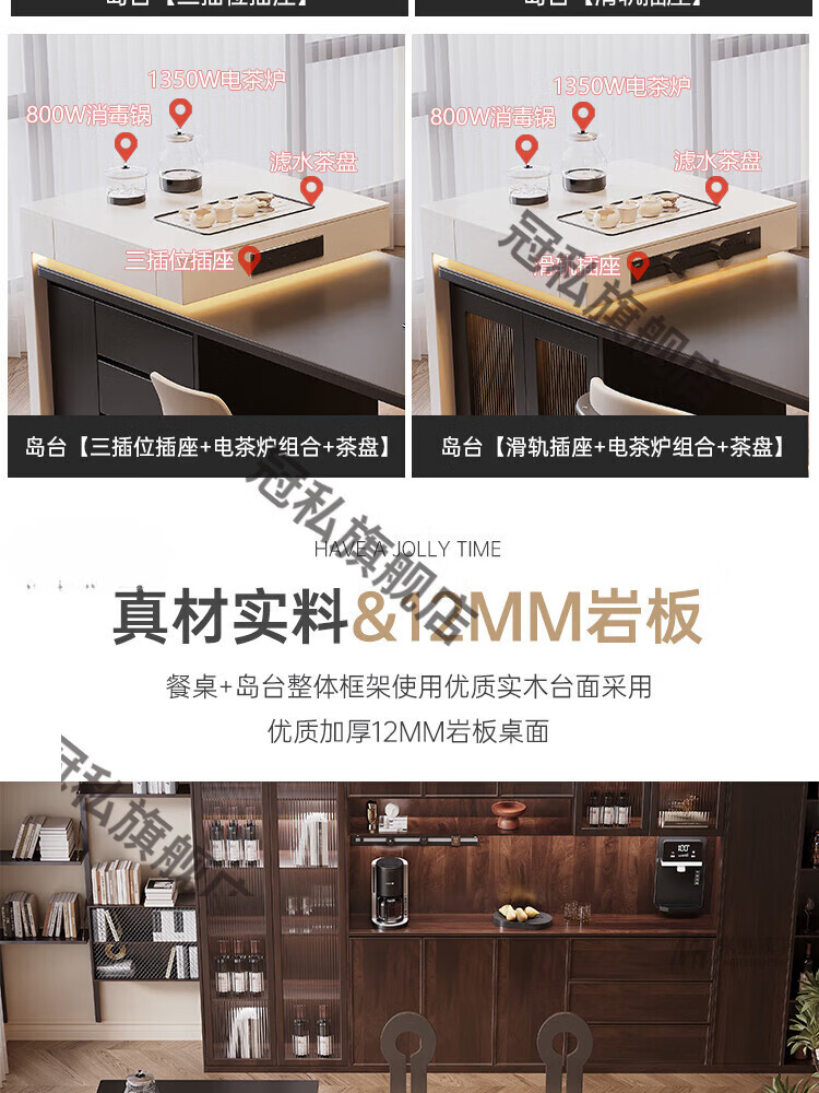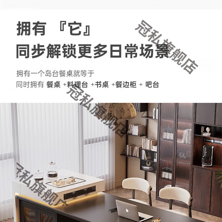 Guansi slate island dining table integrated retractable high-end retro restaurant dining table and chair combination induction cooker all solid wood island dining table slide rail socket + tea stove 6 key chair 160cm x80x76.5cm
