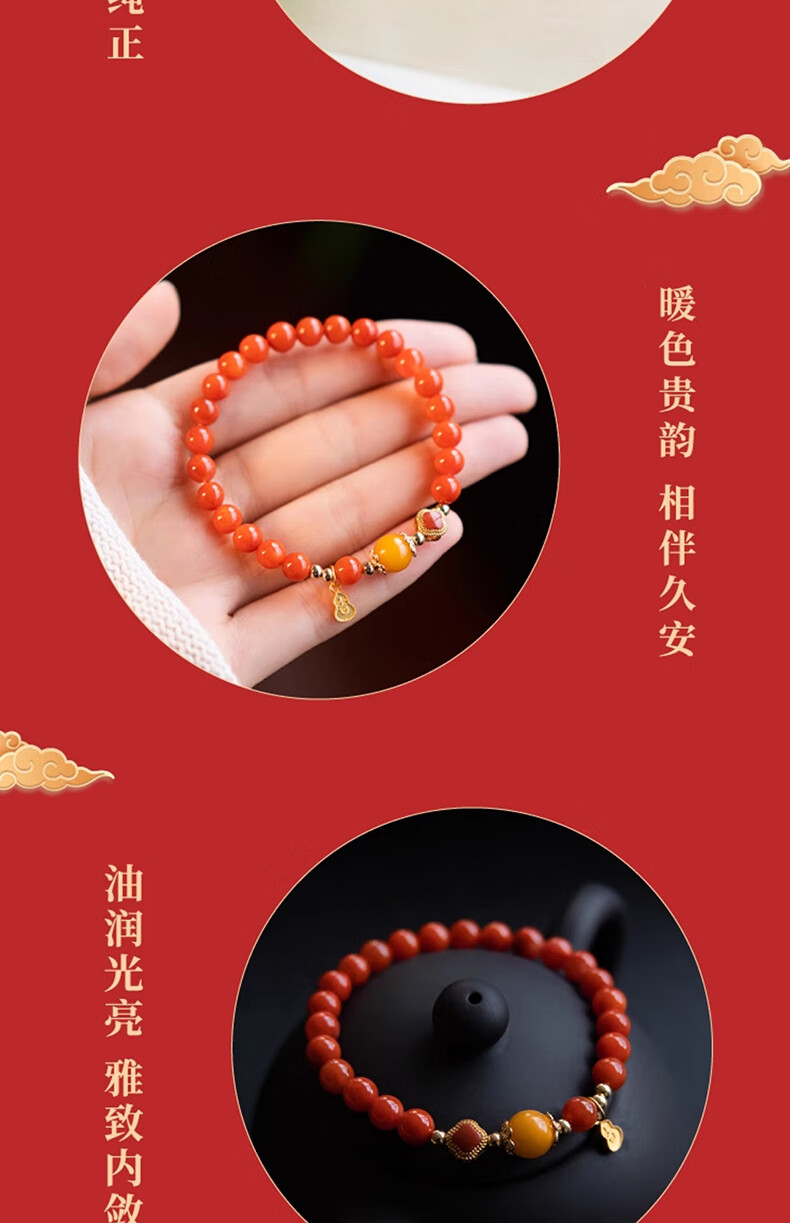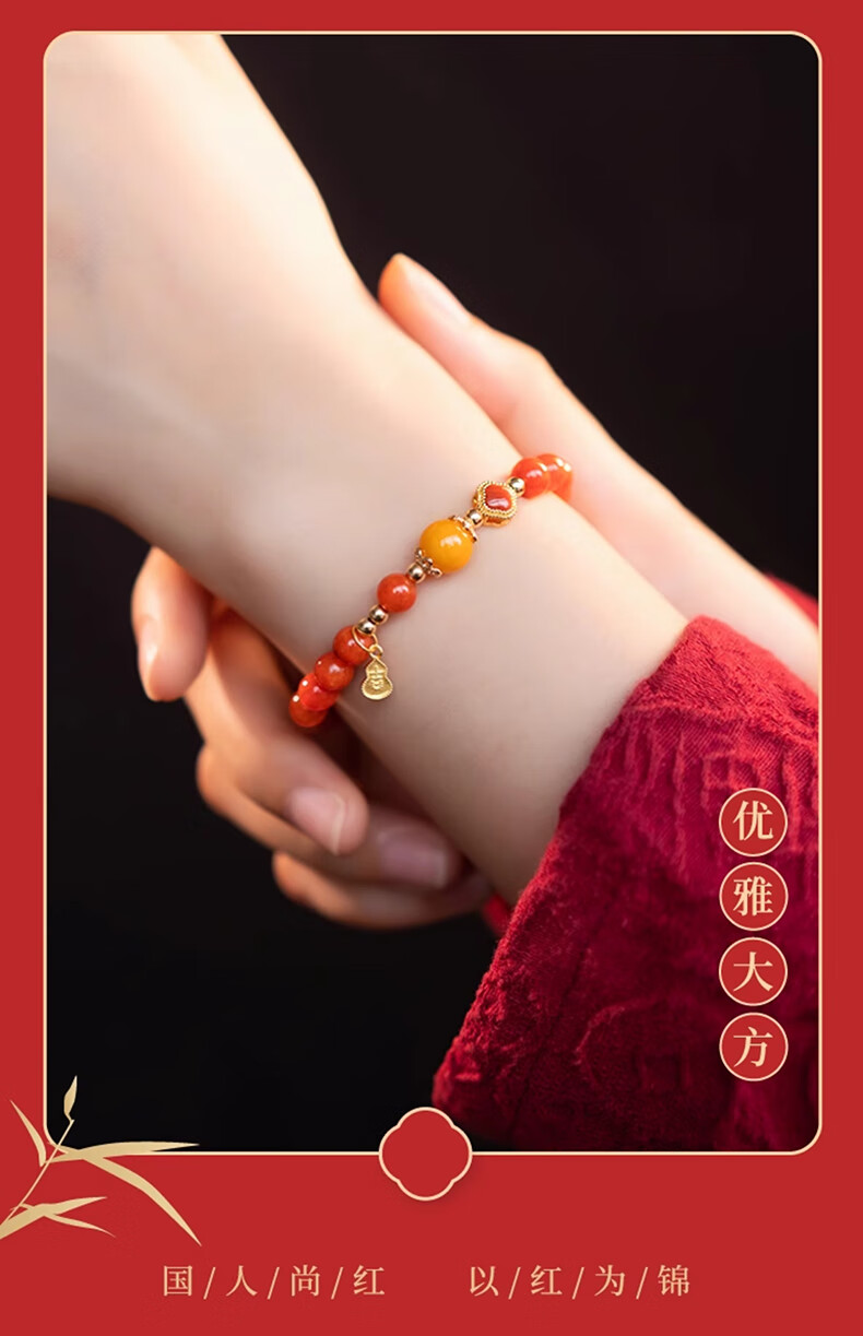 Layun Feiyin Nanhong Bracelet Red Agate Beads Bracelet Women's Beads Natural Beeswax Duobao Bracelet Sterling Silver Four-leaf Clover Hihe 8mm Nanhong Honey Rhyme 18-19cm Hand Circumference