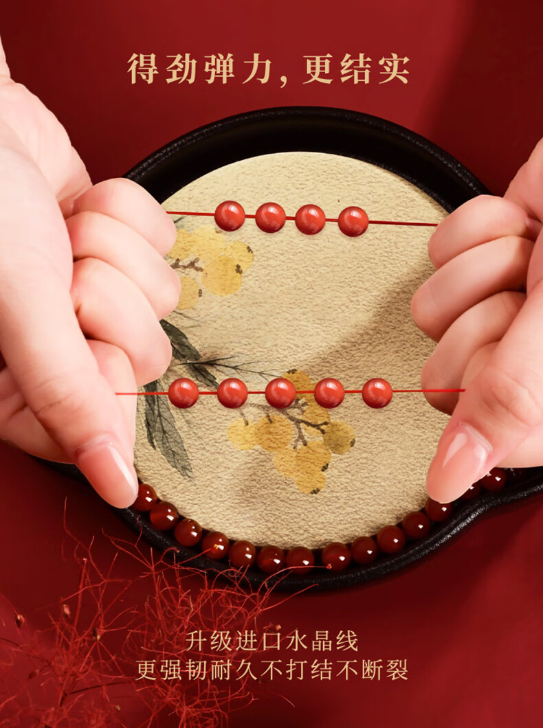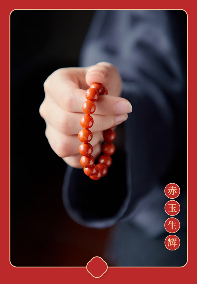 La Yun Feiyin Natural South Red Bracelet Red Bracelet Women's Agate Jade Persimmon Red Full Flesh Collection Coral Flame Pattern Replenishing Fire 6mm 14-15cm Hand Circumference