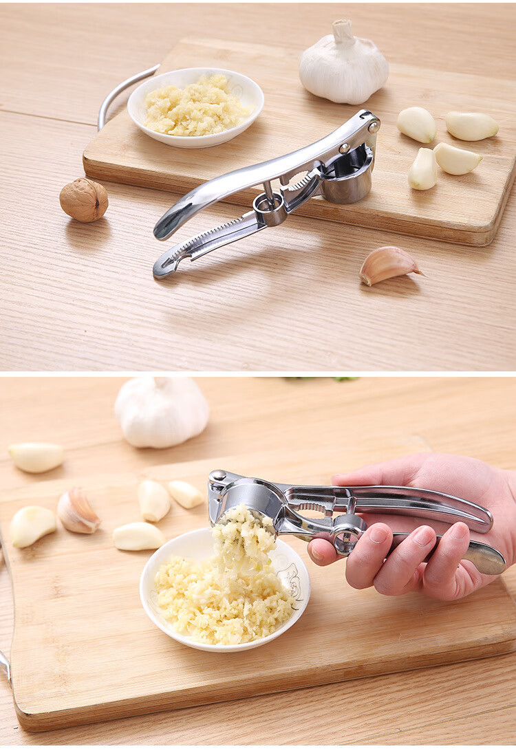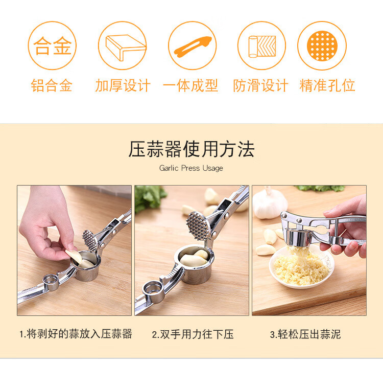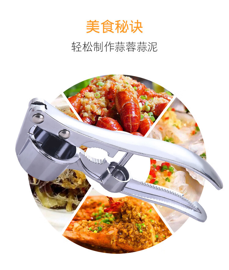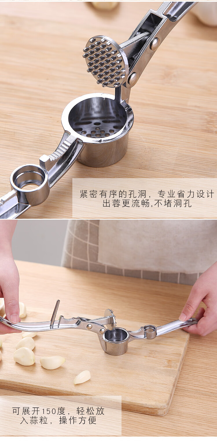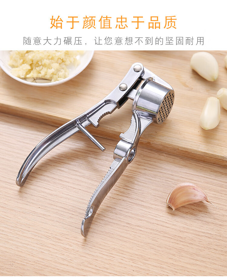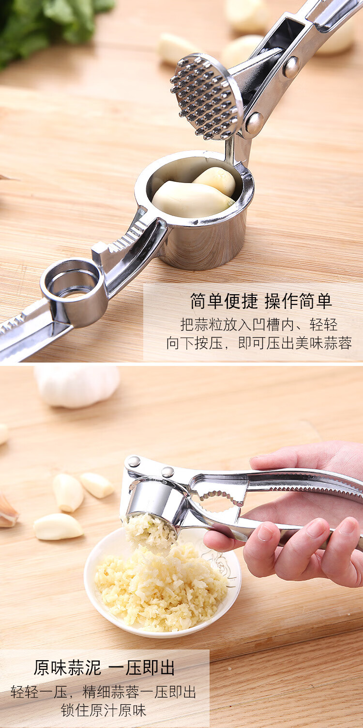 Fat Donglai's same extra-large garlic press, garlic masher, garlic tongs, multi-functional zinc alloy stainless steel manual pull type, medium garlic press (4-in-1)