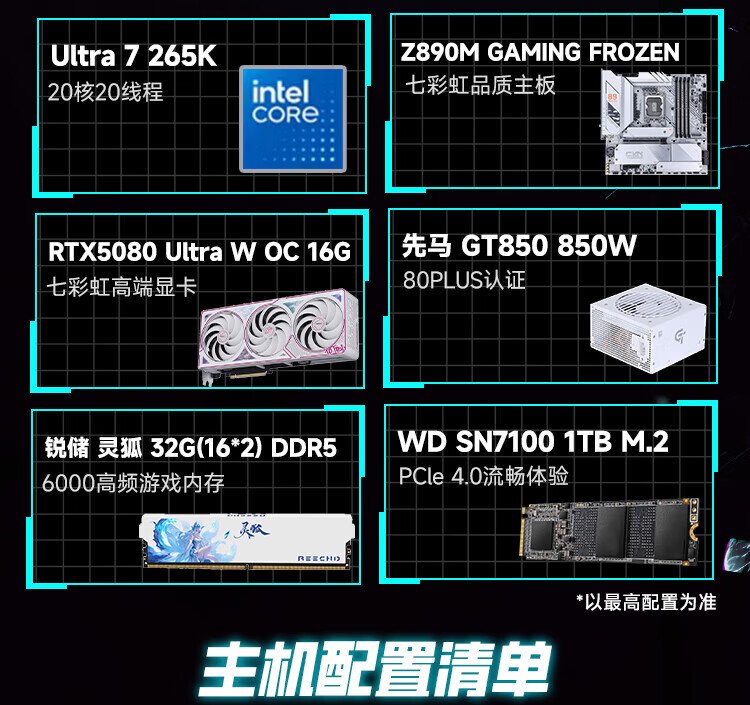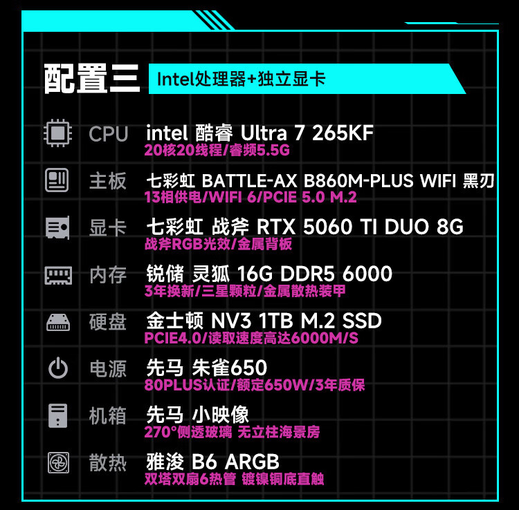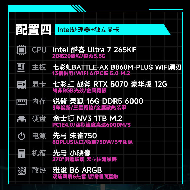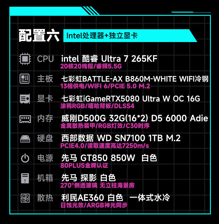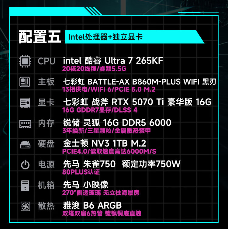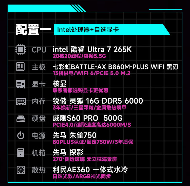Colorful Intel Core Ultra7 265K/KF host RTX5080/5070Ti/5060Ti rendering design computer e-sports game live broadcast DIY desktop assembly machine configuration 2 265KF/RTX5060/16G