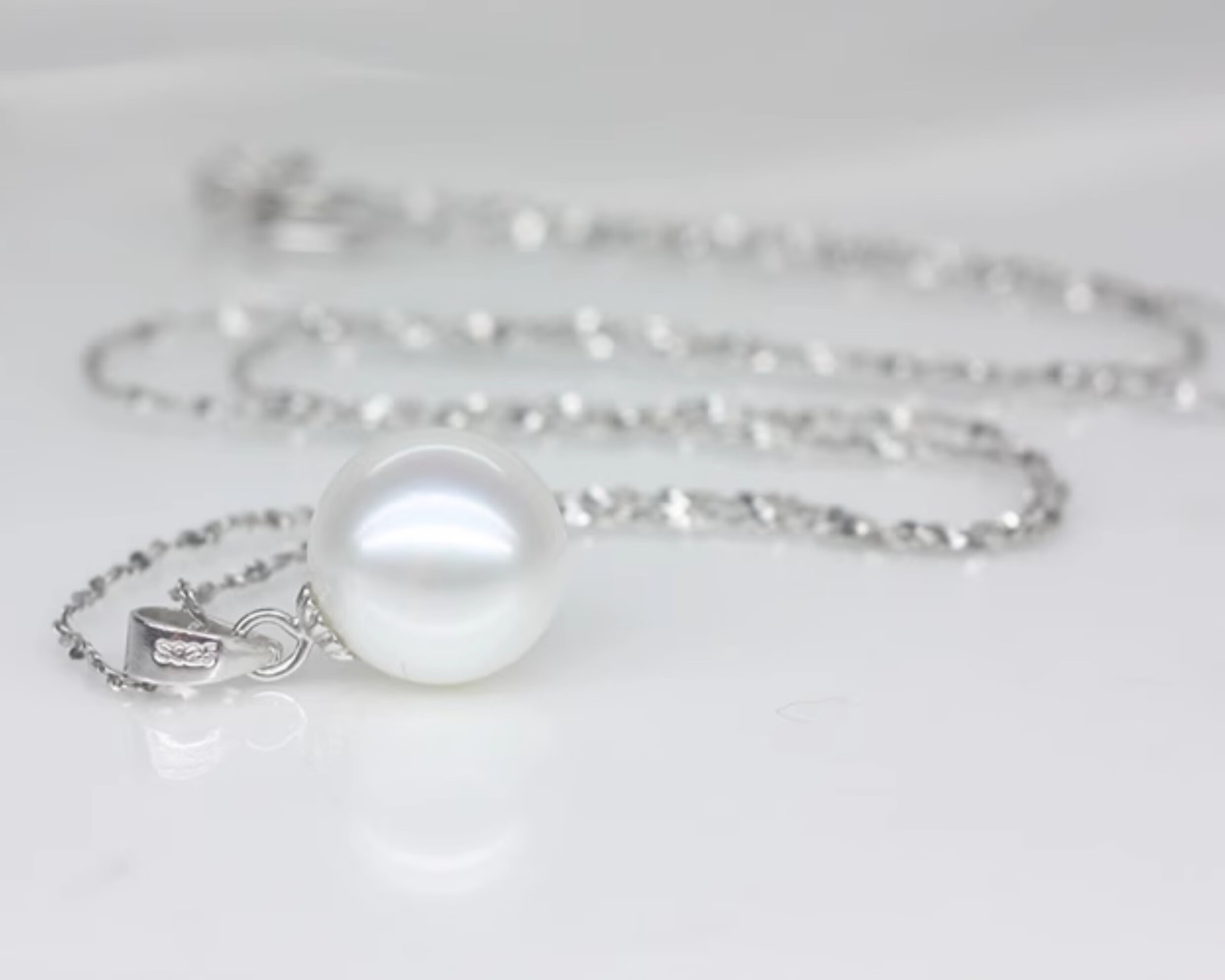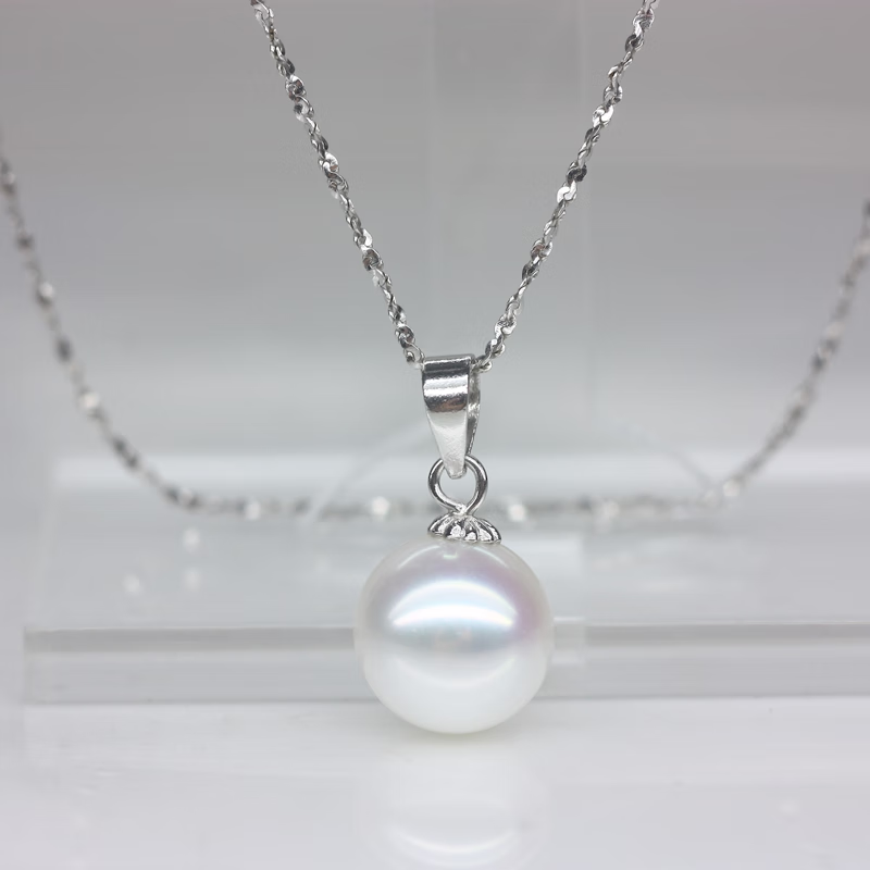 OeinOEIN natural freshwater real pearl necklace single perfect round bright light pendant clavicle chain 925 silver 8-10MM simple white 9.5-10 free chain length 45CM