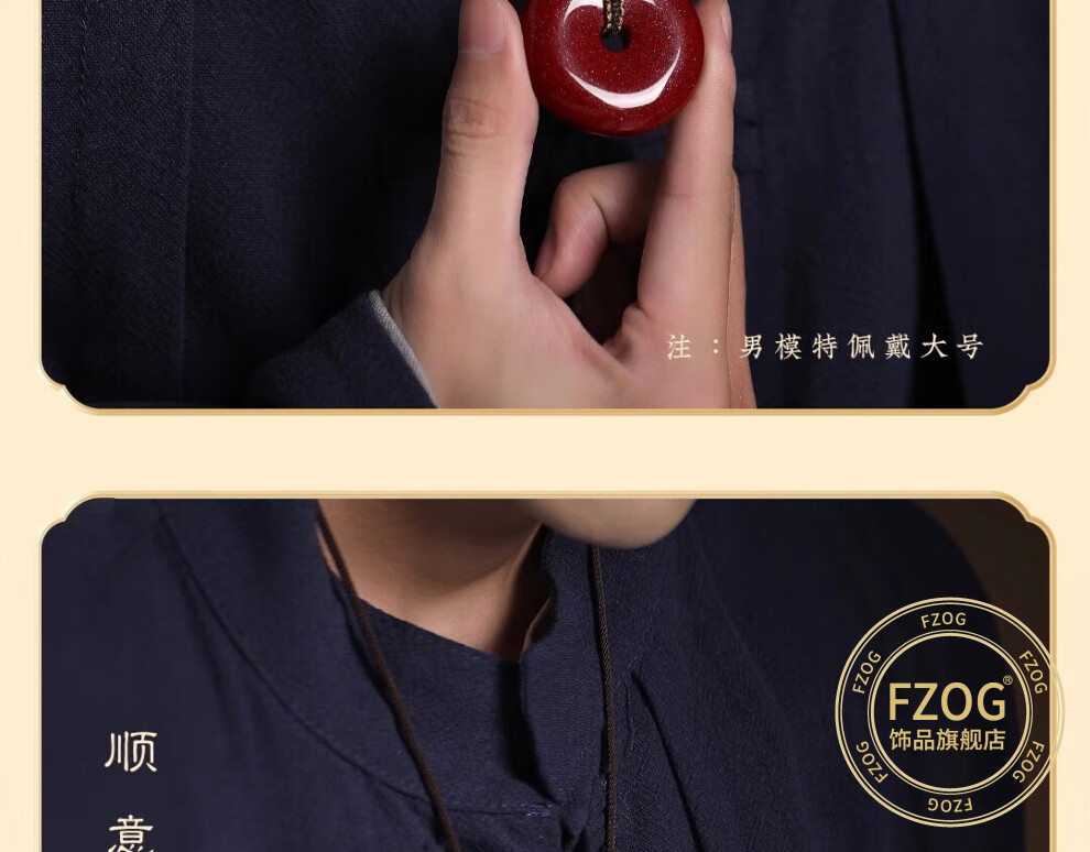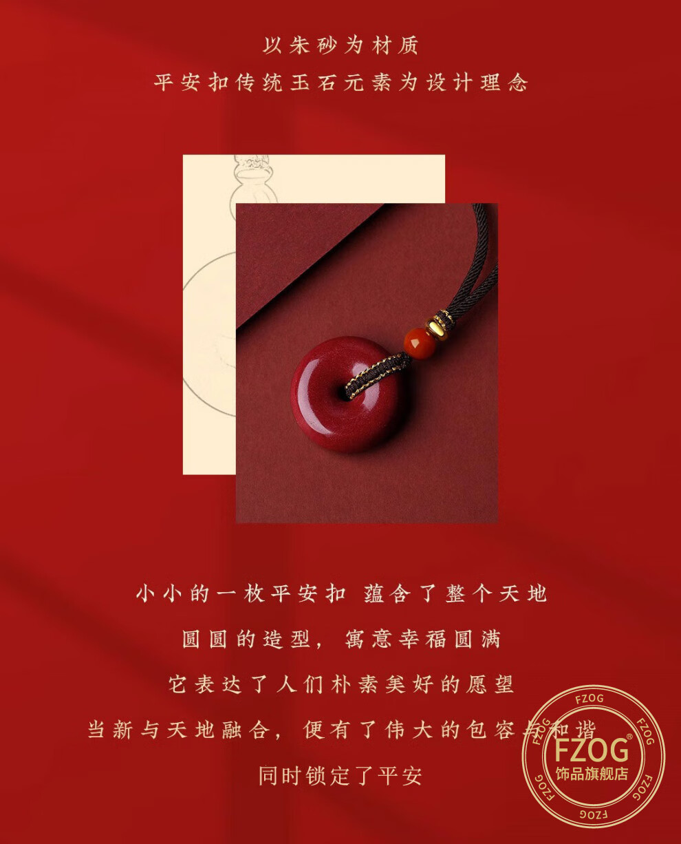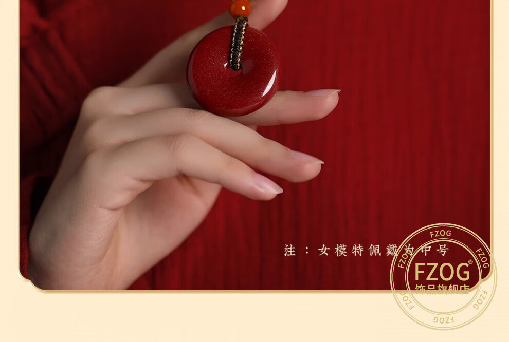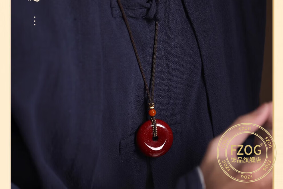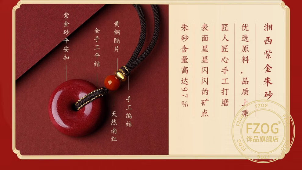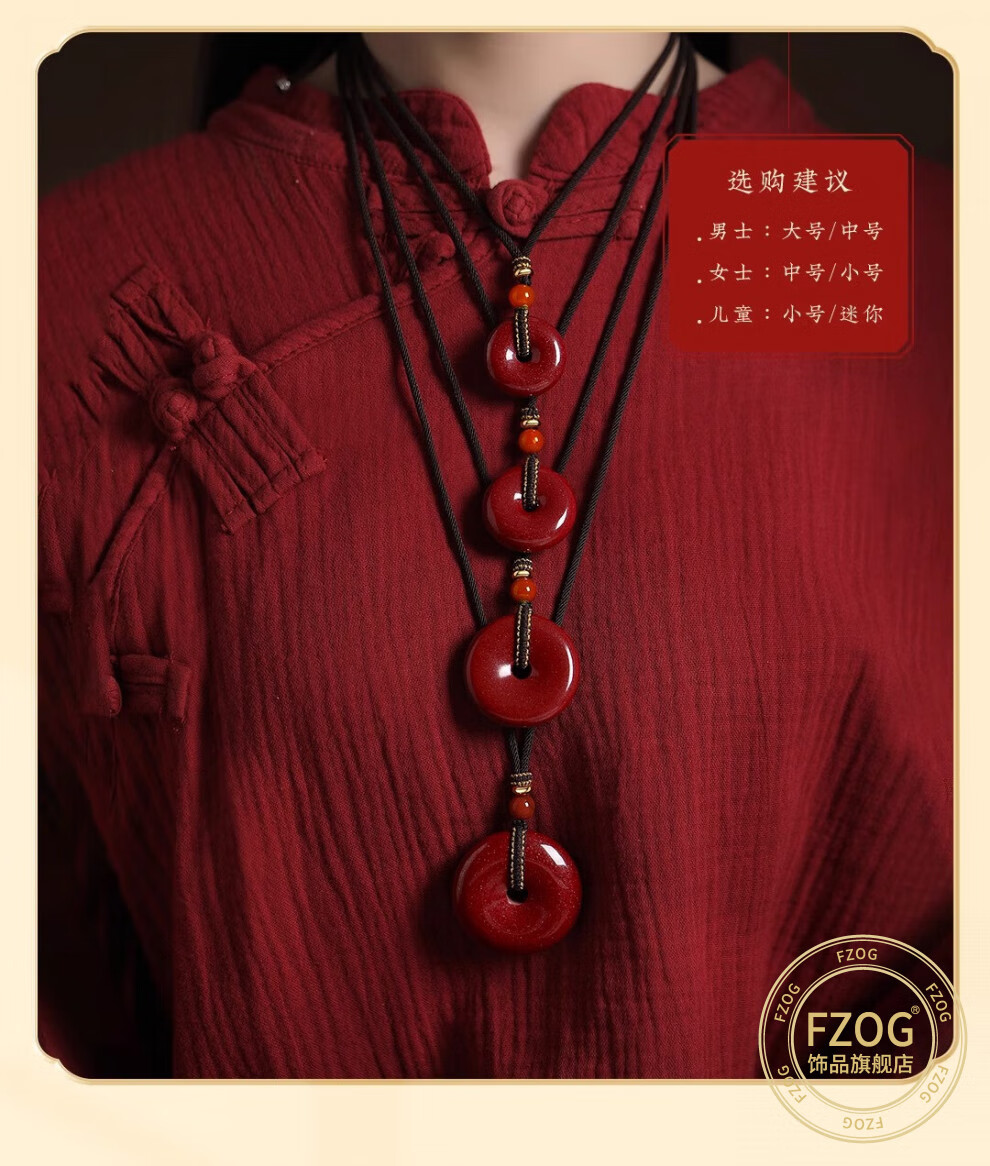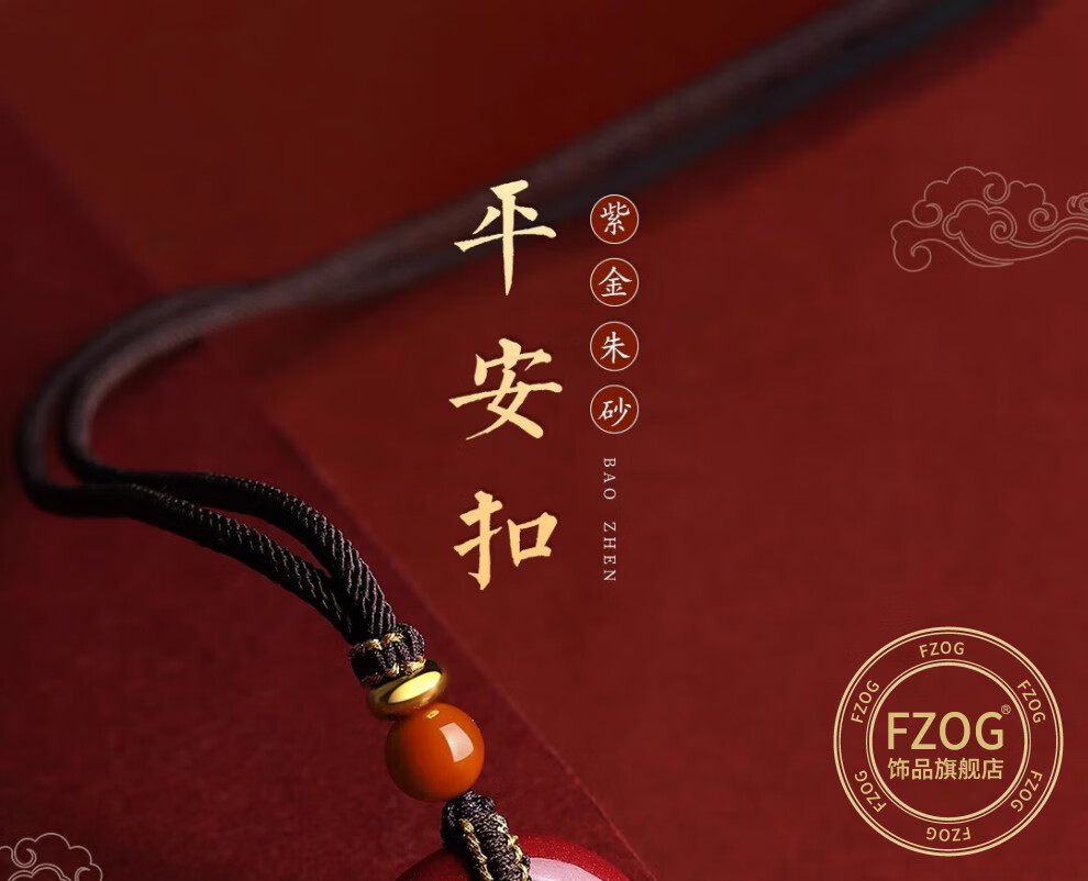 FZOG natural cinnabar pendant peace buckle necklace men and women purple gold sand crystal sand pendant amulet birthday gift peace buckle medium size suitable for men and women