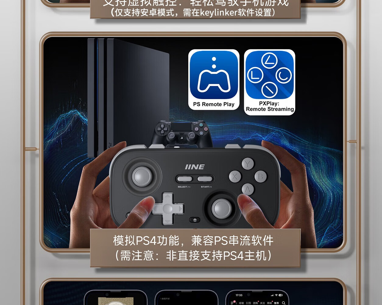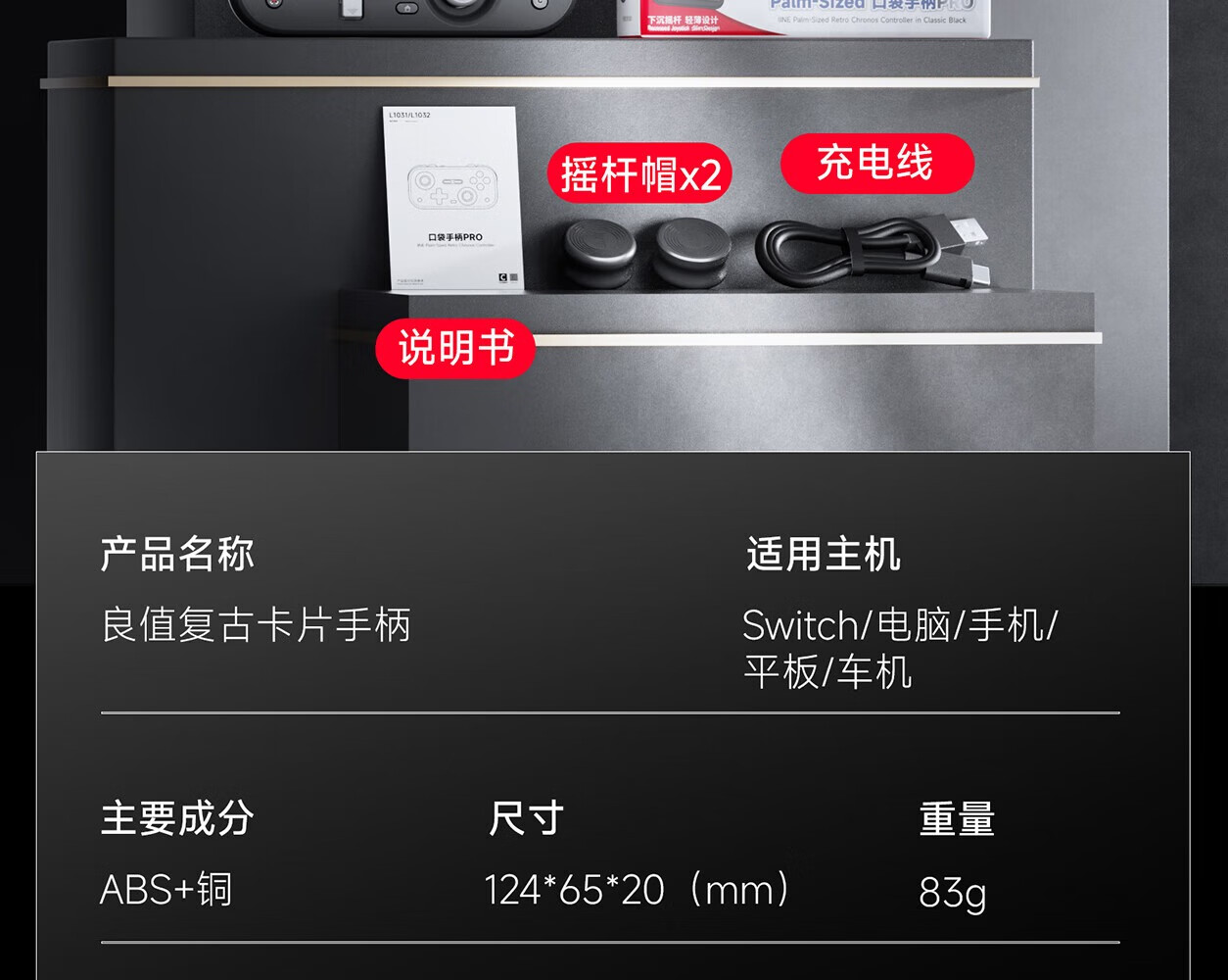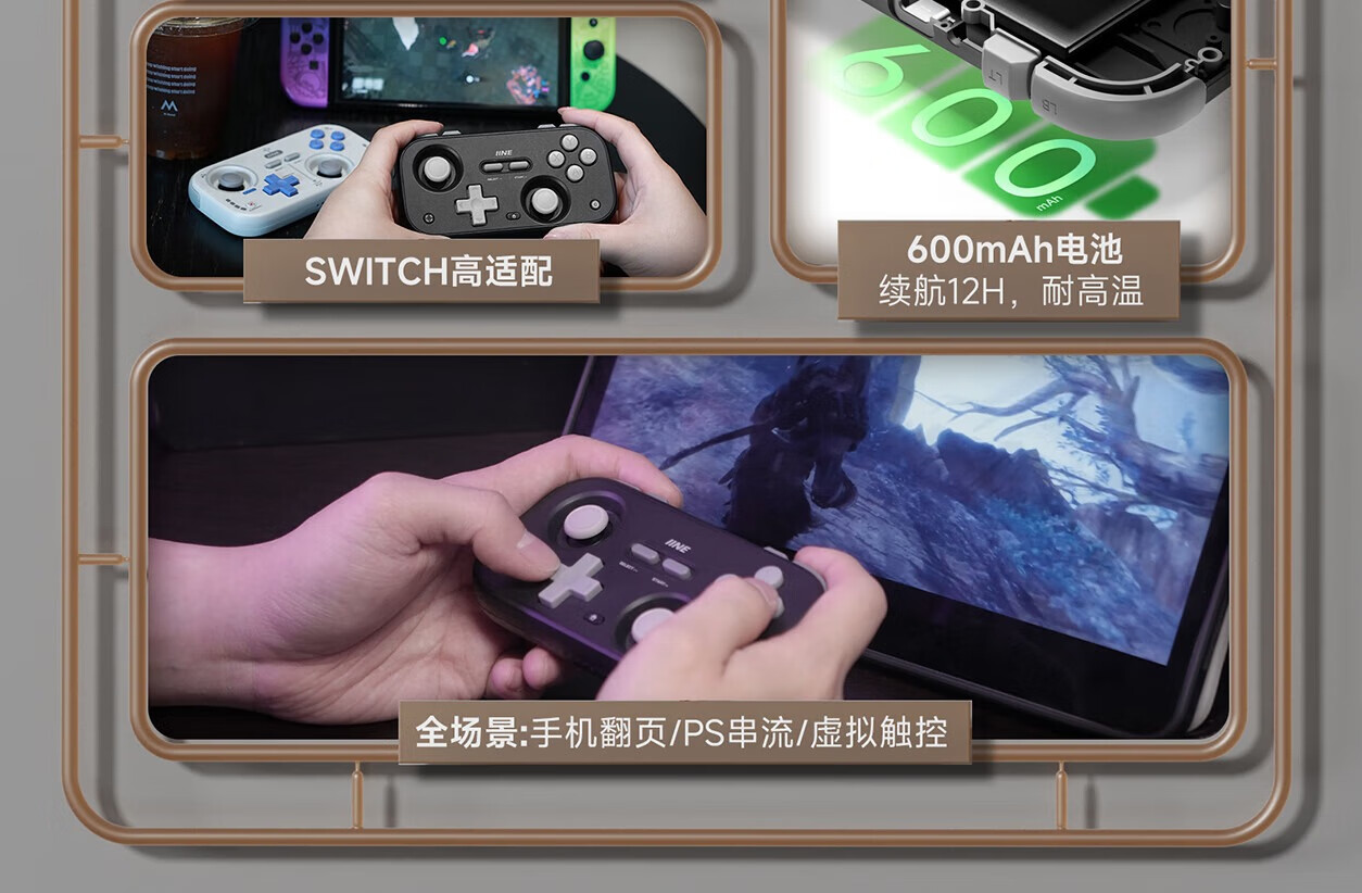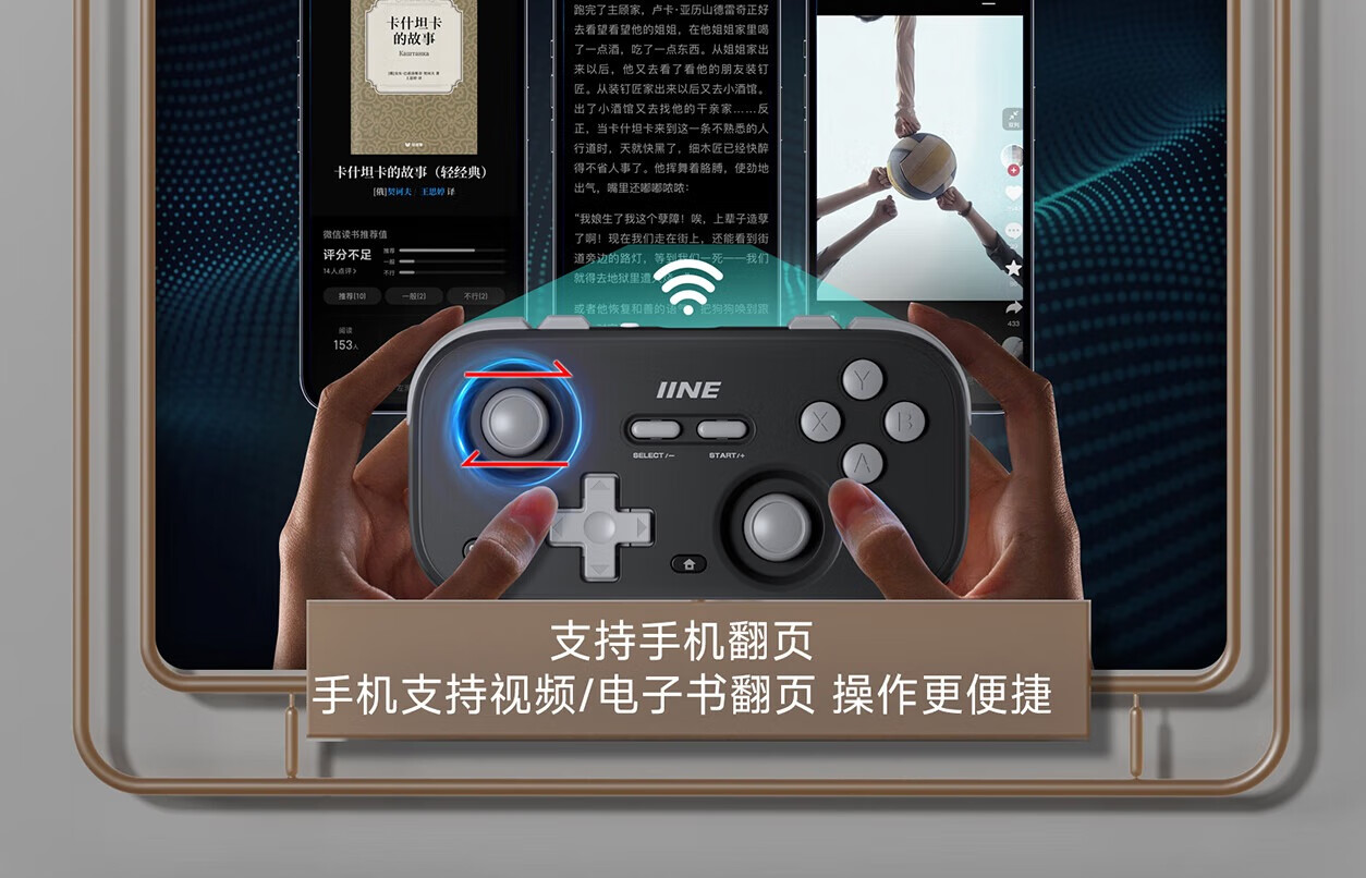 Good Value (IINE) Retro Card Game Controller Hall Rocker Mini Controller Compact and Portable Page Flip Streaming Simulator Switch Android IOS Mobile/PC Car Machine Retro Gray-L1031