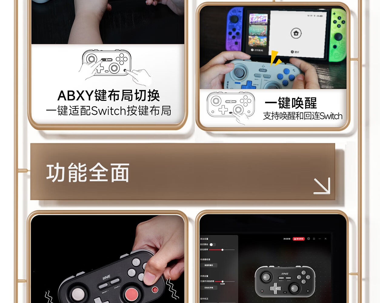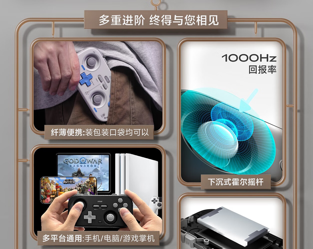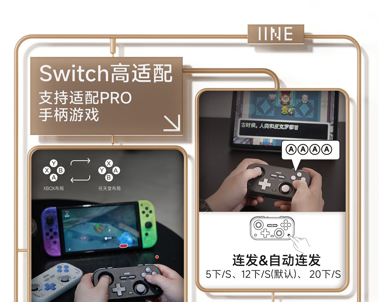 Good Value (IINE) Retro Card Game Controller Hall Rocker Mini Controller Compact and Portable Page Flip Streaming Simulator Switch Android IOS Mobile/PC Car Machine Retro Gray-L1031